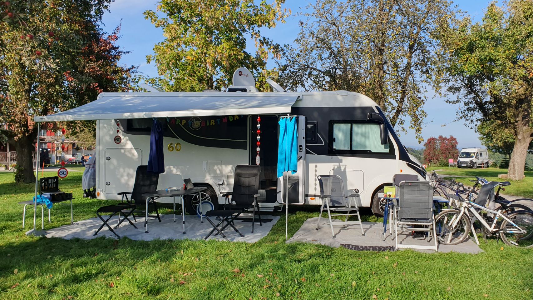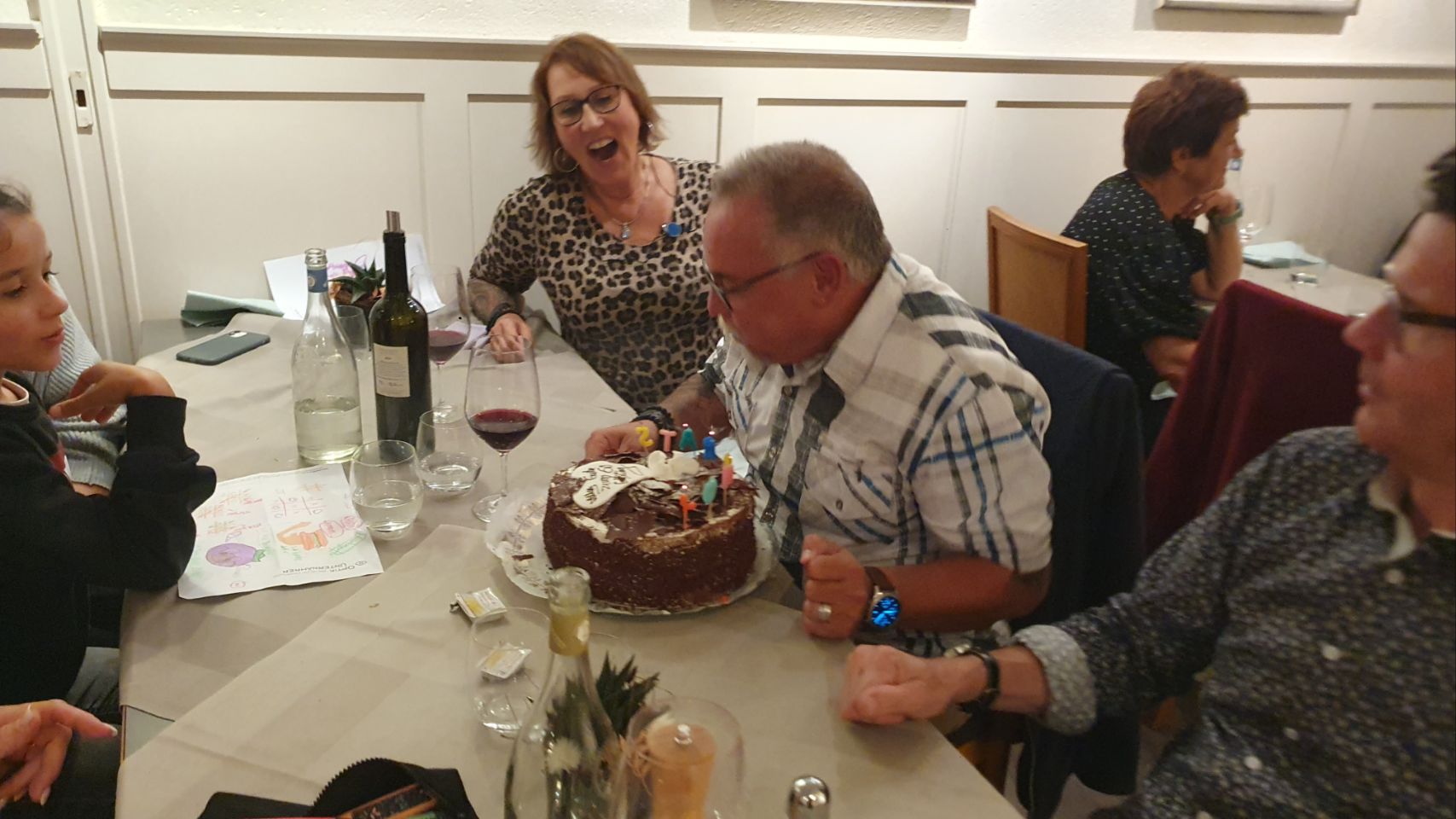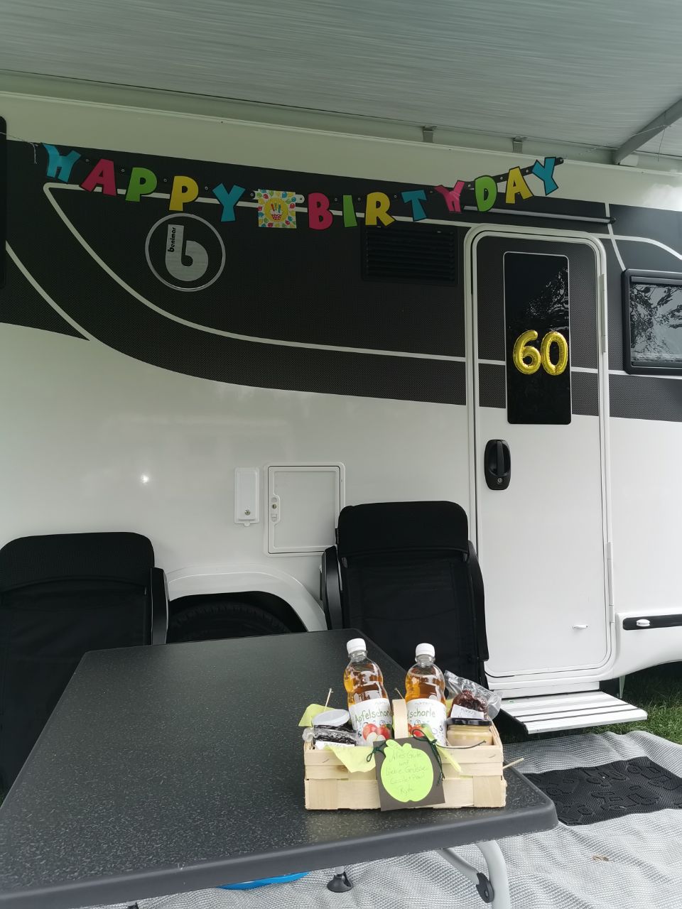 Seit gestern sind wir Nachbarn von meiner Schwester & ihrer Familie (jedenfalls einem Teil davon: die beiden erwachsenen Söhne sind nicht mehr dabei). Sie sind ebenfalls für einige Tage auf dem Bauernhofcamping Manser. https://www.manserferien.ch/ Ein toller Camping, nicht nur für die Kids. Bruno: Heute an meinem „Special Day“ gut gefrühstückt und lauter Nichts gemacht 😌🙏. Am Abend hat mich“mini Bohne❤“ auf ein feines Znacht ausser Haus, äh Wohnmobil eingeladen 😁! Ich, Daniela und die Familie von Danielas Schwester genossen im Restaurant Burkartshof https://www.burkartshof.ch/ eine hervorragende Kürbiscremesuppe, einen riesigen Wildteller🦌🐗 und einen feinen Tropfen 🍷! Soooo lecker 😋👍🏼! Eine grosse Überraschung war das Dessert! Eine Geburtstagstorte von meinem Schatz 🥰❤️💞! Ein schöner Tag ging zu Ende – ab gehts ins nächste Lebensjahr…😁👋🏼👋🏼.