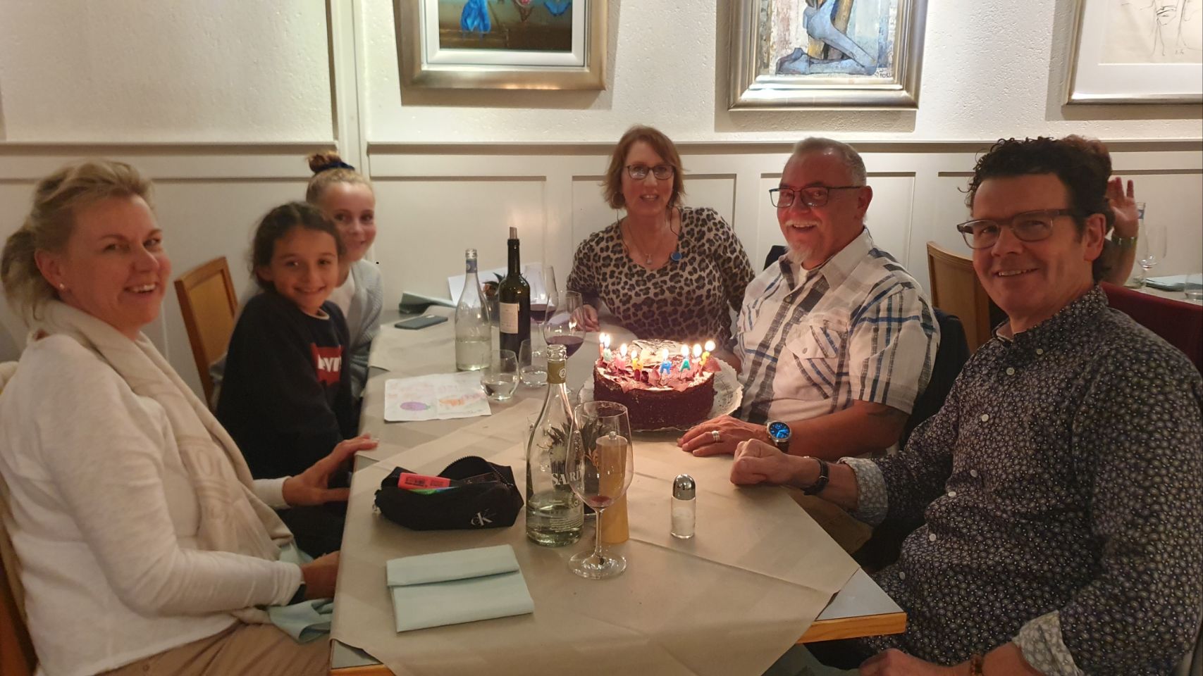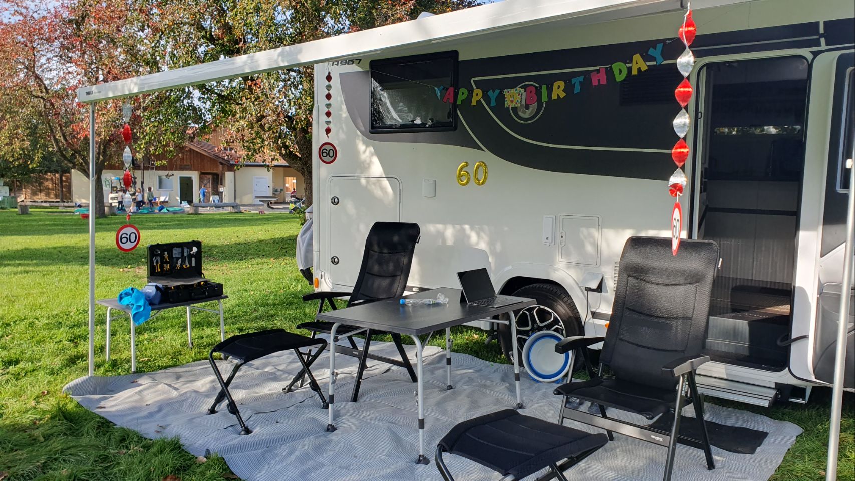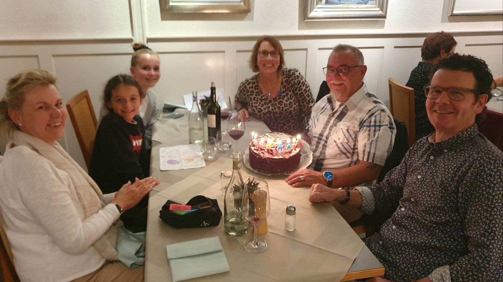 Seit gestern sind wir Nachbarn von meiner Schwester & ihrer Familie (jedenfalls einem Teil davon: die beiden erwachsenen Söhne sind nicht mehr dabei). Sie sind ebenfalls für einige Tage auf dem Bauernhofcamping Manser. https://www.manserferien.ch/ Ein toller Camping, nicht nur für die Kids. Bruno: Heute an meinem „Special Day“ gut gefrühstückt und lauter Nichts gemacht 😌🙏. Am Abend hat mich“mini Bohne❤“ auf ein feines Znacht ausser Haus, äh Wohnmobil eingeladen 😁! Ich, Daniela und die Familie von Danielas Schwester genossen im Restaurant Burkartshof https://www.burkartshof.ch/ eine hervorragende Kürbiscremesuppe, einen riesigen Wildteller🦌🐗 und einen feinen Tropfen 🍷! Soooo lecker 😋👍🏼! Eine grosse Überraschung war das Dessert! Eine Geburtstagstorte von meinem Schatz 🥰❤️💞! Ein schöner Tag ging zu Ende – ab gehts ins nächste Lebensjahr…😁👋🏼👋🏼.