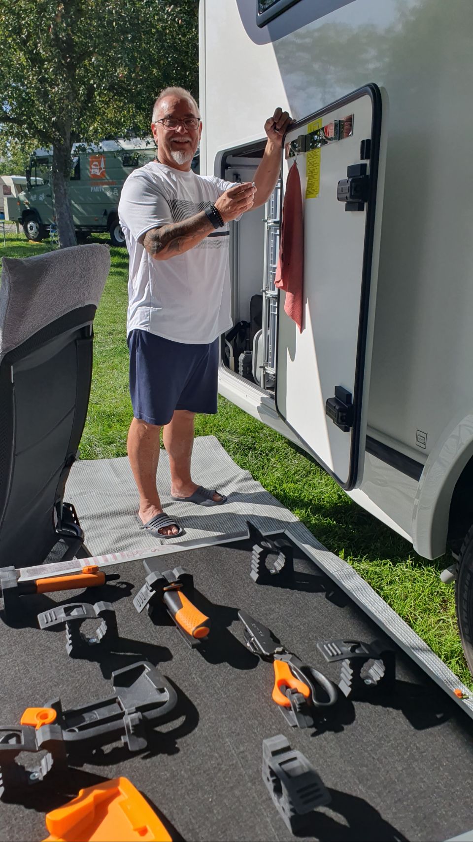 Bauernhof-Camping Buchseehof, Buchsee 1, 88273 Fronreute „Dolce far niente“, Spaziergang um den See und mal eine Velo-Ausfahrt. Bruno hat die grosskalibrige Werkzeugwand fertiggestellt und in der Heckgarage montiert. Geplante Abfahrt: Do. 05.10.2023 nach Winden SG, wo wir Monika, René und die Mädels treffen.