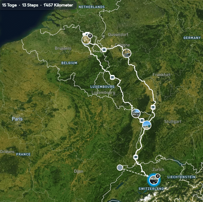 Morgengrauen in Buchrain (LU). Der Tag beginnt mit Kaffee. Nachdem der Roller in den Anhänger verladen ist, gab es ein feines und letztes Zmorgä, bevor es los geht. Über Luzern ging es Richtung Basel. Die ersten Stunden flossen vorbei: sattgrüne Wiesen, fast freie Strassen, das Panorama der Alpen im Rückspiegel. Zwischenstopp. Kurz nach Egerkingen lud der kleine Rastplatz ein, die Beine etwas zu vertreten und den Blick über das Wohnmobil mit Anhänger schweifen zu lassen, ob noch alles klar ist. Kurz vor Basel zog der Verkehr an – Stau höhe Badischer Bahnhof / Grenzübergang. Ein Klassiker. Doch im Wohnmobil war das kein Stress! Fenster auf, Musik an, Wetter geniessen. Hinter der Grenze öffnete sich das Rheintal, und Deutschland begrüsste mich mit goldenen Herbstgegenden. Entlang der A5 Richtung Strassburg Die Strasse führte mich weiter durch das Markgräflerland, eines der sonnenreichsten Gebiete Deutschlands. Rechts ragten die Schwarzwaldhänge auf, links glitzert der Rhein in der Ferne. Erneut ein kurzer Halt, um die Beine zu vertreten und der Magen bekam auch noch gleich etwas. Kleiner Halt noch im Perrymarkt – muss ja noch was für das morgige Frühstück einkaufen. Auf Höhe Strassburg geht es links weg – die französische Grenze ist nicht weit. Gleich vor dem Rheinüberfahrt-Grenze sah ich rechts unten einen Stellplatz, doch es war noch etwas früh, mich bereits für die Übernachtung einzurichten. Mehr anzeigenGefällt mirKommentar - 3 hours gereistNeuen Step hinzufügenPhilippsbourgBearbeiten