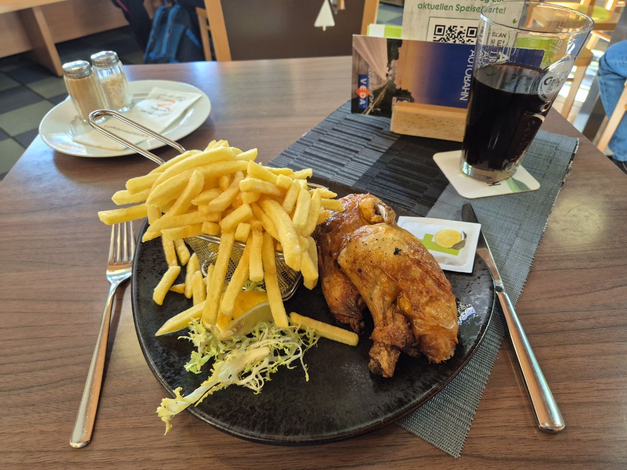 Rückfahrt nach Hause Nach dem Mittagessen in der Polizeikantine, die von Rent a Cook unter Leitung meines alten Freundes Oli bewirtschaftet wird, machte ich mich gegen 14:00 Uhr auf den Heimweg. Kurz noch den Dieseltank aufgefüllt, ging es dann am Rhein entlang Richtung Koblenz, wo ich auf die Autobahn auffuhr. Abgesehen von ein paar Baustellenstaus verlief die Fahrt weitgehend flüssig – bis kurz nach der Grenze, schwupp stehe ich erneut im Stau. Auf Höhe des Roche-Gebäudes hatte es leider einen Unfall gegeben, und so ging es dort nur noch im Schritttempo voran. Danach lief alles wieder rund, und ich zog die Strecke bis nach Hause durch. Dort erwartete mich ein herzliches „Welcome back!“ von meinen beiden Ladies. 🏡😊