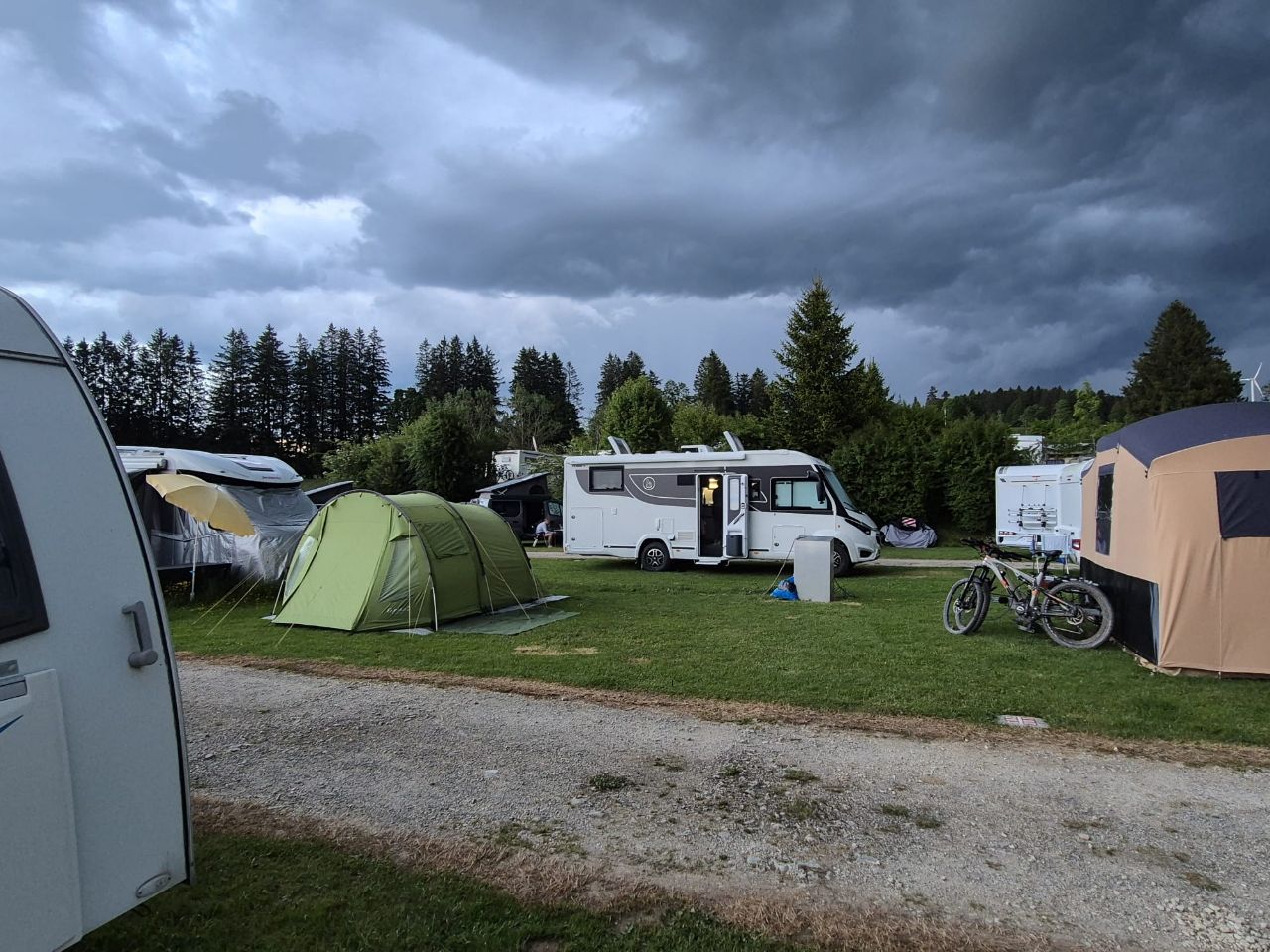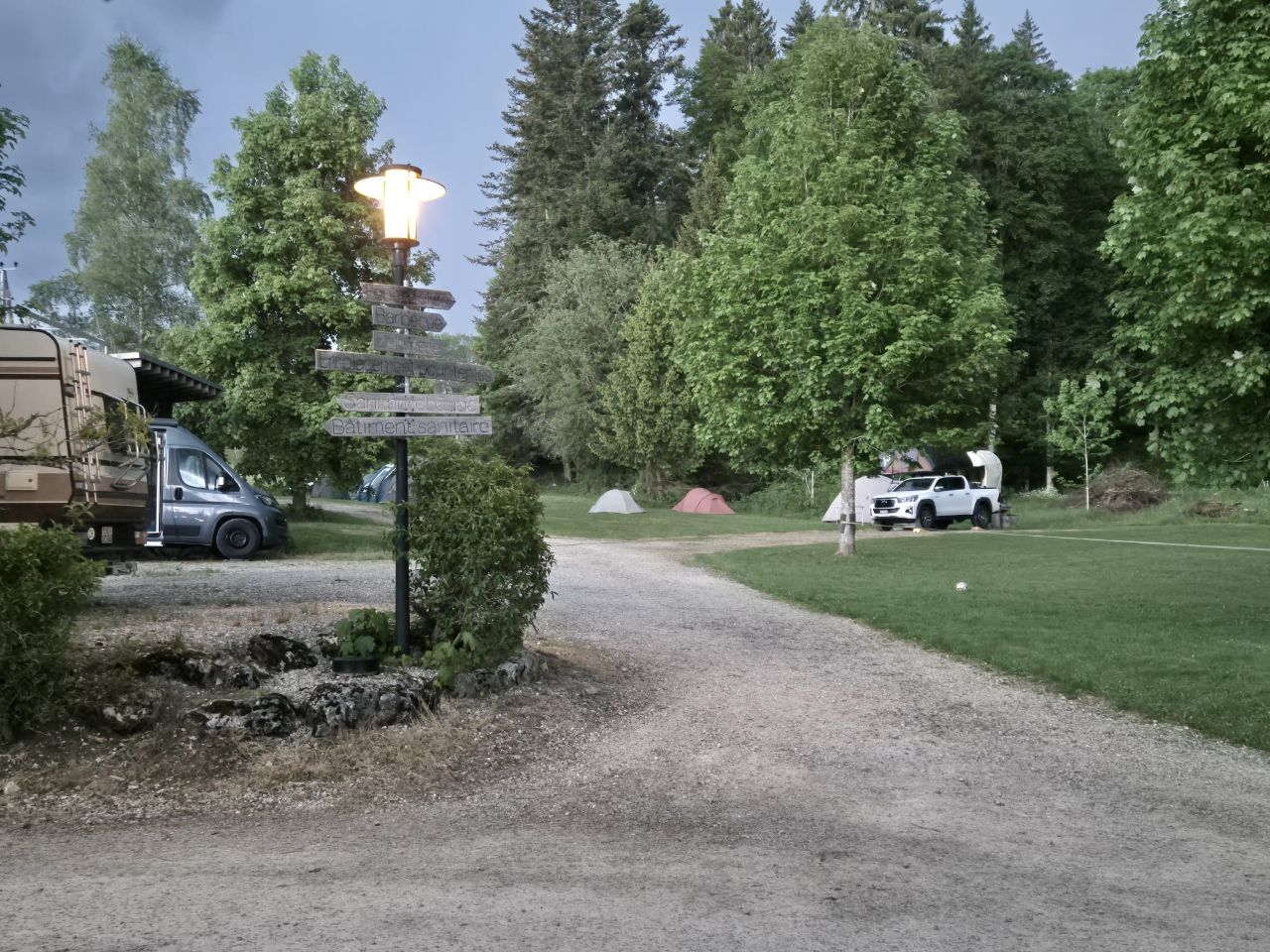 Nach Courgenay gings weiter nach Porrentruy (Pruntrut) und Réclère, wo wir für eine Nacht auf dem Camping „Les Grottes“ einkehren. Bonne nuit e à demain 🥱😴!