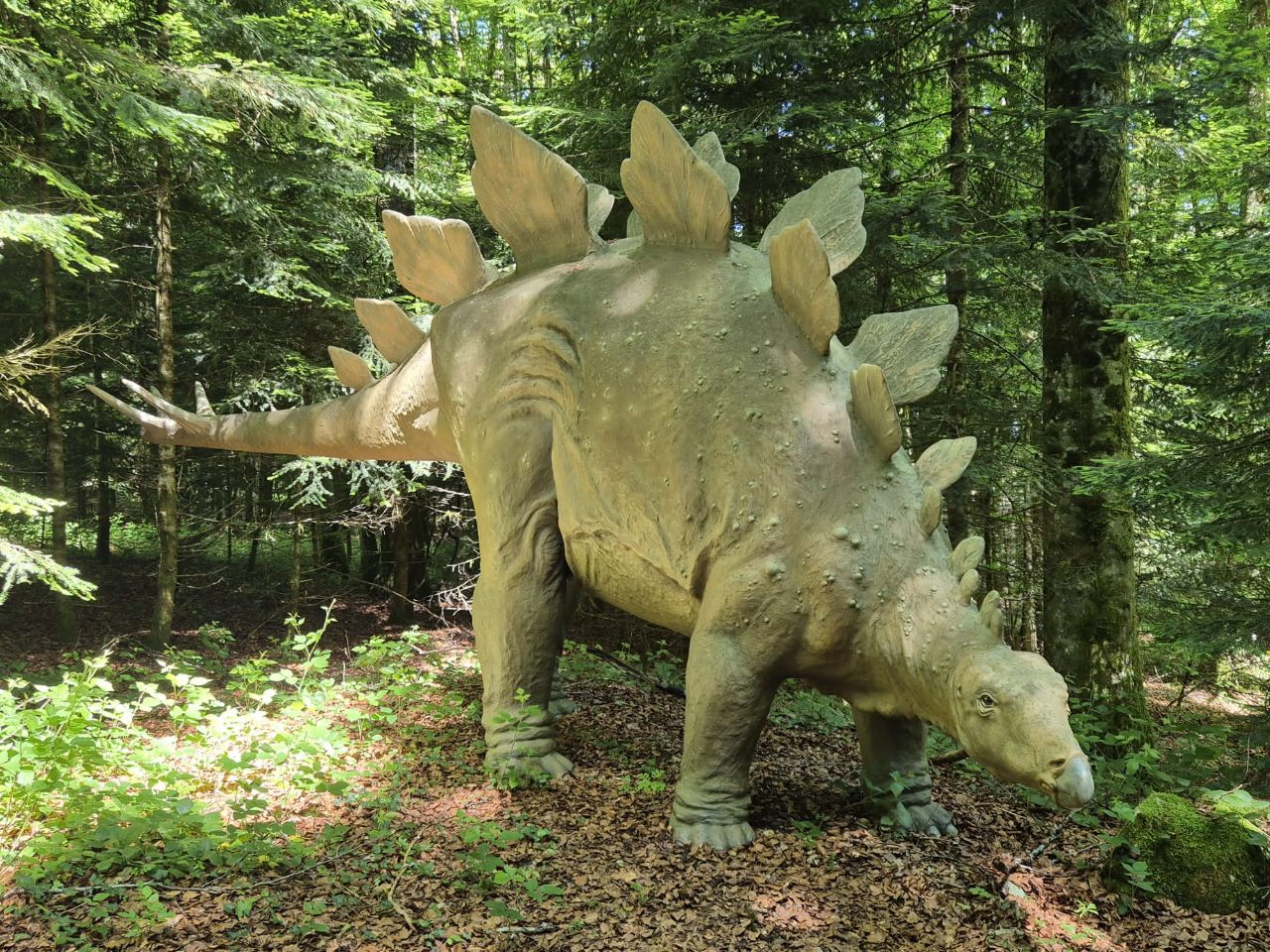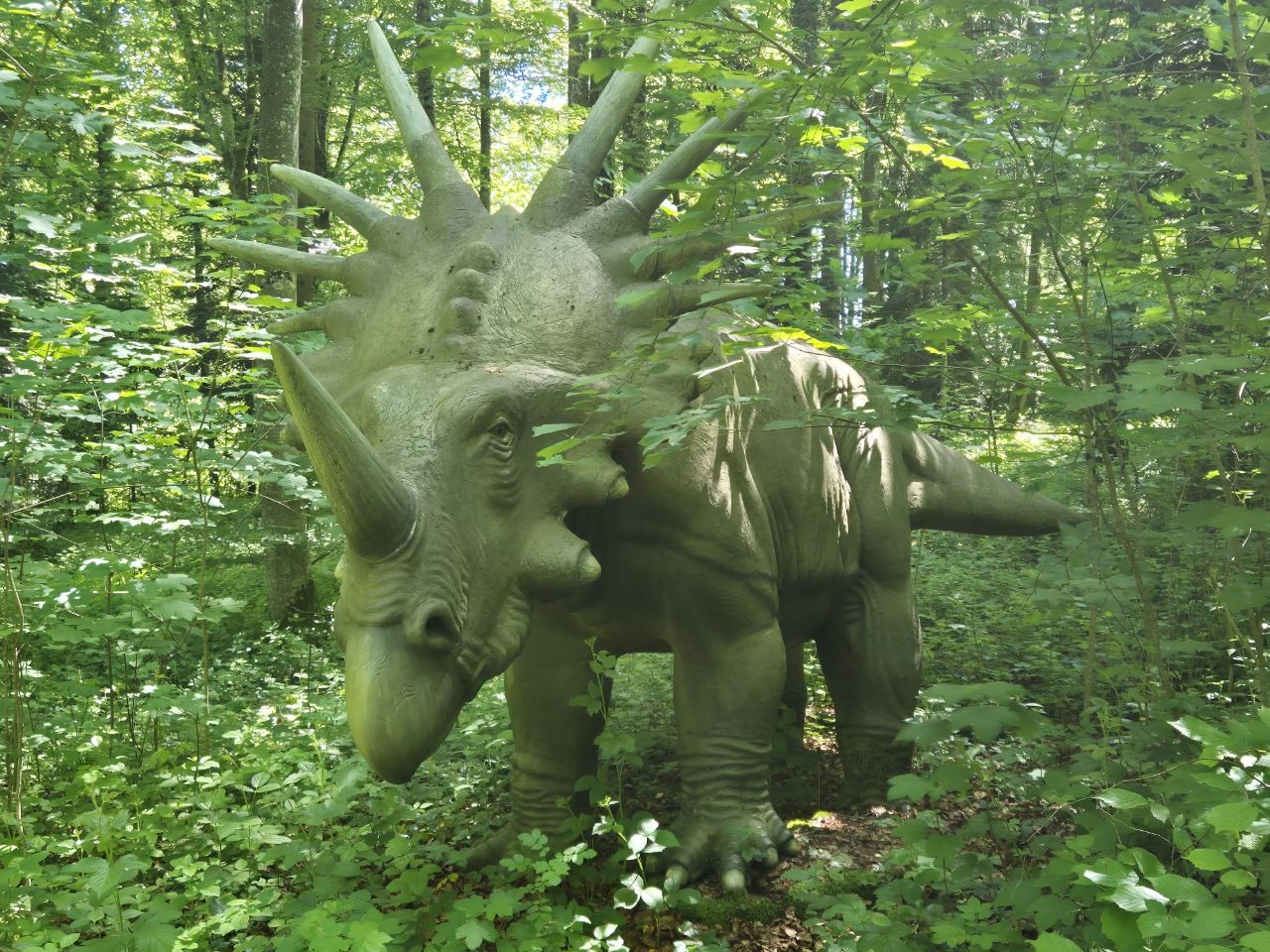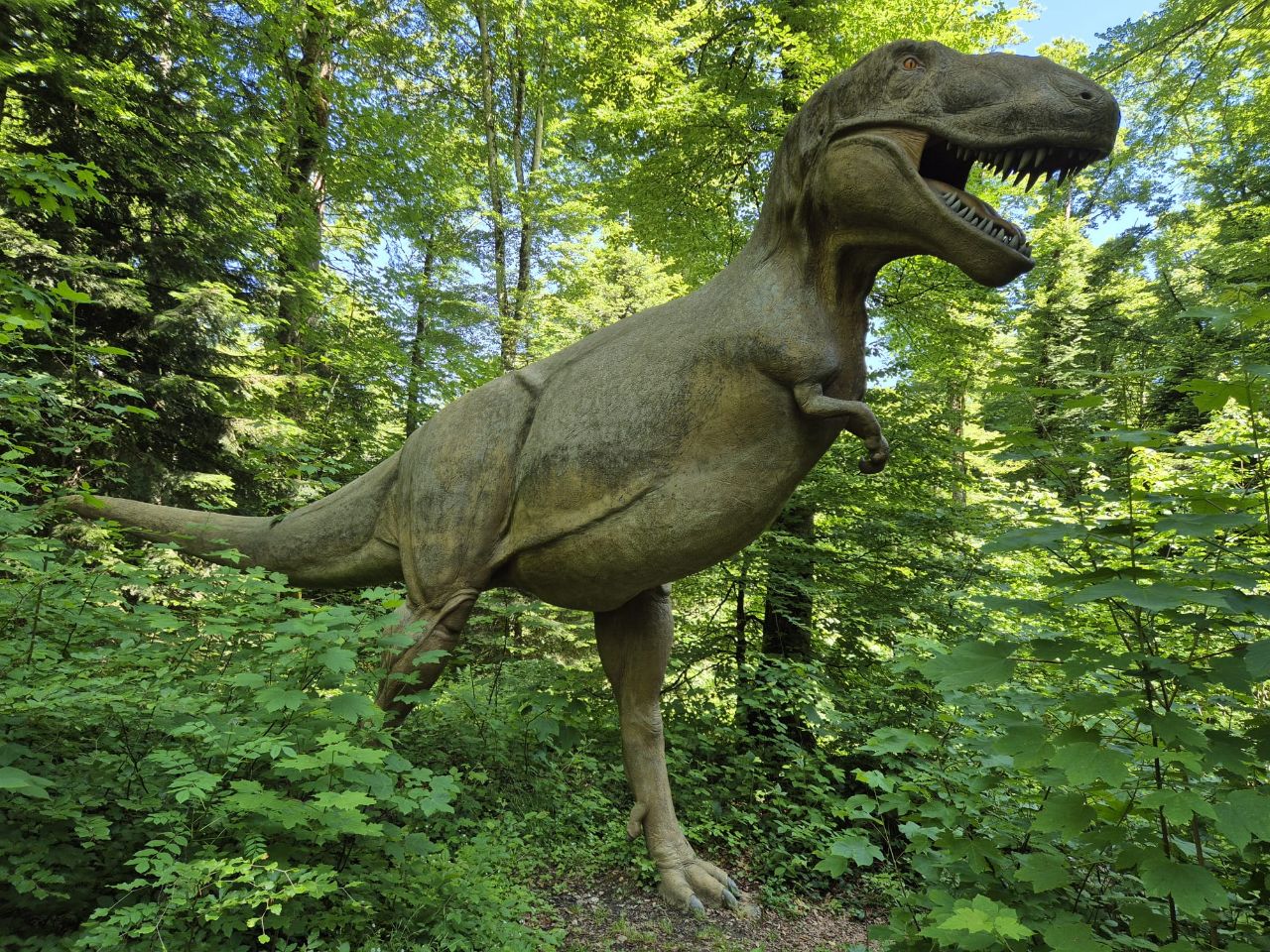 Wir besuchten heute den an den Campingplatz angrenzenden Prähistorischen Park mit div. Dinosauriern-Figuren in Lebensgrösse. Auch wenn der Park insbesondere für Kinder ein grosser Anziehungspunkt ist, so ist er für Erwachsene nicht minder interessant. Die Grotte/Höhle, die ebenfalls zu besichtigen gewesen wäre, haben wir ausgelassen. Wir haben schon so viele davon gesehen… Prähistorischen Park Weiter geht’s noch nach St. Ursanne, wo wir das Städtchen besichtigen möchten.