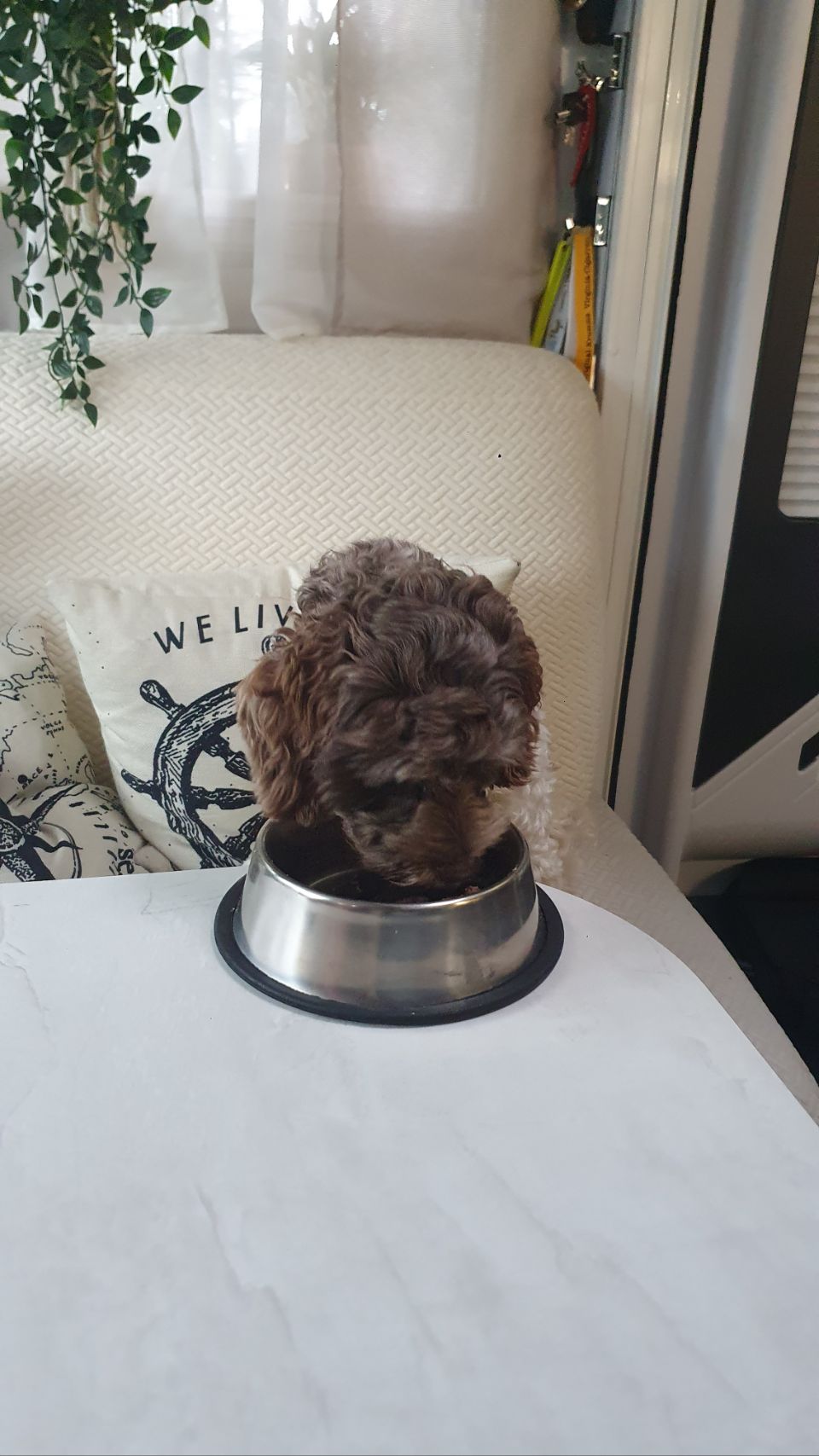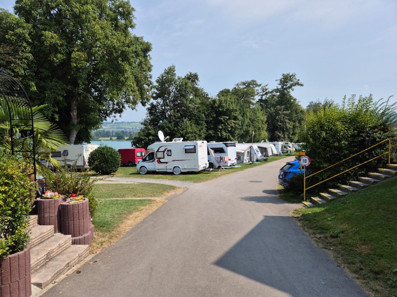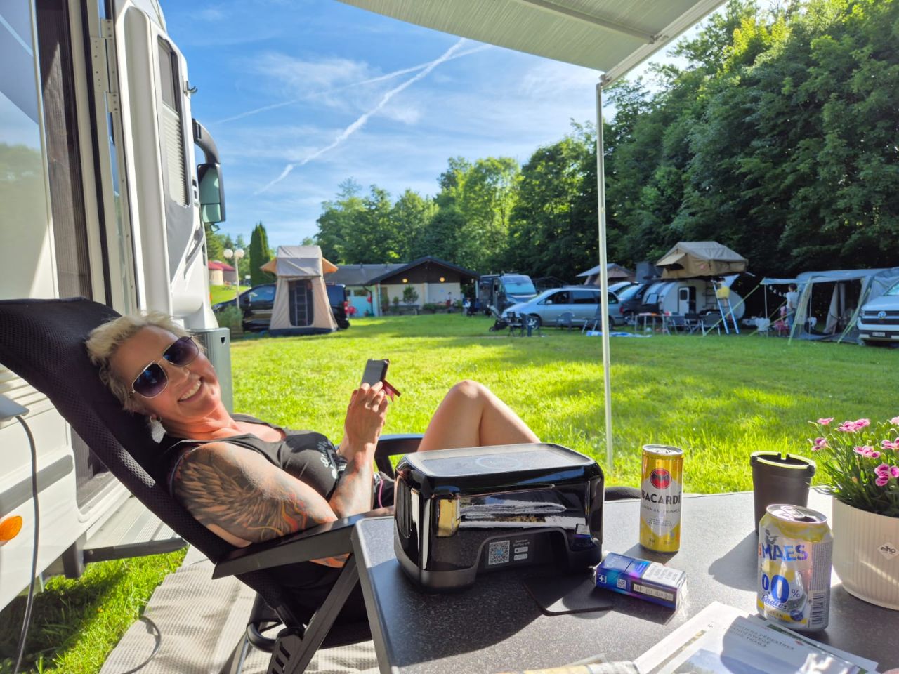 Los ging es mit der Idee, die Pfingsttage irgendwo in Graubünden zu verbringen. Gleichzeitig konnten wir in Chur einem „Ricardo“-Kunden seinen sperrigen Artikel bringen, den er ersteigert hatte. Aber dies hatte seinen Preis 🙈😬😵💫: Viele Reisende wählten anscheinend aufgrund dem über 18 km langen Stau am Gotthard die San Bernardino-Route. Und so kam genau das, was wir eigentlich vermeiden wollten. Kurz nach der Raststätte Heidiland begann es zu stocken, dann gings nur noch sehr schleppend voran… bis nach Chur! Auch auf den Nebenstrassen war es nicht besser. Stau, Stau, Stau… 🤮. Mit über einer Stunde Verspätung trafen wir schliesslich beim Käufer ein 🥴. Am Montag mit dem gleichen Blechbandwurm zurück? Ohne uns!! Kurzbesprechung im Burger King 🍟🍔🥤🤣. Neue Kursrichtung: Norden 👍🏼🤗 Am Stadtrand von Buchs SG, fanden wir den schnuckeligen Camping Werdenberg, wo wir mal für eine Nacht bleiben… https://www.verkehrsverein-buchs.ch/camping/ Das Bild mit Yuna 🐶 ist natürlich gestellt 🙈😆. Selbstverständlich frisst sie nicht am Tisch…😉😅