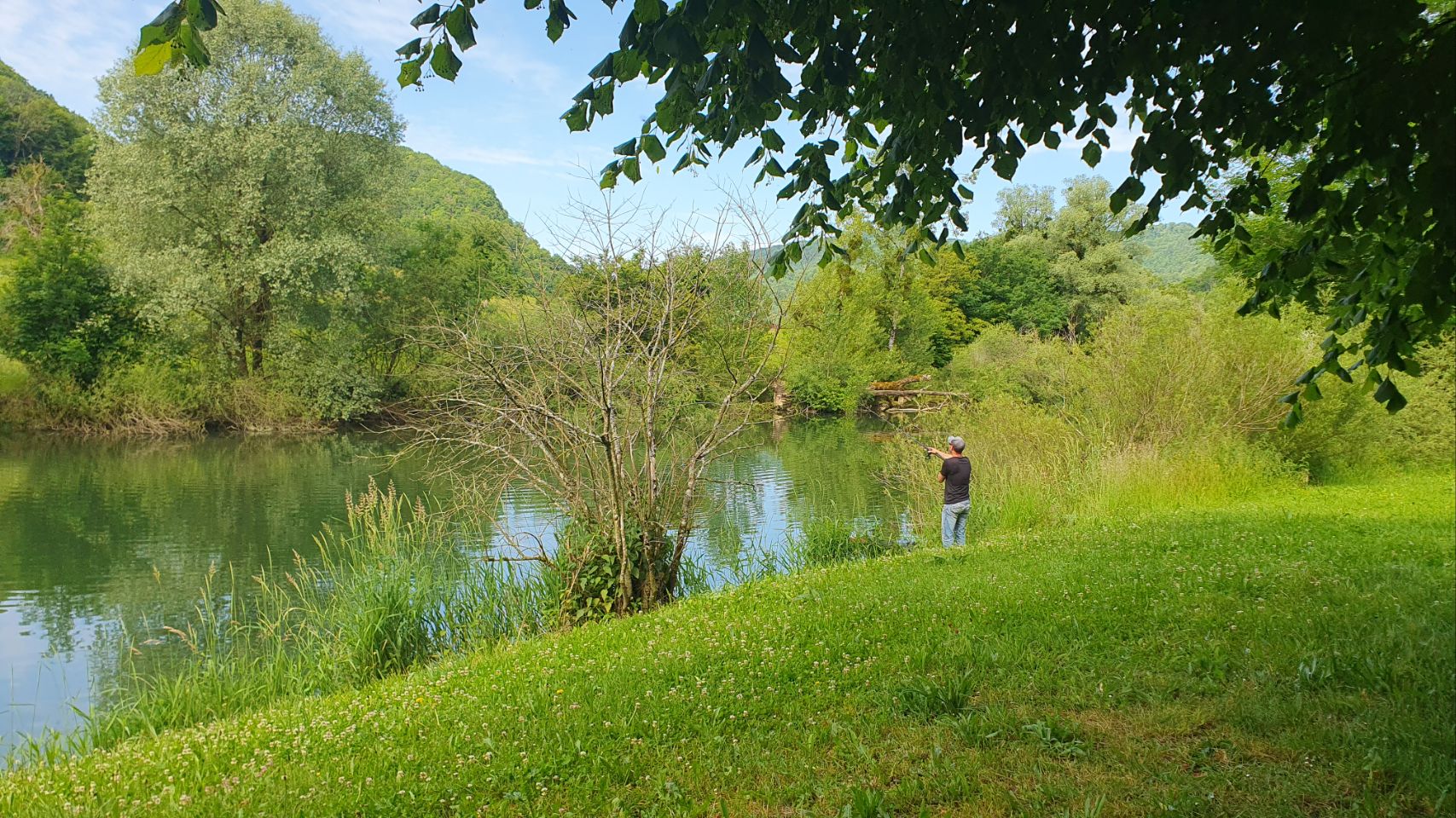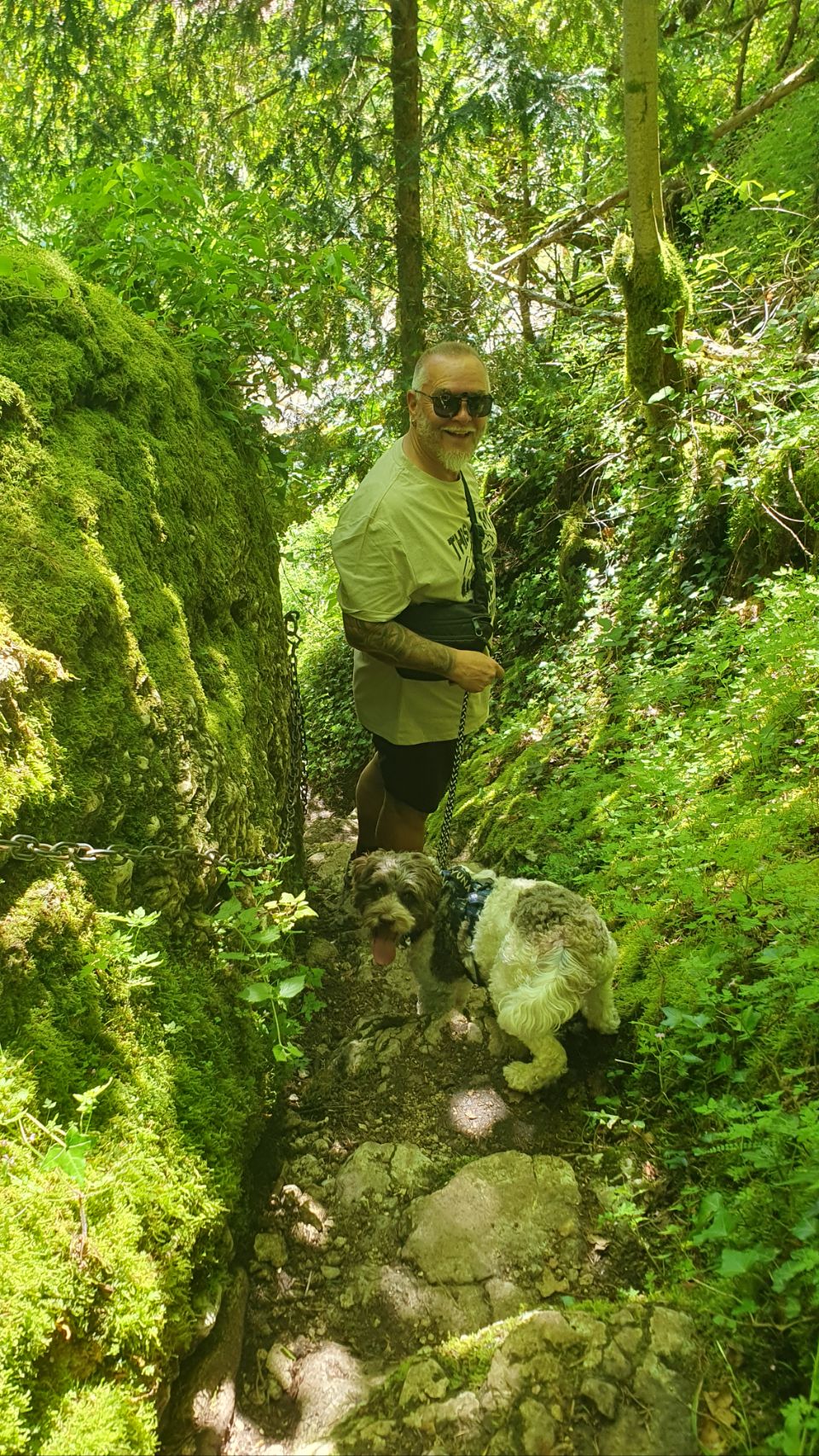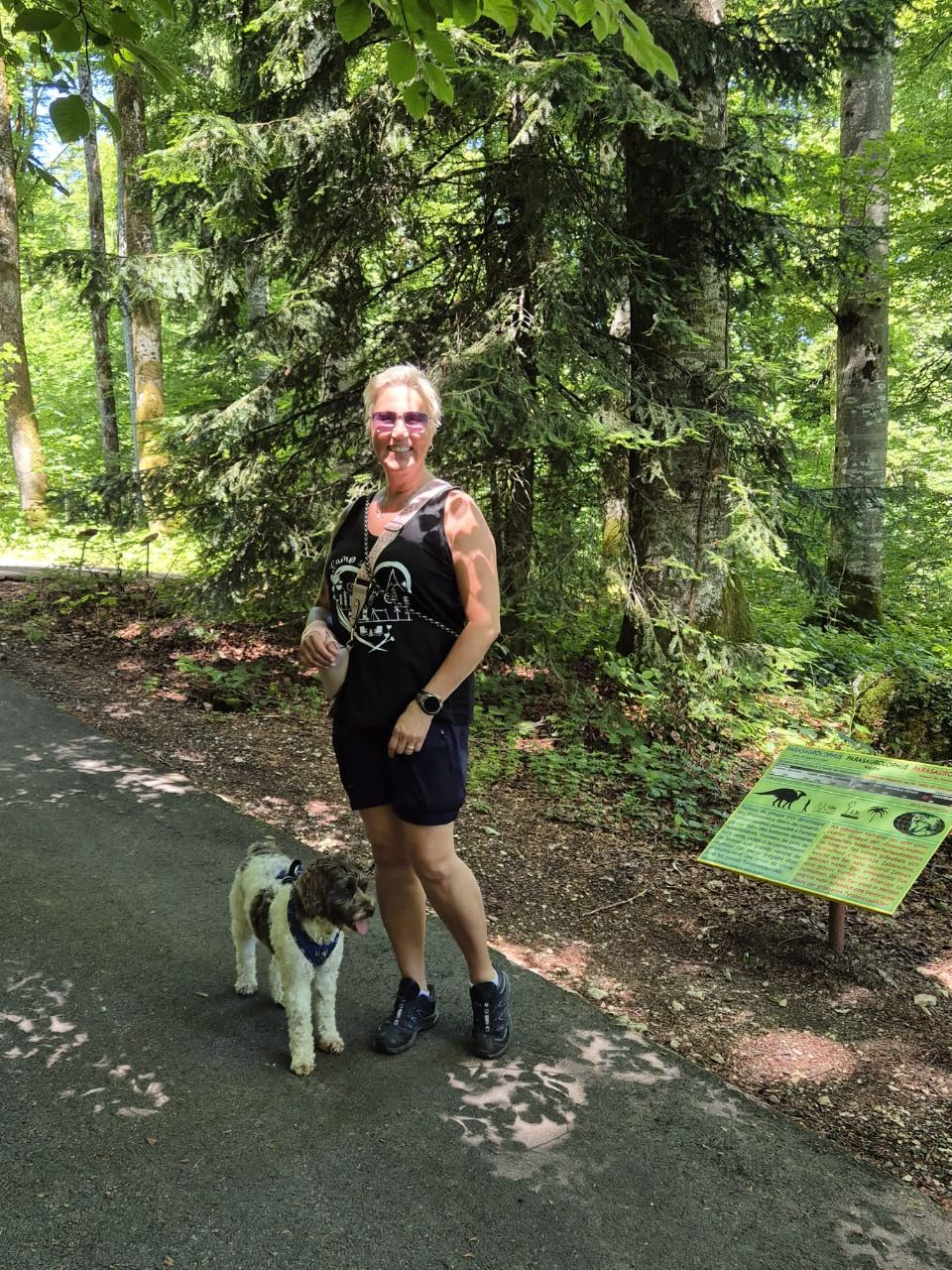 Saint Ursanne ist ein hübsches Städtchen mit einer grossen Stiftskirche. Wir machen uns auf den Weg, um den Platz des Eremiten Ursinius aufzusuchen. Der aus Irland stammende Mönch lebte als Einsiedler in Abgeschiedenheit in einer Höhle oberhalb des Flusses Doubs. Eine schöne Aussicht erwartete uns. Auf dem Rückweg konnten wir einem Imker bei seiner Arbeit am Bienenstock zuschauen. Die Sonne, die durch den Wald und auf das Moos schien, liess Bruno & Yuna in einer grünen Lichttäuschung erscheinen. In Saint-Ursinne versorgten wir uns zuerst mit einem Glace, anschliessend mit frischen Schweizer Erdbeeren, O’Saft und Trockenfutter für Yuna, welches wir leider zuhause vergessen haben.