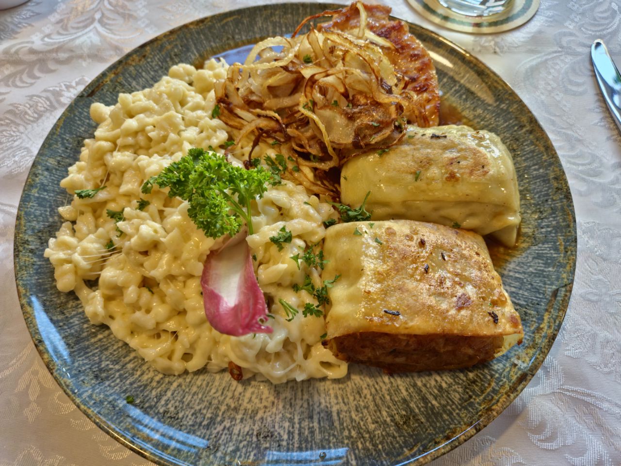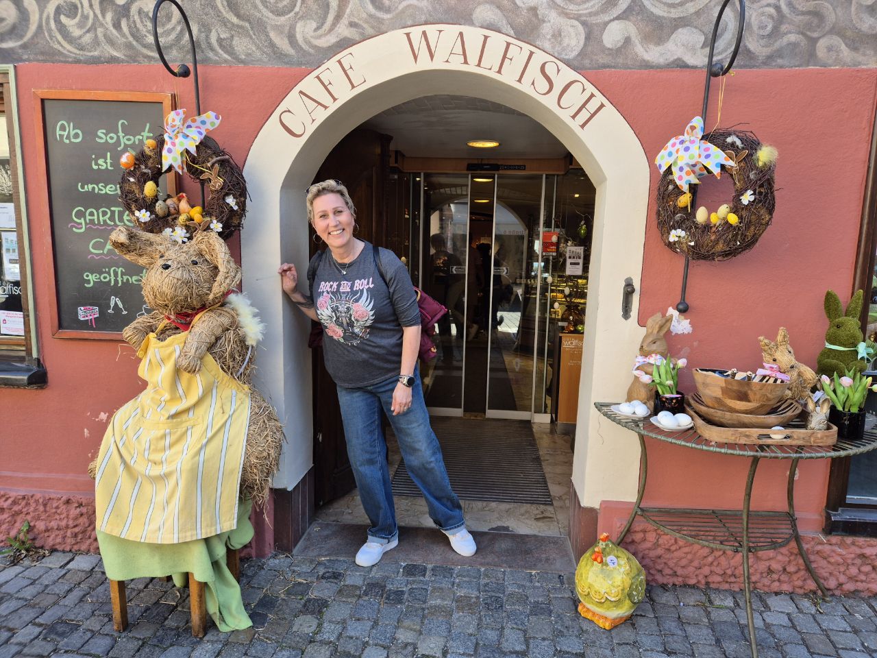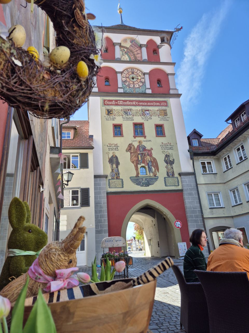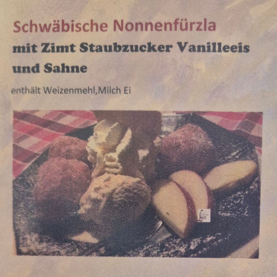 Servus und Griass di! Heute fuhren wir mit dem Bus nach Wangen. Ein schöner Ort mit einer hübschen Altstadt. Nach einem ausgiebigen Stadtbummel, genossen wir im Gasthaus zum Lamm ein herzhaftes Abendessen. Die Krönung aber war das Dessert! Es nannte sich „Schwäbische Nonnenfürzla“ (wie kann man bloss auf einen solchen Namen kommen🤔🙈). Wir kamen ins Gespräch mit unseren Tischnachbarn (einem ebenfalls aus der Schweiz stammendes Ehepaar – auch Camper). Dabei rätselten wir natürlich mit viel Humor nach der möglichen Herkunft dieses Namens. Mit vollem Magen machten wir uns wieder auf den Heimweg zum Stellplatz. Und siehe da: Unser WoMo hat im Laufe des Tages Gesellschaft von drei Camper-Vans erhalten… Zufrieden, aber müde sagen wir dem heutigen Tag und euch Lesenden „pfiat di“ 🥱😴. Und falls sich jemand interessiert, woher der Name „Nonnenfürzle“ tatsächlich kommt: Herkunft Nonnenfürzle
