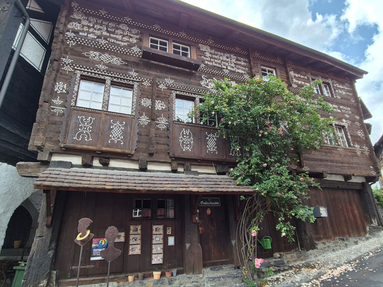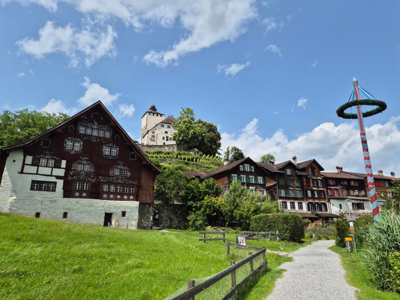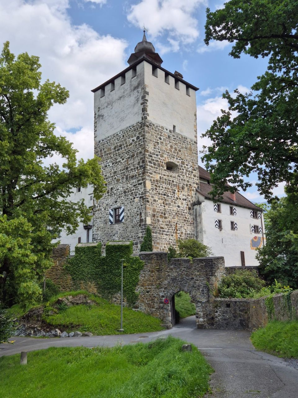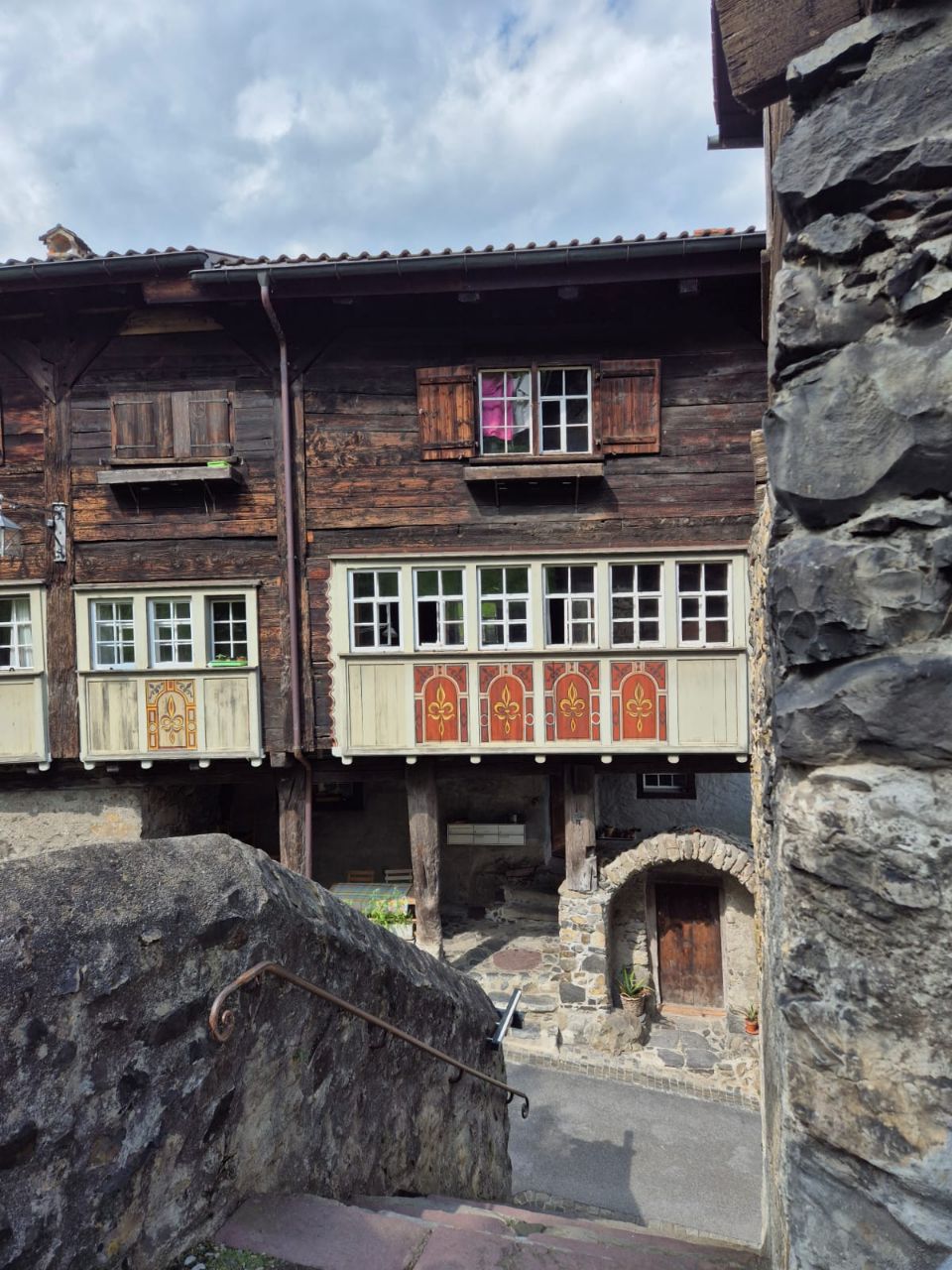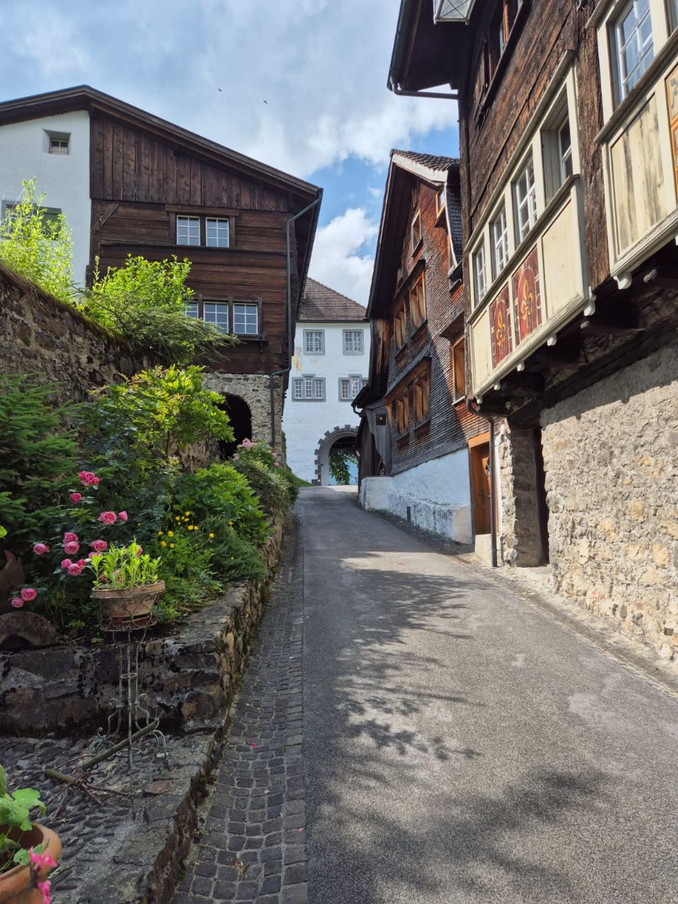 Im Gegensatz zum gestrigen Tag mit Dauerregen, empfing uns der heutige Tag trocken. Im Verlaufe des Tages wechselten sich Sonne und Wolken ab, doch es blies auch ein kräftiger Wind. Heute haben wir das Schloss Werdenberg besichtigt. Bereits der Spaziergang zum Schloss hinauf war herrlich: Er führte uns zuerst am Werdenberger-See vorbei, der von zahlreichen Enten, Schwänen und „Bucheli’s“ bewohnt wird, die ihre Nester bauten oder bereits am Brüten waren. Am wunderschön bemalten „Schlangenhaus“ hörten wir uns die Geschichte einer damals im Hochmittelalter ansässigen Familie an, die nach dem Unfallstod des Vaters in grossee Armut lebte. Auch wie die Menschen früher in der Region Werdenberg lebten, wurde im Museum Schlangenhaus zum Anfassen nah inszeniert. Oben am Schloss angekommen, genossen wir die Aussicht über Buchs und gönnten uns beim Bistro vor dem Schloss ein Glas erfrischend-fruchtiger „Federweiss“ aus der Region. Bei der Schlossbesichtigung wechselten wir uns ab, da Yuna verständlicherweise nicht mit hinein konnte. Der Eintritt war für uns als Raiffeisenbank-Mitglieder kostenlos. Während jemand von uns beiden bei Yuna blieb, erkundigte die andere Hälfte von uns das Schloss. Wer sich für die Historik der von Werdenbergs interessiert, wäre dort genau richtig. Wir konnten in die Geschichte der damaligen Landvögte und der Gräfin von Werdenberg eintauchen, erfuhren einiges über die damalige Lebensweise und die laufend vorgenommenen baulichen Veränderungen am Schloss. https://werdenberg.ch/informieren/schloss-staedtli-werdenberg/800-jahre-geschichte/ Der Rückweg gestaltete sich ebenso schön wie der Aufstieg. Werdenberg ist die älteste mittelalterliche Holzbausiedlung der Schweiz und natürlich vor allem durch das gleichnamige Schloss bekannt. Die Besichtigung der Siedlung schlug den Bogen von der Vergangenheit bis hin zur Gegenwart und wir bestaunten die schönen Häuschen, die bis heute ihren Charme haben. Als wir wiederum am Werdenberger-See zurück zum Campingplatz liefen, konnten wir der Versuchung eines Besuches der dortigen Eisdiele nicht widerstehen. Nachdem jeder einen Coupe „Snicker“ verdrückt hatten, erübrigte sich das Kochen eines Abendessens 🙈😅. Bruno schlief auf dem Beifahrersitz ein, Yuna in ihrem Bettchen unter dem Tisch, während ich am Laptop einiges an Bürokram erledigte.