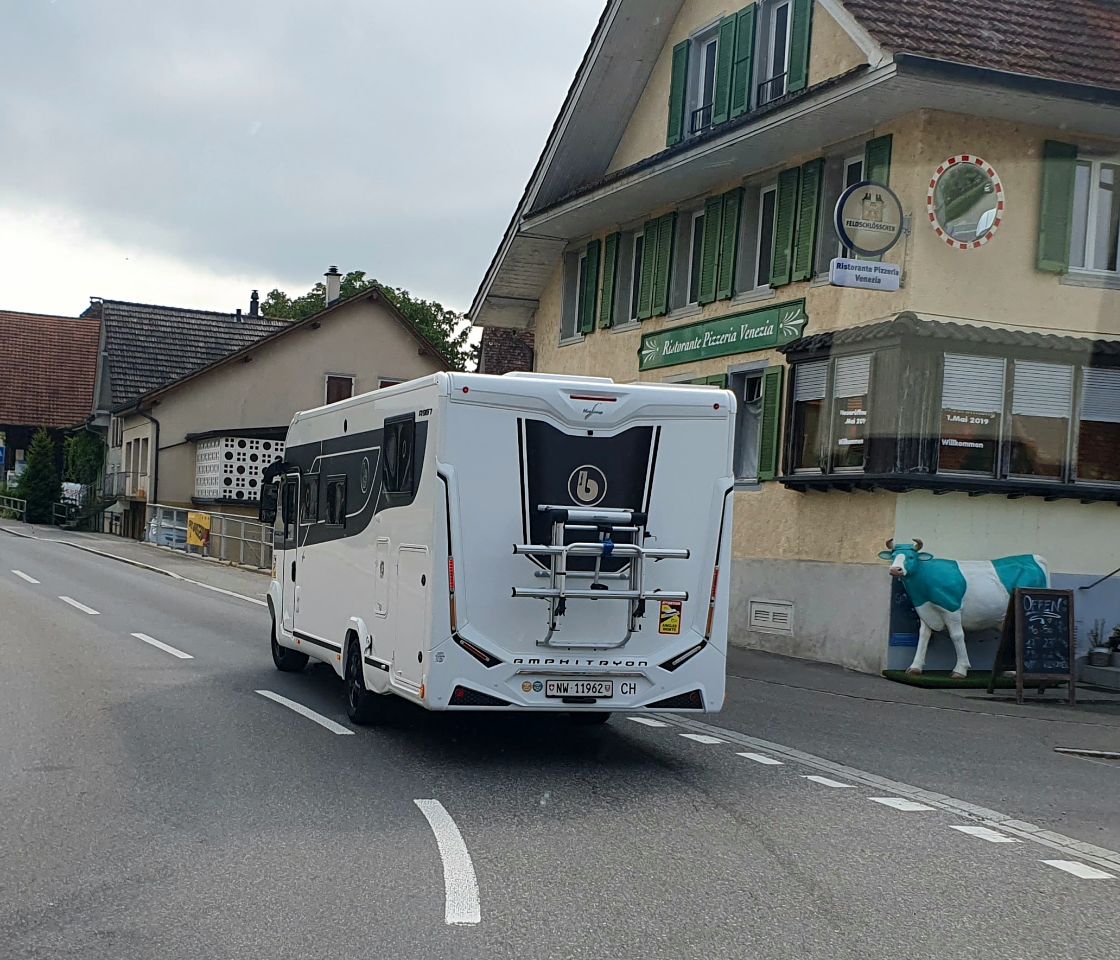 Der letzte Tag empfängt uns mit viel Sonnenschein ☀️😎, aber frischem Wind. Eigentlich wollten wir nach dem Frühstück heim fahren. Eigentlich… Doch die Hubstützen lassen sich unerklärlicherweise nicht hochfahren. Bruno probiert alles, was er selbst überprüfen kann (Strom, Sicherungen etc.). Leider klappt nichts… Anruf und Mail an den Händler. Nach einer halben Stunde ruft er zurück. Mittels Telefonsupport konnte das Problem gelöst werden – leider nur temporär. Wir müssen Benito zu Toni, unserm Händler bzw. zur Werkstatt bringen. Wir füllen noch etwas Wasser auf, dann gehts endlich los! Nach kurzer Fahrt merken wir, dass eine Schiebetür nicht verriegelt ist. Also anhalten… Da wartet schon das nächste Problem auf uns! Wasser auf dem Boden… Der Wasserfilter rinnt – wehalb auch immer. Also alles Wasser wieder ablassen, das Nasse aufnehmen. Auch das muss in der Werkstatt angeschaut werden. Trotz allem – schön wars. Der Stellplatz kann nur empfohlen werden. Es gäbe zwar noch einen Stellplatz, von wo man zu Fuss nach Wangen gelangt. Doch der ist war uns einfach zu gross, unpersönlich und wie anfangs erwähnt, besetzt.