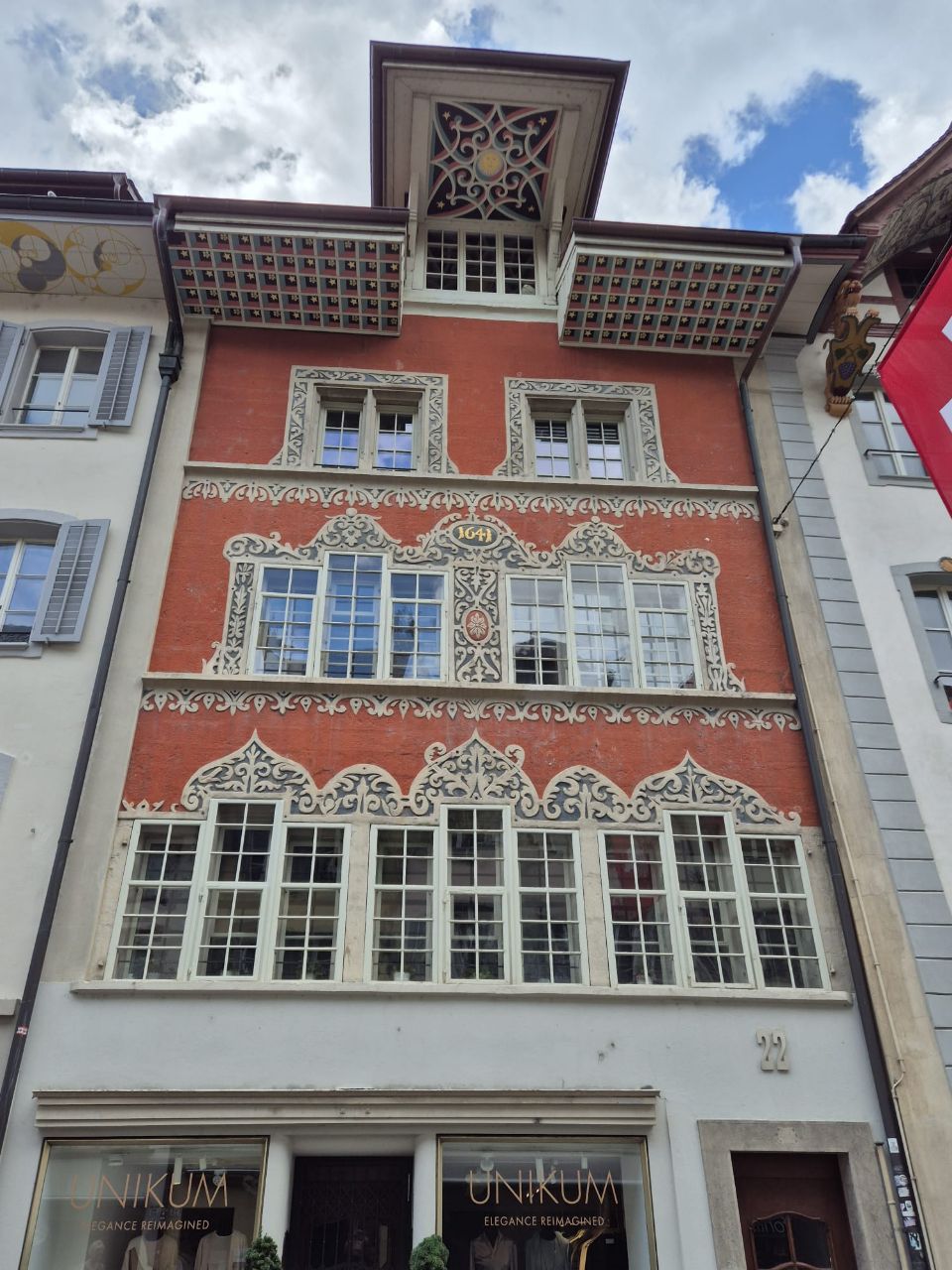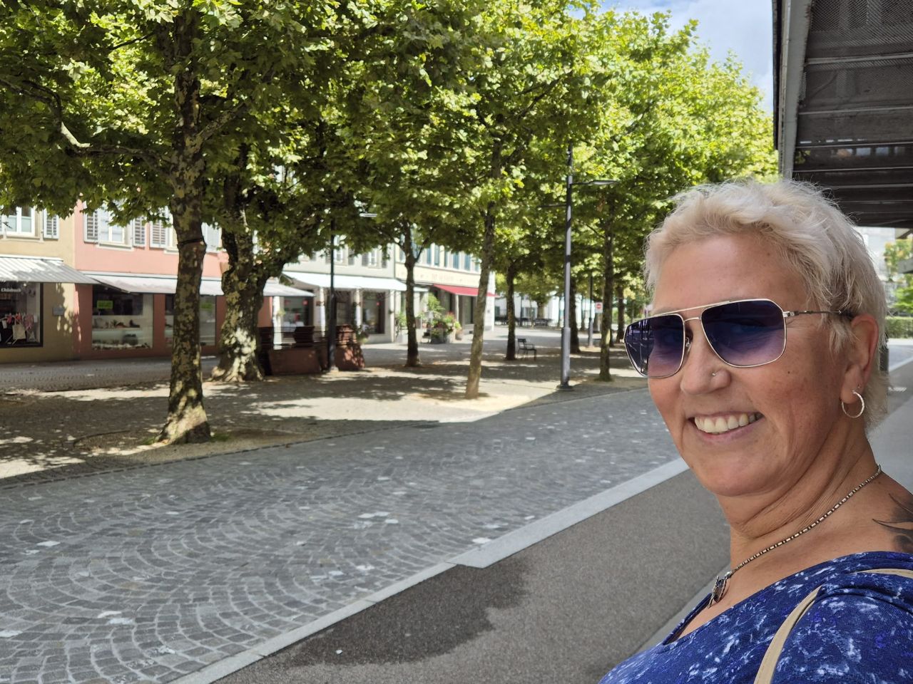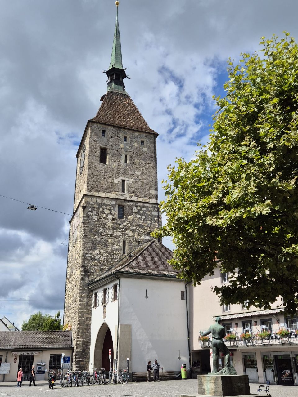 Da wir Benito 24 Std. auf dem Stellplatz stehen lassen dürfen, besuchen wir noch die nahegelegene Altstadt von Aarau (10 – 15 Min. Fussweg). Die Altstadt Aarau haben wir ziemlich unterschätzt. Sie ist nähmlich wirklich sehr hübsch! Wir bewundern die toll bemalten Dachunterbauten, die vielen Café’s/Restaurants und Witziges Detail: die Aarauer lassen Yuna’s Gesicht auf die Kackbeutel drucken…😂🐶👍🏼