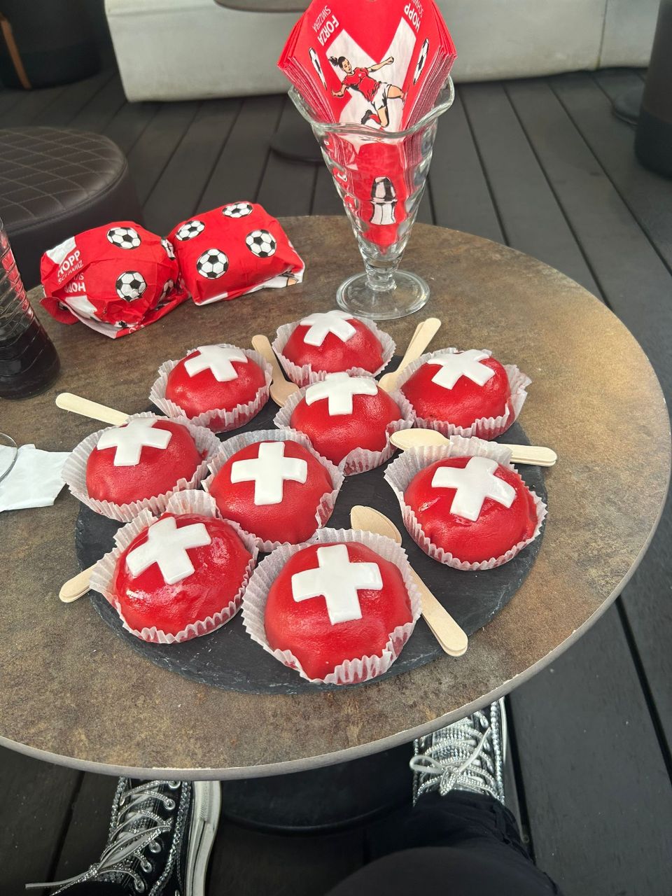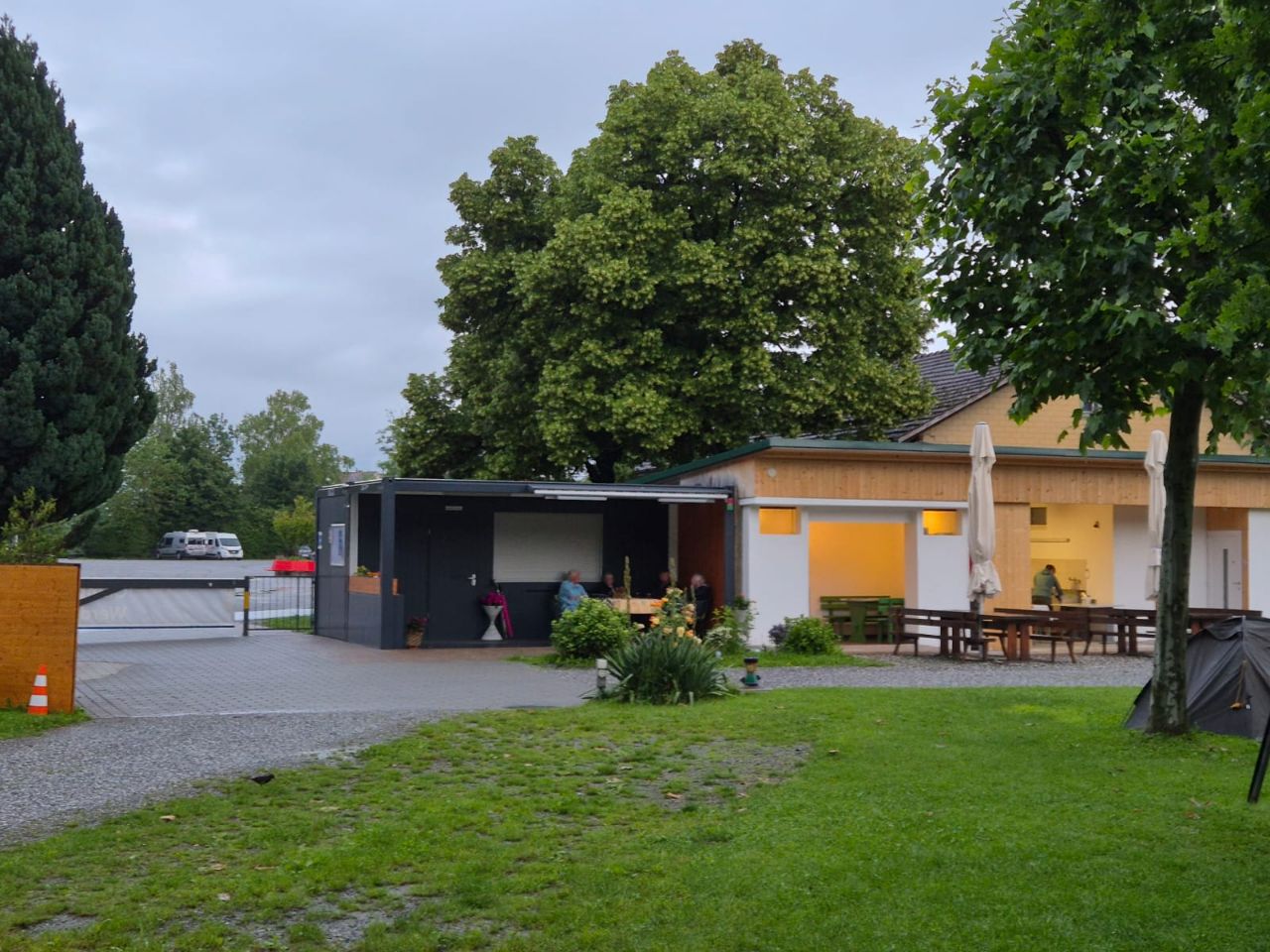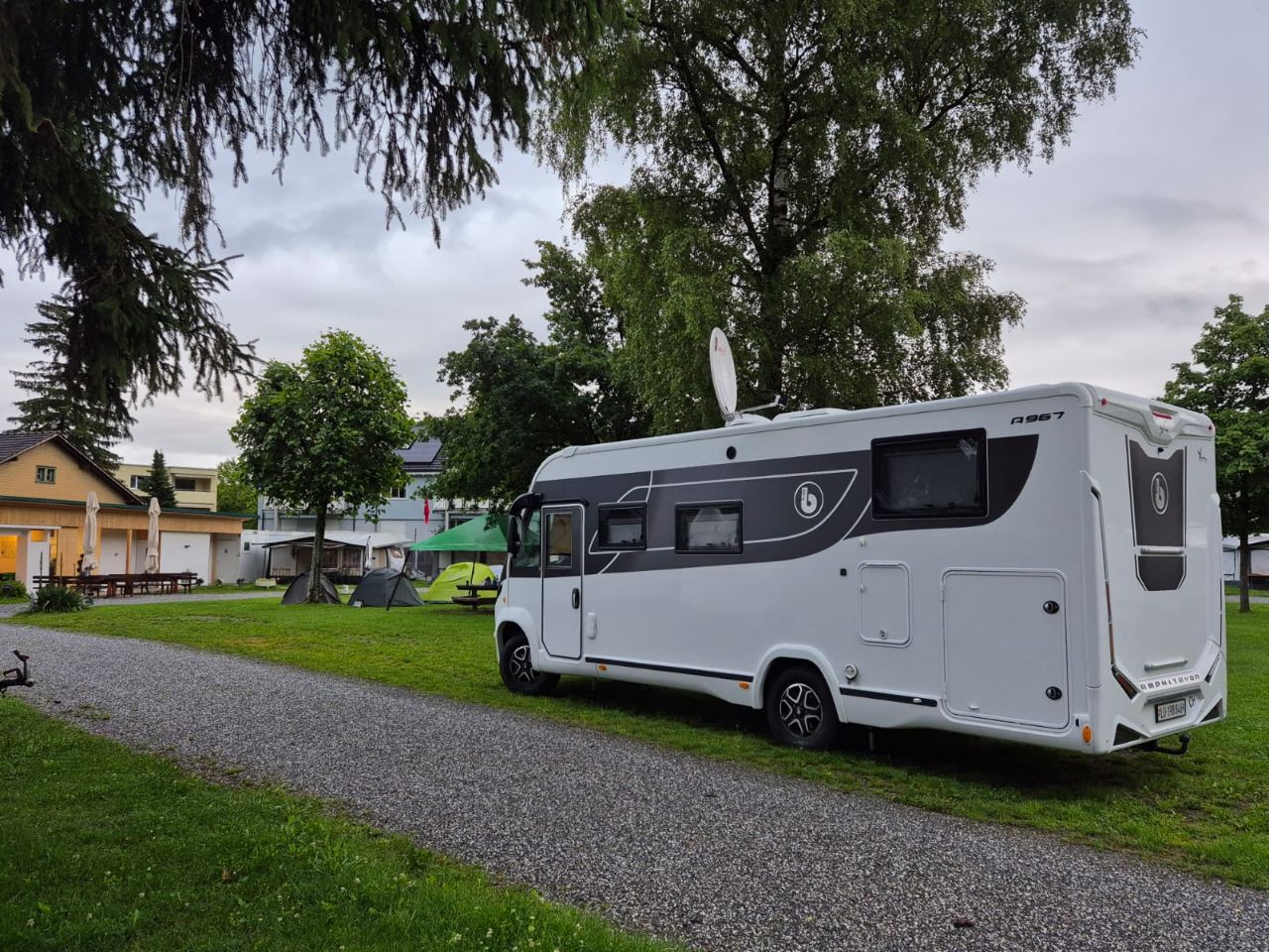 Wir sind einem langjährigen Freund zum 60. Geburtstag eingeladen. Er hat genau am Nationalfeiertag der Schweiz Geburtstag🔥🇨🇭🫕! Um beim Aufstellen und Dekorieren zu helfen, sind wir bereits früher eingetroffen. Leider hats immer wieder – teilweise sehr heftig – geregnet. Das hat aber der guten Stimmung keinen Abbruch getan. Yuna hat im WoMo dank einigen Beruhigungstropfen und speziellen Gehörschutz für Hunde die doofe Knallerei gut überstanden. So konnten wir also gleich 2 Parties gleichzeitig feiern 😅✌🏼🥳! Benito stand gleich neben dem Haus und so konnten wir nach der Feier direkt in die Heia fallen… 🛏😴.