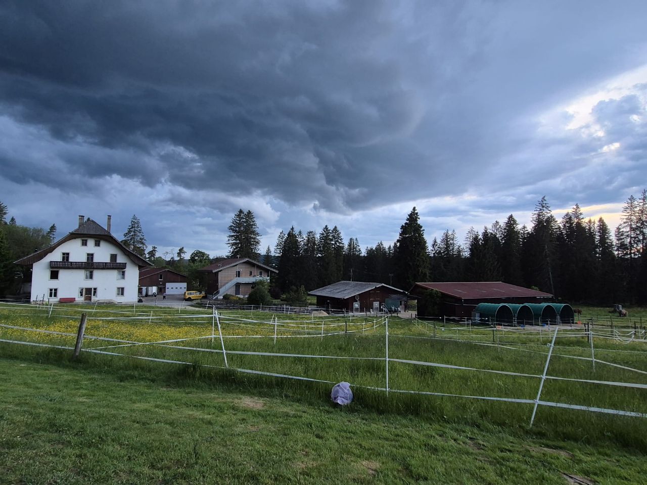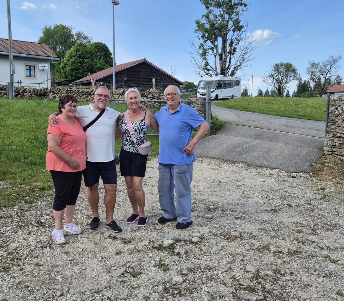 Bruno’s Cousine lebt mit ihrem Mann in Saignelégier. Da lag es nahe, dass wir sie nach vorgängiger Anmeldung besuchten. Herzlich war die Wiedersehensfreude und bei Glacé und Kaffee durften wir uns verwöhnen lassen. Später kamen noch Tochter und Sohn dazu. Es war eine gesellige Runde und wir hatten dabei viel zu lachen! Am späten Nachmittag machten wir uns auf, um einen Stell- oder Campingplatz zu suchen. In unmittelbarer Nähe von Saignelégier fand ein Pferdespring-Concour statt, weshalb sämtliche Stellplätze belegt und auch der Campingplatz voll war. Wir fanden jedoch nahe an Les Breuleux den Campingplatz camping les cerneux, der ruhig eingebettet im ländlichen lag. https://www.lescerneux.ch/ Der Himmel färbte sich immer dunkler und dunkler. Schwere Gewitterwolken zogen auf. Trotzdem konnten wir noch genüsslich draussen unser Abendessen einnehmen und nach dem Abwasch alles „schottendicht“ machen. Kurz darauf fielen die ersten dicken Tropfen, dann ging das Getrommel auf dem WoMo-Dach los, so dass man kaum noch das eigene Wort verstand. In der Nacht regnete es immer wieder einmal, doch der Morgen begrüsste uns wieder mit Sonnenschein, aber auch einigen Quellwolken, die wohl im Verlaufe des Tages noch zunehmen werden. Im Badeteich quakten die Frösche um die Wette und die grasenden Kühe auf der Weide verliehen mit ihrem Glockengebimmel dem ganzen Natur-Ambiente etwas meditierendes. Uns ist der heutige Wetterverlauf ziemlich egal, denn für uns heisst es nach dem Frühstück nach Hause zu fahren. Mehr anzeigen