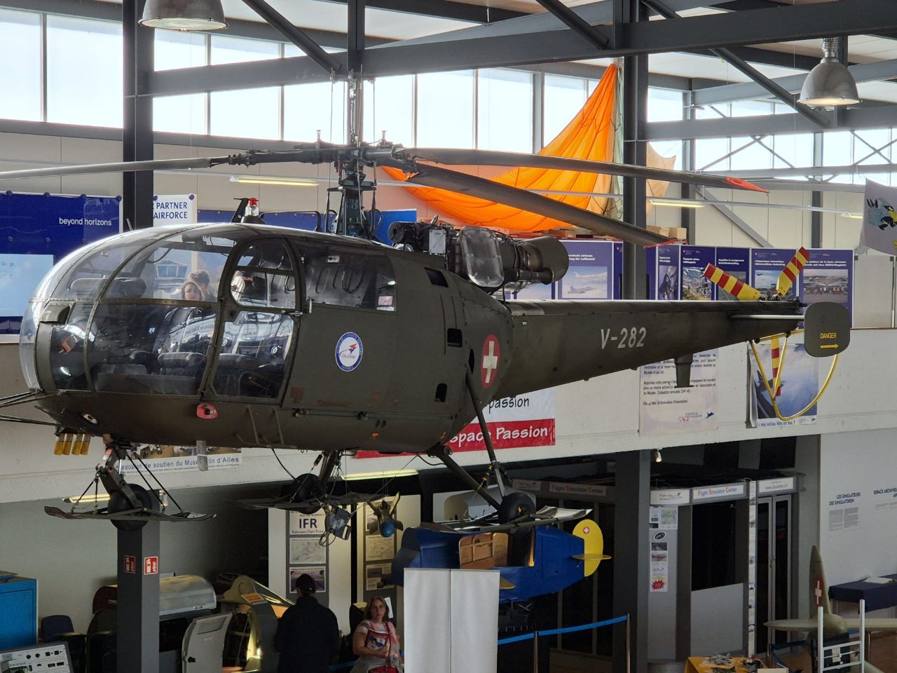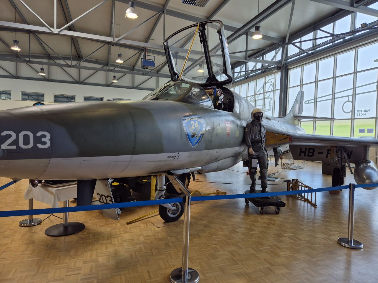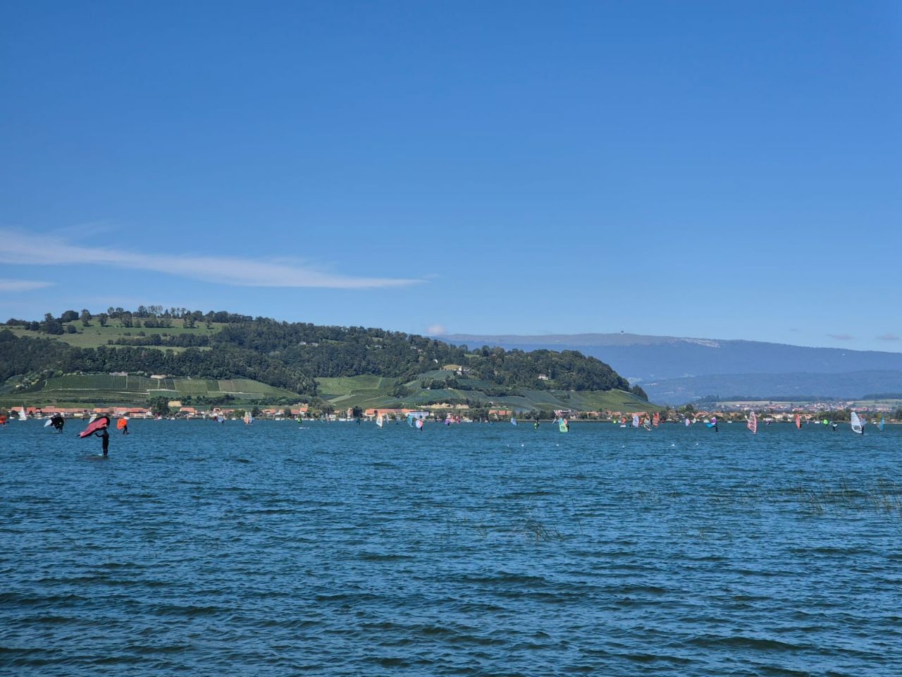 Nach einem währschaften Brunch fuhren wir eine kurze Strecke zum Schweizerischen Militärflugzeugmuseum Payerne. Es gab im Militärflugzeugmuseum „Clin d’Ailes“ („Flügelzwinkern“) viel Interessantes zu sehen: Historische Schweizer Militärflugzeuge und Helikopter aus der Ära der Düsentriebwerke und Turbinen. Eine einzigartige Sammlung des aeronautischen Erbgutes der Schweiz waren hier zu sehen. So z. B. eine Vampire DH-100, eine Venom DH 112, eine Pilatus-Aerkraft PC-7, ein Hunter, die Alouette II + III, eine Mirage III S, III RS, III DS, eine Tiger F-5 und Hawk der British Aerospace Eine temporäre Sonderausstellung 2024 ist Claude Nicollier gewidtmet, dem ersten Schweizer Astronauten und ehem. Präsident des Stiftungsrates des Museums. Anlässlich der Payerne Space Days 2024 anfangs Oktober wird im Museum Clin d’Ailes den 80. Geburtstag von Claude Nicollier gefeiert. Er wird dann persönlich vor Ort sein. An diesem Wochenende fand zugleich eine Sonderausstellung von Modellbau-Flugzeugen statt. Ich erinnere mich, dass früher im (Kinder-)Zimmer meines Bruders etliche Kampf– und Militärflugzeuge von der Decke hingen, die er in mühsamster Kleinarbeit und zahlreichen Arbeitsstunden zusammengebaut hatte. Auch mein Sohn hat eine Affinität zu Kampf- und Militärflugzeugen. Bereits im Kindesalter sammelte er Modellflugzeuge, stellte diese in seiner Vitrine aus und erklärte mir u. a. den Unterschied zwischen einer FA-16 und FA-18. So kam es auch, dass er seine Lehre bei der RUAG in Emmen absolvierte, später dort auch arbeitete und dann zu den Pilatus Flugzeugwerke nach Stans wechselte, wo er sich intensiv mit der Produktion der PC-24 beschäftigt. Während des Museum-Besuches blieb Yuna im WoMo, wo sie sich ein Nickerchen gönnte. Zwischenzeitlich können wir Yuna sehr gut für 2 – 3 Stunden alleine zuhause oder im WoMo lassen. Aber der Tag ist noch nicht zu Ende… Ab gehts über den Hügel an den Neuenburgersee…