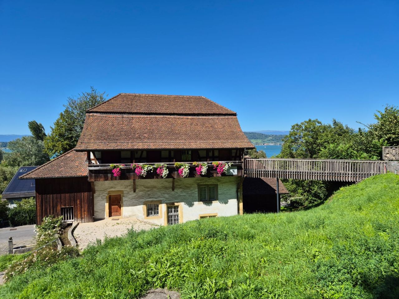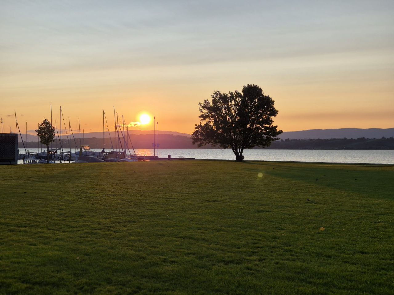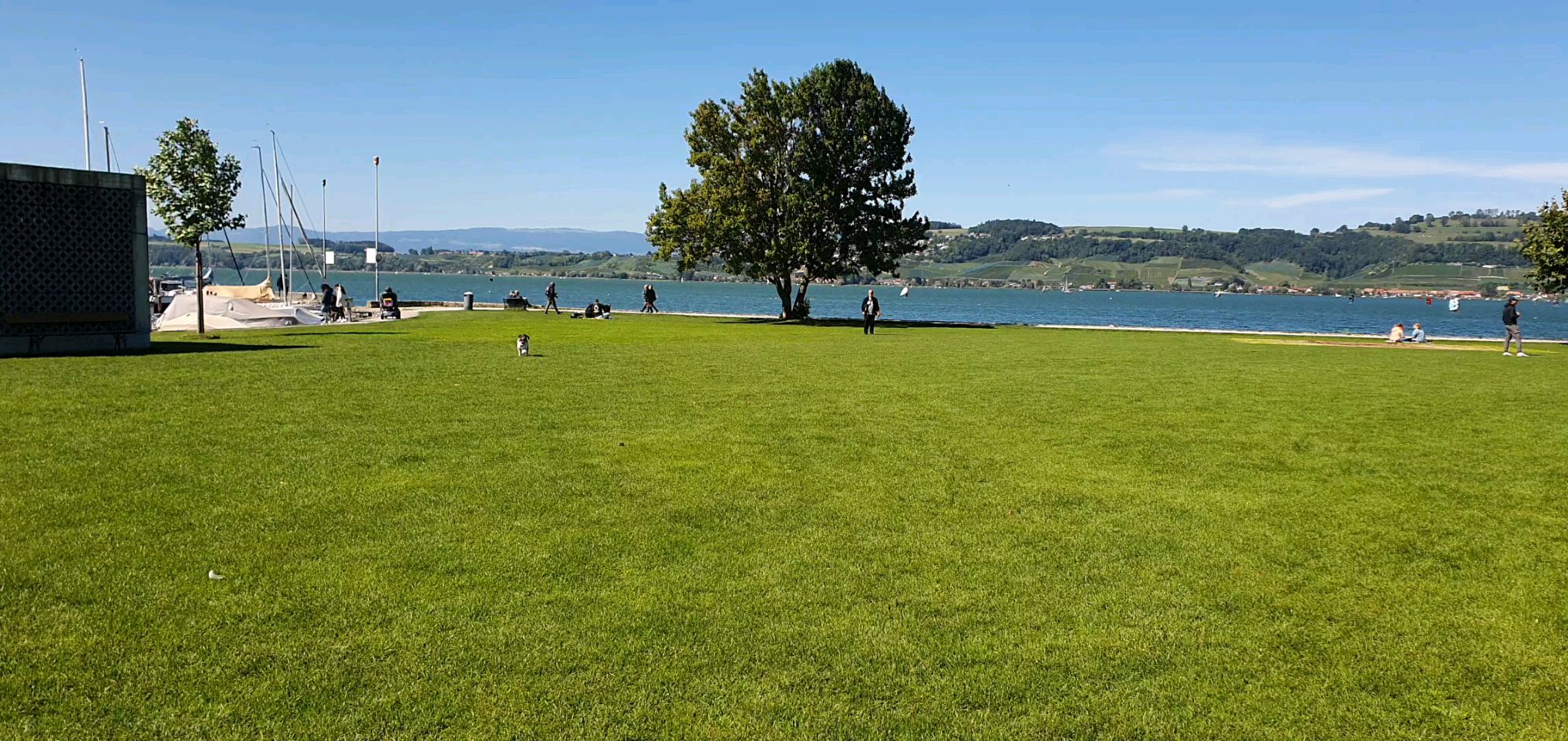 Nach einem währschaften Brunch fuhren wir eine kurze Strecke zum Schweizerischen Militärflugzeugmuseum Payerne. Es gab im Militärflugzeugmuseum „Clin d’Ailes“ („Flügelzwinkern“) viel Interessantes zu sehen: Historische Schweizer Militärflugzeuge und Helikopter aus der Ära der Düsentriebwerke und Turbinen. Eine einzigartige Sammlung des aeronautischen Erbgutes der Schweiz waren hier zu sehen. So z. B. eine Vampire DH-100, eine Venom DH 112, eine Pilatus-Aerkraft PC-7, ein Hunter, die Alouette II + III, eine Mirage III S, III RS, III DS, eine Tiger F-5 und Hawk der British Aerospace Eine temporäre Sonderausstellung 2024 ist Claude Nicollier gewidtmet, dem ersten Schweizer Astronauten und ehem. Präsident des Stiftungsrates des Museums. Anlässlich der Payerne Space Days 2024 anfangs Oktober wird im Museum Clin d’Ailes den 80. Geburtstag von Claude Nicollier gefeiert. Er wird dann persönlich vor Ort sein. An diesem Wochenende fand zugleich eine Sonderausstellung von Modellbau-Flugzeugen statt. Ich erinnere mich, dass früher im (Kinder-)Zimmer meines Bruders etliche Kampf– und Militärflugzeuge von der Decke hingen, die er in mühsamster Kleinarbeit und zahlreichen Arbeitsstunden zusammengebaut hatte. Auch mein Sohn hat eine Affinität zu Kampf- und Militärflugzeugen. Bereits im Kindesalter sammelte er Modellflugzeuge, stellte diese in seiner Vitrine aus und erklärte mir u. a. den Unterschied zwischen einer FA-16 und FA-18. So kam es auch, dass er seine Lehre bei der RUAG in Emmen absolvierte, später dort auch arbeitete und dann zu den Pilatus Flugzeugwerke nach Stans wechselte, wo er sich intensiv mit der Produktion der PC-24 beschäftigt. Während des Museum-Besuches blieb Yuna im WoMo, wo sie sich ein Nickerchen gönnte. Zwischenzeitlich können wir Yuna sehr gut für 2 – 3 Stunden alleine zuhause oder im WoMo lassen. Aber der Tag ist noch nicht zu Ende… Ab gehts über den Hügel an den Neuenburgersee…