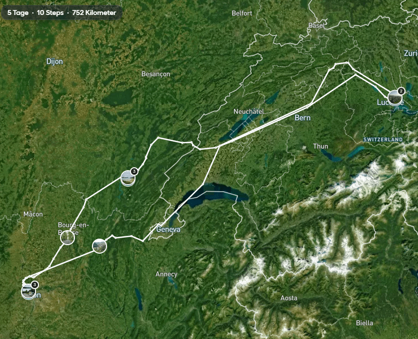 Wir freuen uns, nach unserer Balkantour im Mai für knapp eine Woche ins Burgund zu fahren. Unsere Strecke führt uns vorerst auf der Autobahn Richtung Bern, Neuenburg und auf Nebenstrassen ins Jura-Gebiet.