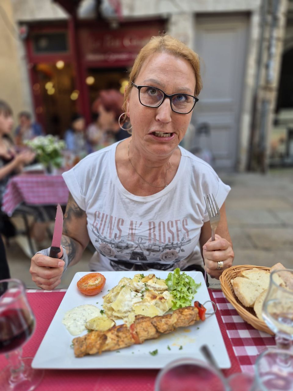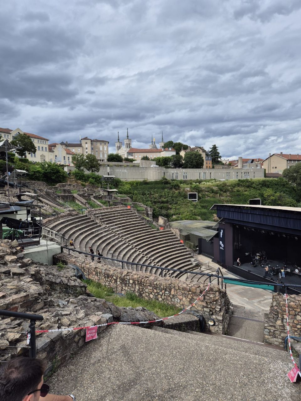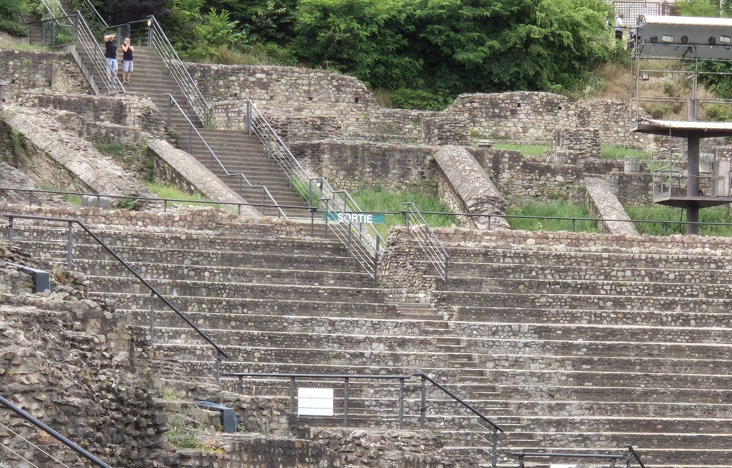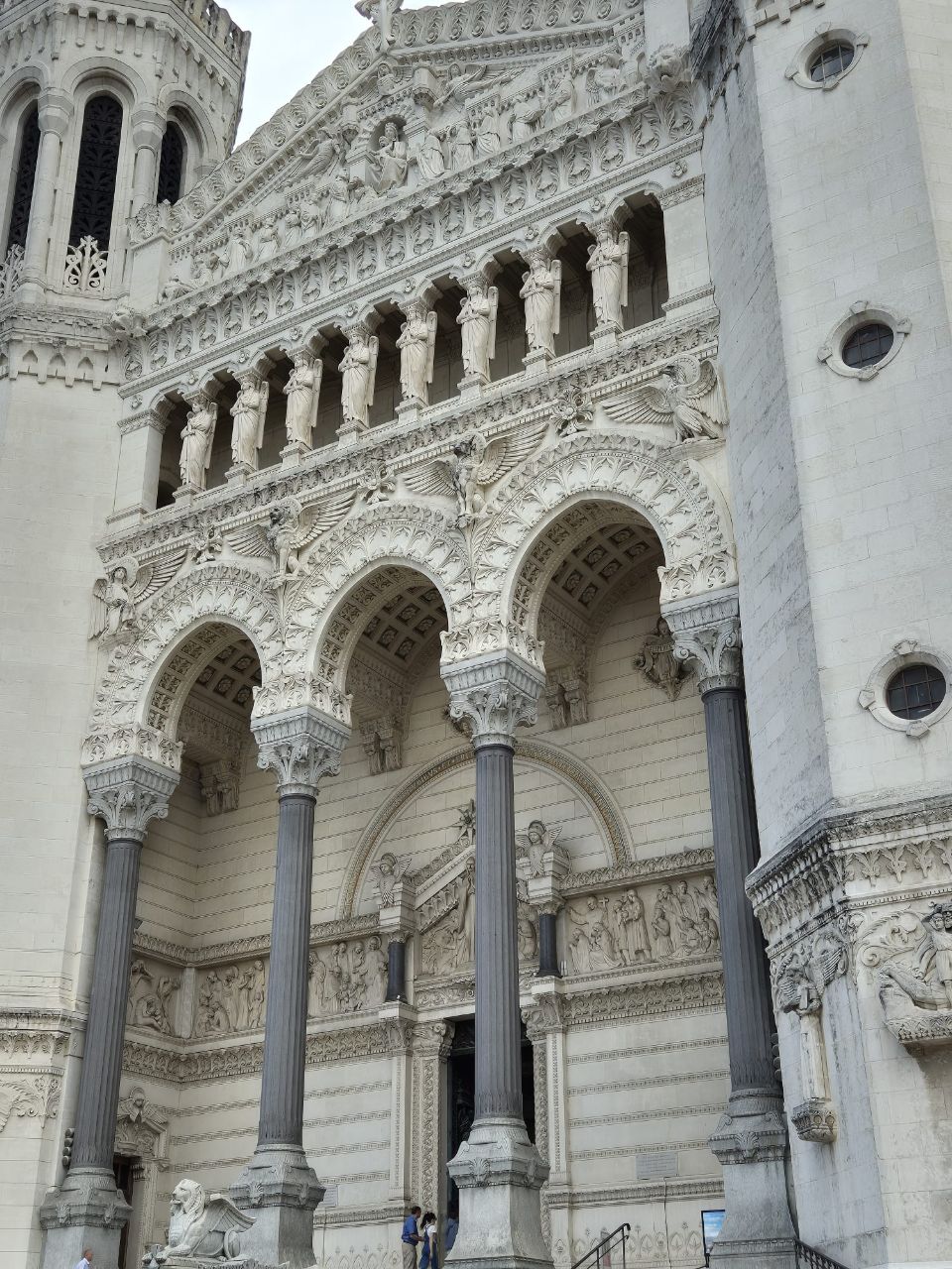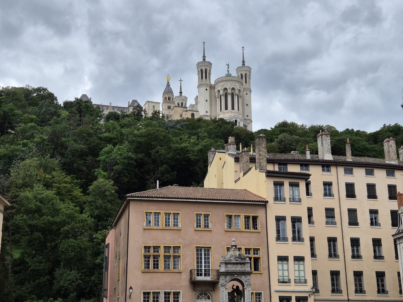 Mit Bus und Metro fuhren wir heute mitten in die Metropole der UNESCO-Stadt Lyon. Im Laufe seiner zweitausendjährigen (!) Geschichte hat sich Lyon im Stil verschiedener Epochen entwickelt. Die wunderschöne Altstadt Vieux-Lyon hat es verstanden, den Charme seiner unzähligen Strässchen und Gassen aus der Renaissance zu bewahren. Wir schlenderten durch die mit Pflastersteinen besetzten Gässchen, besuchten einige der vielen kleinen Boutiquen mit Spezialitäten aus Lyon und der Region, schauten uns die Überreste von Lugdunum an (Hauptstadt der Gallier in der römischen Kaiserzeit) und stiegen die Treppen der beiden antiken Theater hoch, die heute für div. Events genutzt werden. Wir durften Zeugen einer Filmaufnahme sein und liessen es uns nicht nehmen, auf der Terrasse eines Restaurants dem Geschehen zuzuschauen. Anhand der Kostüme, der Requisiten und Automobilen dürfte es sich vermutlich um einen Film in den 30er/40er-Jahren handeln. Dieselbe Szene wurde wieder und wieder gespielt, bis sie „im Kasten“ war. Wir haben nur einen Teil der unzähligen Sehenswürdigkeiten besuchen können, aber das reichte, um unsere Füsse platt zu laufen. Mit der Standseilbahn ging’s dann hinauf auf den ältesten Hügel Lyons. Uns war die Basilika Notre-Dame de Fourvière natürlich schon lange ins Auge gestochen, die oben auf dem Hügel thronte. Nun sahen wir sie direkt vor uns. Genau wie die historische Altstadt zählt sie zum UNESCO Weltkulturerbe. Der Innenraum der prächtigen Basilika ist atemberaubend, gewaltig, pompös und dekadent zugleich, insbes. wenn man bedenkt, dass auch in Lyon Menschen in Armut lebten. Aussen wie Innen zeigt sich die hohe Kunst der Architekten, der Steinhauer und den vielen anderen Künstlern, die am Bau mitwirkten. Die hohe Decke, die Säulen und Wände sind reich bemalt oder mit viel Gold, Mosaiken und Statuen verziert. Das Sonnenlicht liess die biblischen Motive der grossen Buntglasfenster hell erleuchten. Im Anschluss begaben wir uns zu Fuss hinunter zurück in die Altstadt. Aber nicht, ohne vorher von der grossen Aussichtsplattform die Stadt von oben zu betrachten. Die Aussicht war phänomenal und wir konnten weit in die Ferne blicken. Bei den vielen Restaurants war es uns nicht leicht gefallen, eine Auswahl zu treffen. Schliesslich fanden wir ein gemütliches Plätzchen für unser Abendessen. Auch Yuna wurde ungefragt eine Schale Wasser serviert. Mit vollem Magen (eine Crépe Praliné durfte am Schluss nicht fehlen) und vielen Eindrücken fuhren wir wieder mit den ÖV zum Campingplatz zurück. An die geschichtlich Interessierten: Die Stadt wurde vor mehr als 2.000 Jahren von den alten Römern gegründet. Damals trug sie den Namen Lugdunum, was „Festung des Lugus“ bedeutet. Lugus war ein Gott der Kelten, die das Gebiet schon lange vor den Römern besiedelten. Im Mittelalter wurde aus Lugdunum der Stadtname Lyon.