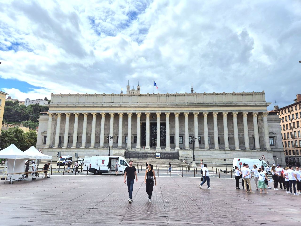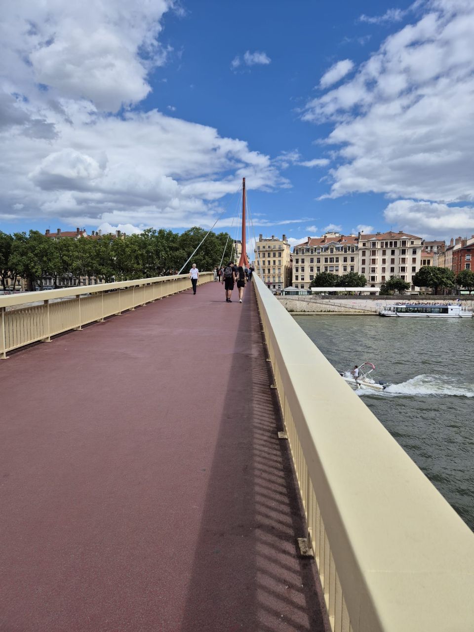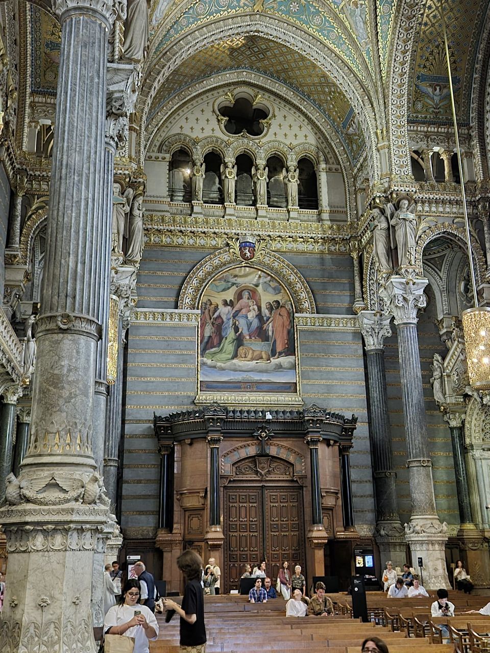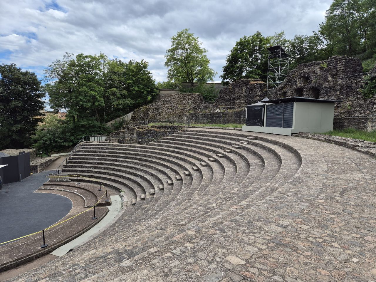 Mit Bus und Metro fuhren wir heute mitten in die Metropole der UNESCO-Stadt Lyon. Im Laufe seiner zweitausendjährigen (!) Geschichte hat sich Lyon im Stil verschiedener Epochen entwickelt. Die wunderschöne Altstadt Vieux-Lyon hat es verstanden, den Charme seiner unzähligen Strässchen und Gassen aus der Renaissance zu bewahren. Wir schlenderten durch die mit Pflastersteinen besetzten Gässchen, besuchten einige der vielen kleinen Boutiquen mit Spezialitäten aus Lyon und der Region, schauten uns die Überreste von Lugdunum an (Hauptstadt der Gallier in der römischen Kaiserzeit) und stiegen die Treppen der beiden antiken Theater hoch, die heute für div. Events genutzt werden. Wir durften Zeugen einer Filmaufnahme sein und liessen es uns nicht nehmen, auf der Terrasse eines Restaurants dem Geschehen zuzuschauen. Anhand der Kostüme, der Requisiten und Automobilen dürfte es sich vermutlich um einen Film in den 30er/40er-Jahren handeln. Dieselbe Szene wurde wieder und wieder gespielt, bis sie „im Kasten“ war. Wir haben nur einen Teil der unzähligen Sehenswürdigkeiten besuchen können, aber das reichte, um unsere Füsse platt zu laufen. Mit der Standseilbahn ging’s dann hinauf auf den ältesten Hügel Lyons. Uns war die Basilika Notre-Dame de Fourvière natürlich schon lange ins Auge gestochen, die oben auf dem Hügel thronte. Nun sahen wir sie direkt vor uns. Genau wie die historische Altstadt zählt sie zum UNESCO Weltkulturerbe. Der Innenraum der prächtigen Basilika ist atemberaubend, gewaltig, pompös und dekadent zugleich, insbes. wenn man bedenkt, dass auch in Lyon Menschen in Armut lebten. Aussen wie Innen zeigt sich die hohe Kunst der Architekten, der Steinhauer und den vielen anderen Künstlern, die am Bau mitwirkten. Die hohe Decke, die Säulen und Wände sind reich bemalt oder mit viel Gold, Mosaiken und Statuen verziert. Das Sonnenlicht liess die biblischen Motive der grossen Buntglasfenster hell erleuchten. Im Anschluss begaben wir uns zu Fuss hinunter zurück in die Altstadt. Aber nicht, ohne vorher von der grossen Aussichtsplattform die Stadt von oben zu betrachten. Die Aussicht war phänomenal und wir konnten weit in die Ferne blicken. Bei den vielen Restaurants war es uns nicht leicht gefallen, eine Auswahl zu treffen. Schliesslich fanden wir ein gemütliches Plätzchen für unser Abendessen. Auch Yuna wurde ungefragt eine Schale Wasser serviert. Mit vollem Magen (eine Crépe Praliné durfte am Schluss nicht fehlen) und vielen Eindrücken fuhren wir wieder mit den ÖV zum Campingplatz zurück. An die geschichtlich Interessierten: Die Stadt wurde vor mehr als 2.000 Jahren von den alten Römern gegründet. Damals trug sie den Namen Lugdunum, was „Festung des Lugus“ bedeutet. Lugus war ein Gott der Kelten, die das Gebiet schon lange vor den Römern besiedelten. Im Mittelalter wurde aus Lugdunum der Stadtname Lyon.