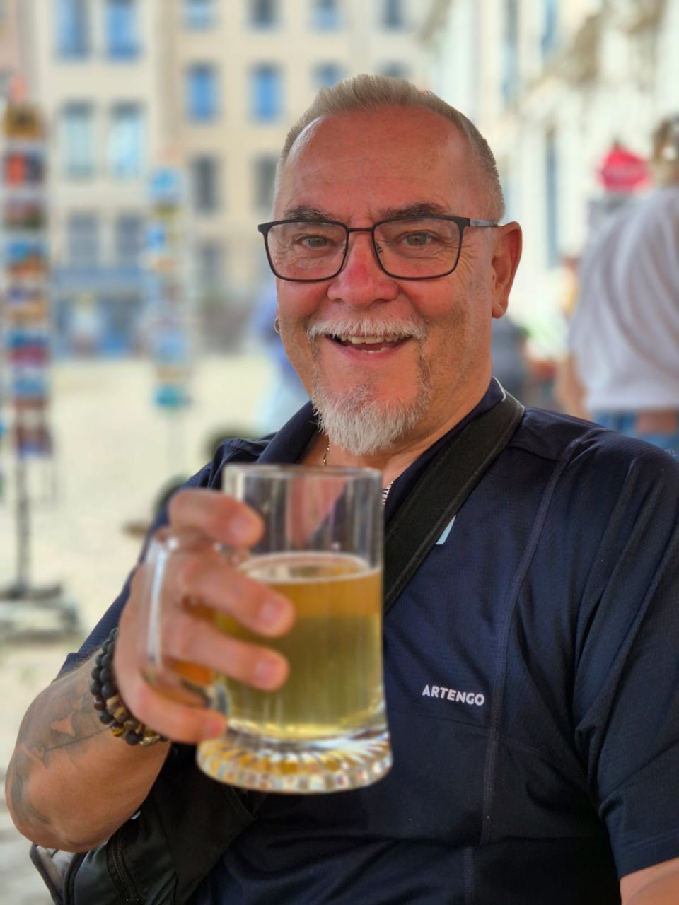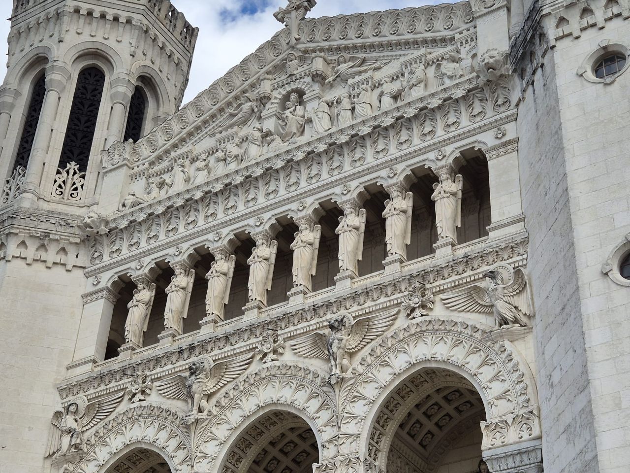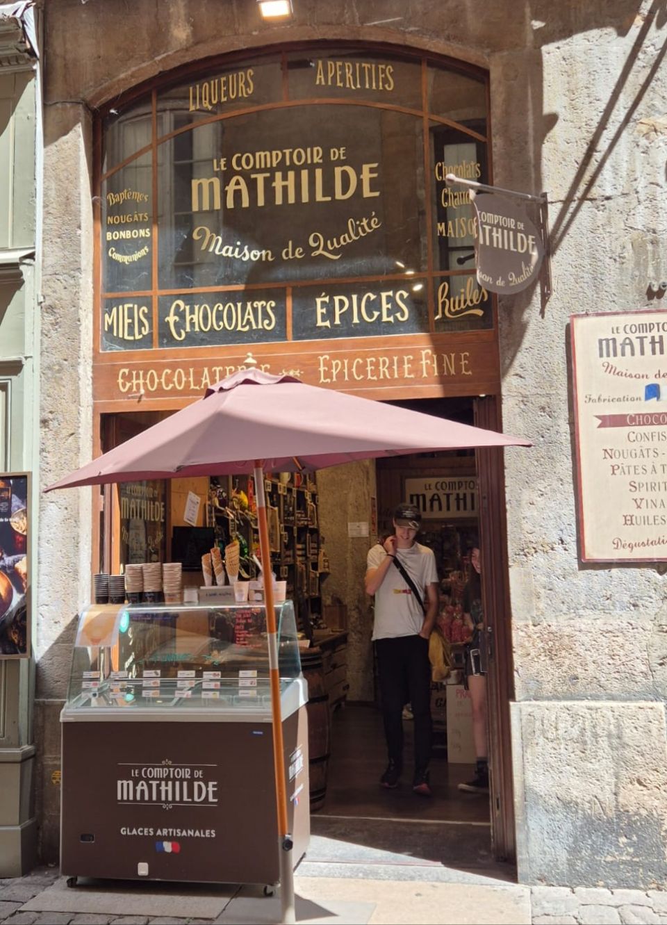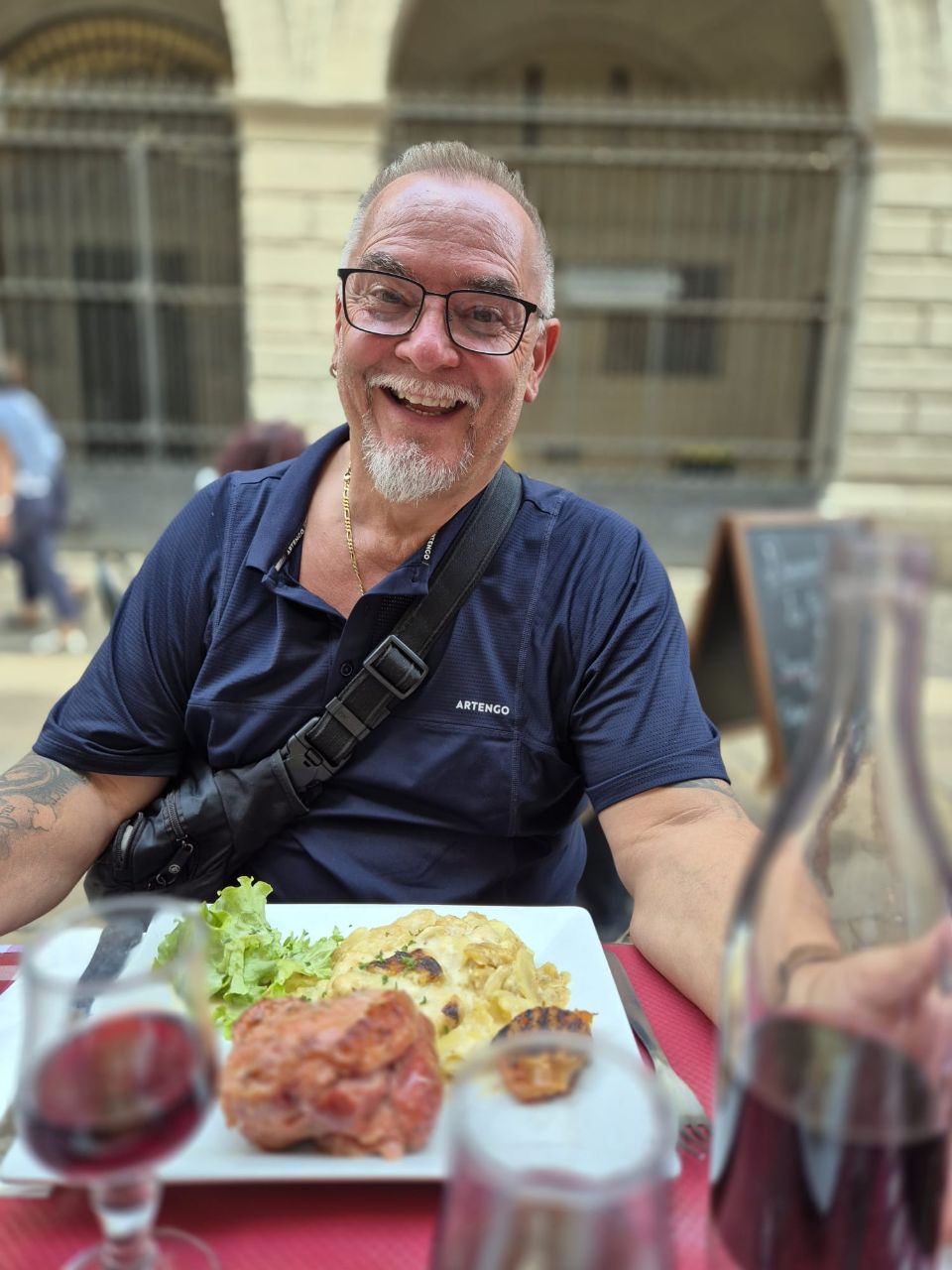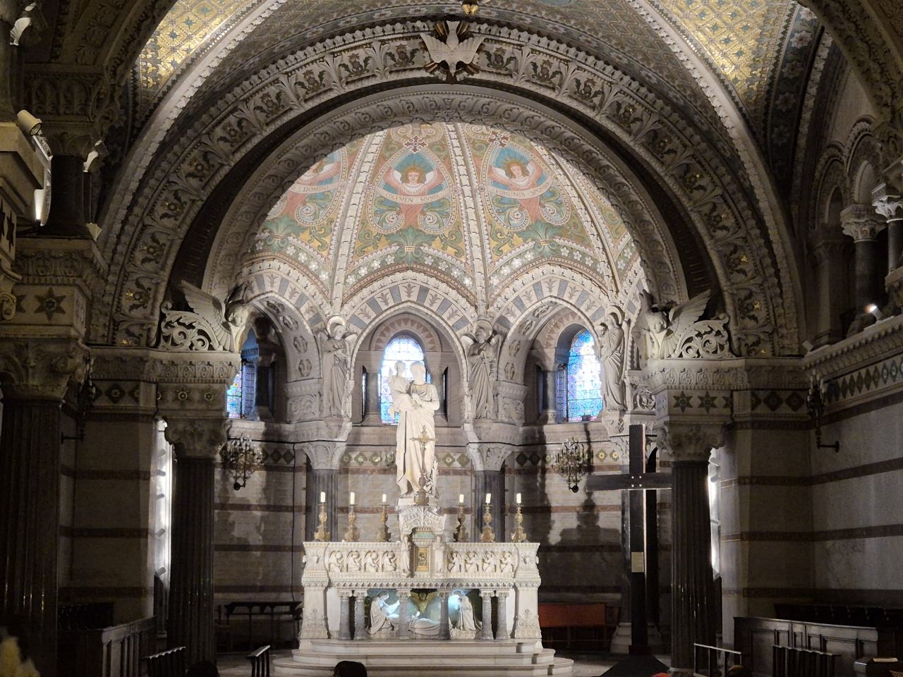 Mit Bus und Metro fuhren wir heute mitten in die Metropole der UNESCO-Stadt Lyon. Im Laufe seiner zweitausendjährigen (!) Geschichte hat sich Lyon im Stil verschiedener Epochen entwickelt. Die wunderschöne Altstadt Vieux-Lyon hat es verstanden, den Charme seiner unzähligen Strässchen und Gassen aus der Renaissance zu bewahren. Wir schlenderten durch die mit Pflastersteinen besetzten Gässchen, besuchten einige der vielen kleinen Boutiquen mit Spezialitäten aus Lyon und der Region, schauten uns die Überreste von Lugdunum an (Hauptstadt der Gallier in der römischen Kaiserzeit) und stiegen die Treppen der beiden antiken Theater hoch, die heute für div. Events genutzt werden. Wir durften Zeugen einer Filmaufnahme sein und liessen es uns nicht nehmen, auf der Terrasse eines Restaurants dem Geschehen zuzuschauen. Anhand der Kostüme, der Requisiten und Automobilen dürfte es sich vermutlich um einen Film in den 30er/40er-Jahren handeln. Dieselbe Szene wurde wieder und wieder gespielt, bis sie „im Kasten“ war. Wir haben nur einen Teil der unzähligen Sehenswürdigkeiten besuchen können, aber das reichte, um unsere Füsse platt zu laufen. Mit der Standseilbahn ging’s dann hinauf auf den ältesten Hügel Lyons. Uns war die Basilika Notre-Dame de Fourvière natürlich schon lange ins Auge gestochen, die oben auf dem Hügel thronte. Nun sahen wir sie direkt vor uns. Genau wie die historische Altstadt zählt sie zum UNESCO Weltkulturerbe. Der Innenraum der prächtigen Basilika ist atemberaubend, gewaltig, pompös und dekadent zugleich, insbes. wenn man bedenkt, dass auch in Lyon Menschen in Armut lebten. Aussen wie Innen zeigt sich die hohe Kunst der Architekten, der Steinhauer und den vielen anderen Künstlern, die am Bau mitwirkten. Die hohe Decke, die Säulen und Wände sind reich bemalt oder mit viel Gold, Mosaiken und Statuen verziert. Das Sonnenlicht liess die biblischen Motive der grossen Buntglasfenster hell erleuchten. Im Anschluss begaben wir uns zu Fuss hinunter zurück in die Altstadt. Aber nicht, ohne vorher von der grossen Aussichtsplattform die Stadt von oben zu betrachten. Die Aussicht war phänomenal und wir konnten weit in die Ferne blicken. Bei den vielen Restaurants war es uns nicht leicht gefallen, eine Auswahl zu treffen. Schliesslich fanden wir ein gemütliches Plätzchen für unser Abendessen. Auch Yuna wurde ungefragt eine Schale Wasser serviert. Mit vollem Magen (eine Crépe Praliné durfte am Schluss nicht fehlen) und vielen Eindrücken fuhren wir wieder mit den ÖV zum Campingplatz zurück. An die geschichtlich Interessierten: Die Stadt wurde vor mehr als 2.000 Jahren von den alten Römern gegründet. Damals trug sie den Namen Lugdunum, was „Festung des Lugus“ bedeutet. Lugus war ein Gott der Kelten, die das Gebiet schon lange vor den Römern besiedelten. Im Mittelalter wurde aus Lugdunum der Stadtname Lyon.
