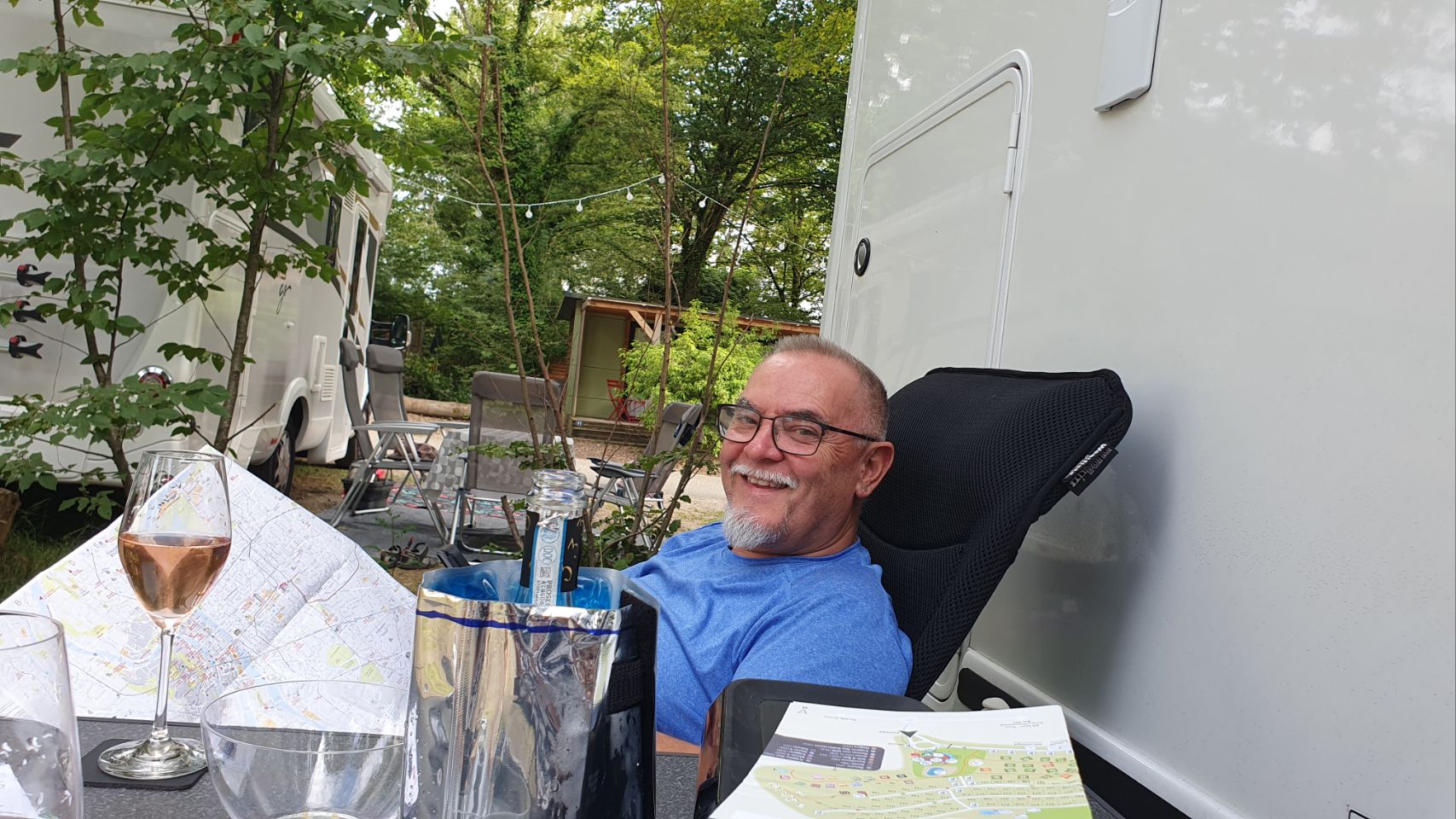 Nach einer schönen Fahrt auf Nebenstrassen durch das Beaujolais-Gebiet sind wir gut auf dem Camping de Lyon angekommen. Wie immer geniessen wir zuerst einen feinen Apéritiv. Und zwar einen Prosecco D.O.C Rosé Millesimato von unseren Weinbau-Freunden Roberto und Carina Trevisan aus Motta di Livenza (Italien). Hier in Dardilly ist es mit 22 °C angenehm warm. Die Wetterprognose für die nächten Tage verspricht Gutes (morgen Do. 25 °C, Fr. 27°C). Mal schauen, wie’s tatsächlich kommt…