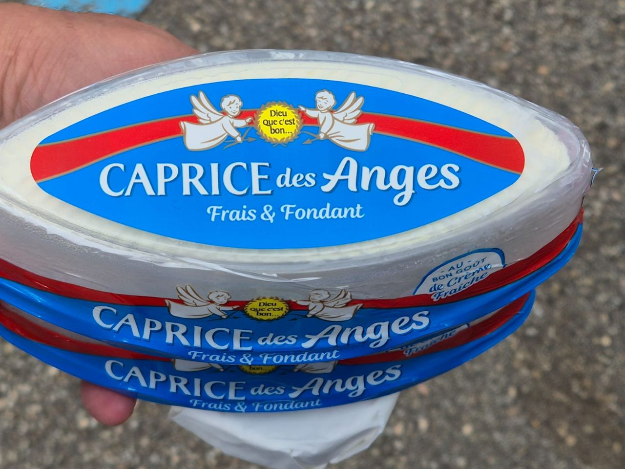 Was würdet ihr machen, wenn ihr auf der Route nach Lyon an einer grossen Käse-Fabrik vorbei fahrt? Weiterfahren? Auf keinen Fall!! Also umkehren und sich im Direktverkaufsladen mit Weichkäse (Caprice de anges) eindecken. Der Kleinste (ein runder Camambert) musste gleich daran glauben und wurde mit Brot umgehend vernichtet… Mmmm, so fein (gewesen)!!