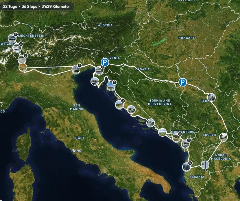 Der Küste entlang bis nach Albanien und über Serbien zurück