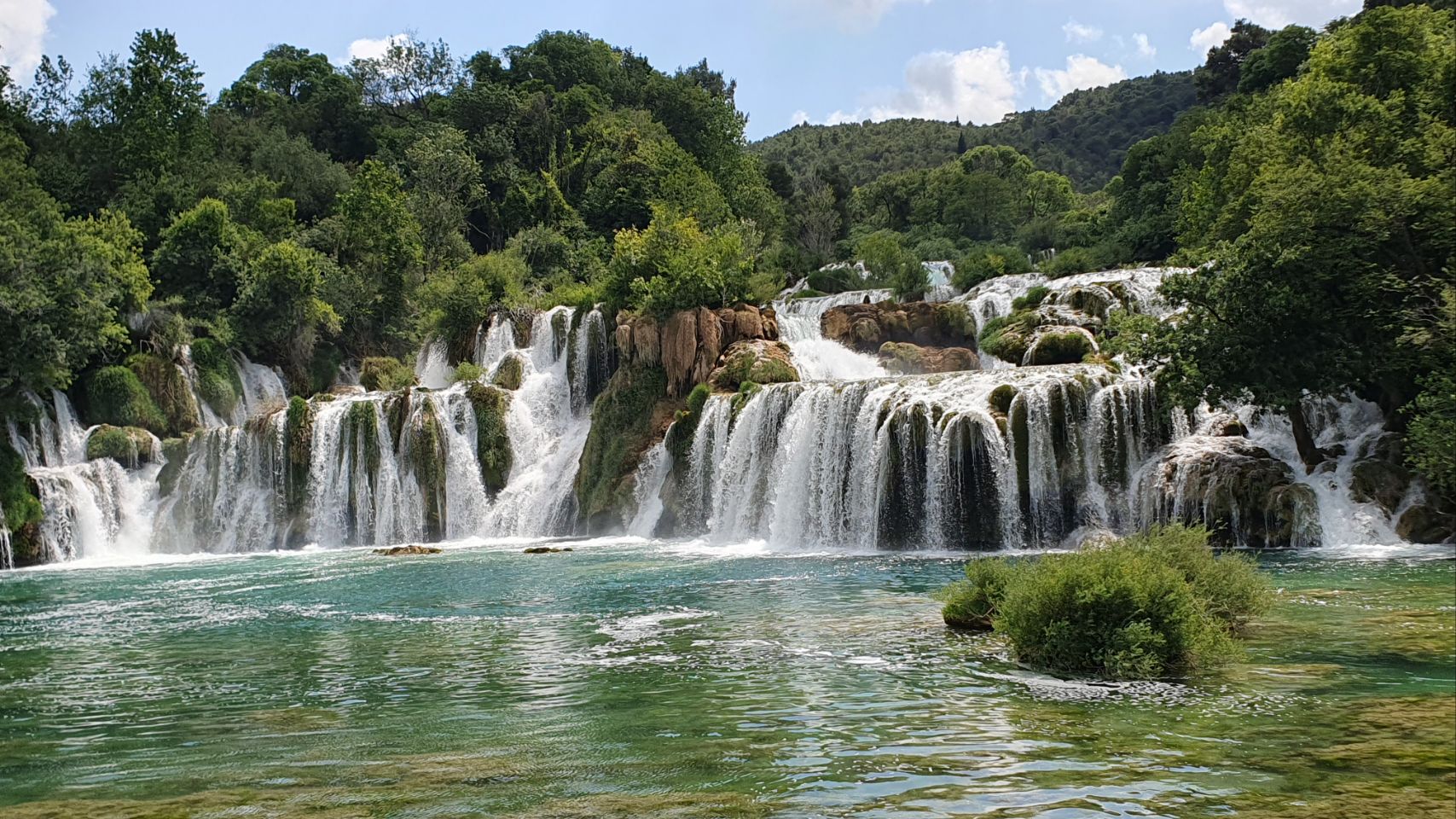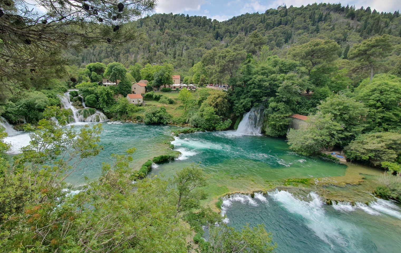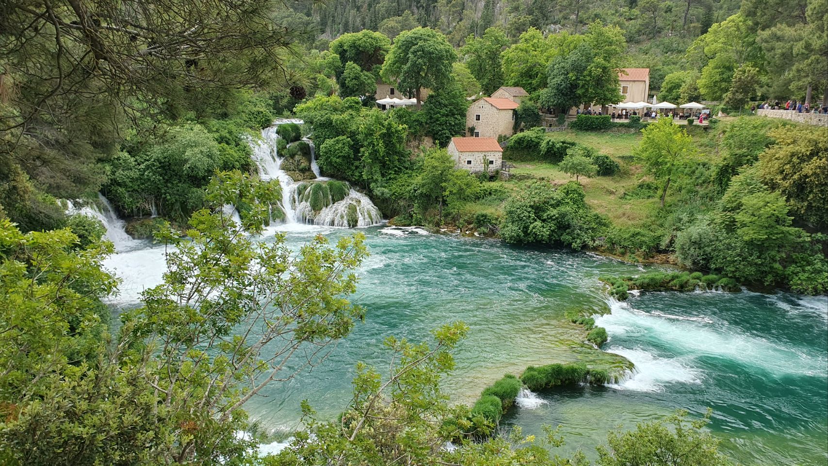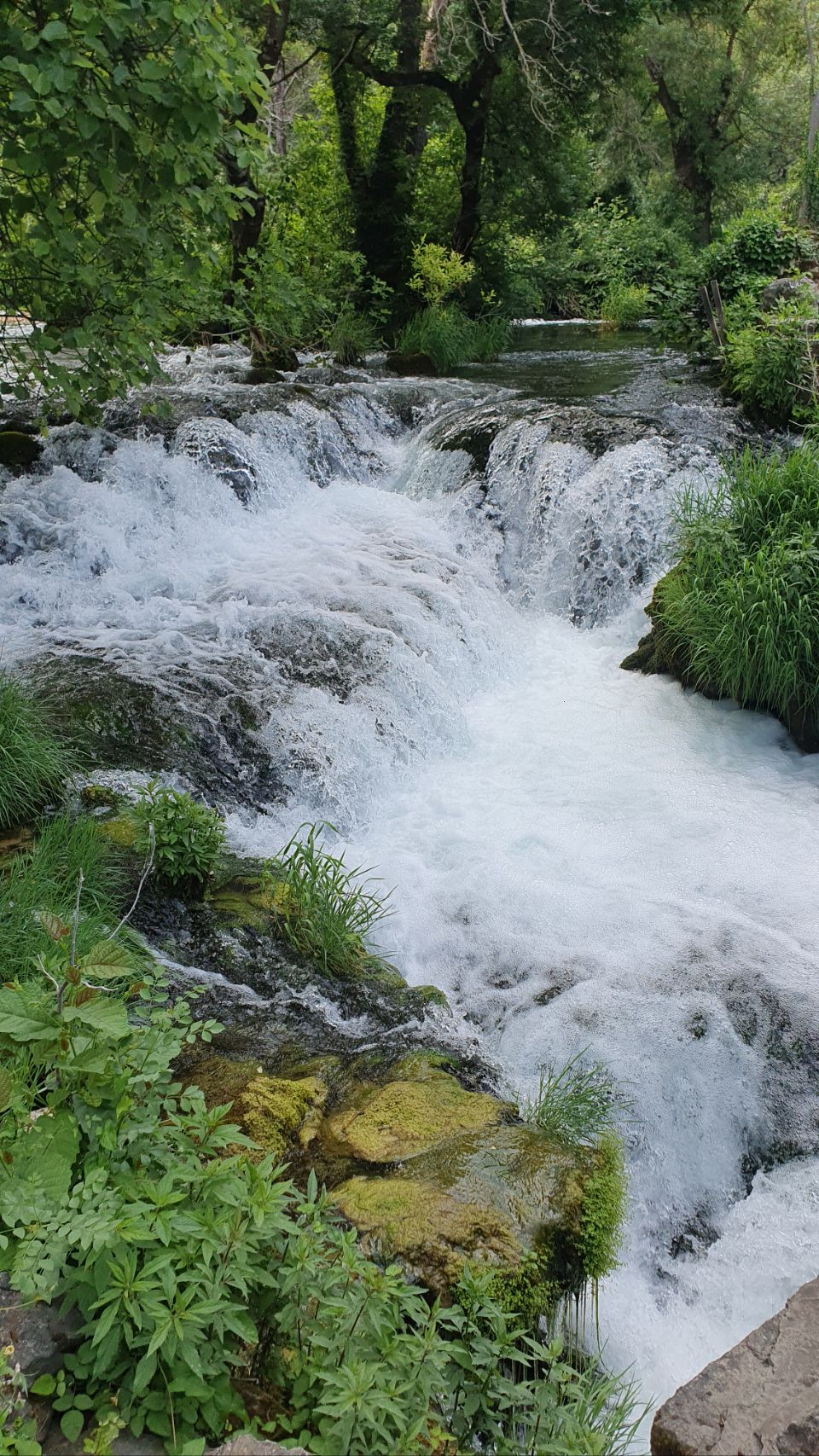 Wir sind von Zadar alles der Küste entlang nach Lozovac gefahren und blieben eine Nacht, um die Wasserfälle im Nationalpark Krke zu besuchen. Der Camping Vrata Krke bietet Platz für ca. 10 WoWo’s und ist z. Z. nur halbvoll. Er liegt nur gerade mal ca. 100 m vom Eingang zum Nationalpark entfernt. Der Zutritt zum Nationalpark kostet in den Monaten Jan/Feb/Mar/Nov/Dez 7 €, im Apr/Mai/Okt 20 € und in der Hauptsaison Jun/Jul/Aug/Sep stolze 40 € pro Person!! Als Gast vom Hotelcamping haben wir noch 15 % Rabatt auf das Ticket erhalten. Die Wasserfälle (Skradinski Buk) bietet ein prächtiges Naturschauspiel und lässt uns nur noch staunen! Überall gedeien verschiedene Pflanzen und die Bäume zeigen ihre Wurzeln und verwachsen ineinander. Die Frösche 🐸🐸 beeindrucken uns mit lautem Gequake und locken damit mit ihren Schallblasen die Weibchen an. Zahlreiche schimmernde Libellen und Schmetterlinge, flogen durch die Luft. Doch die Wasserfälle sind DIE Attraktion!! Wunderschön anzuschauen und faszinierend zugleich, was die Natur sich hier geschaffen hat! Das klare Wasser fand ihren Weg und überall gab es weitere Gefälle, kleine Seen und Bäche. Anfangs des 19. Jh. wurde das Wasser noch zur Stromgewinnung und zur Betreibung von Getreidemühlen genutzt. Zurück gehen wir den ca. 800 m langen, sehr steilen Weg zu Fuss 🦶🏼🦶🏼, während die meisten Besucher auf den Bus warten, der sie nach oben zum Ausgang fährt. Trotz des insgesamt ca. 2 Std. Fussmarsch (den auch unsere Yuna super bewältigte) haben wir vom riesigen Nationalpark nur einen sehr kleinen Teil gesehen. Es gäbe noch soooo viel zu sehen. Zum Beispiel hätten wir mit dem Boot bis ans andere See-Ende fahren und dann alle weiteren Wasserfälle besuchen können (oder wenigstens zum Roški Slap). Doch nur schon die Bootsfahrt würde ca. 4 Std. dauern😳🙈😬. Weiter ging die Fahrt nach Split. Die Stadt selbst haben wir nicht besichtigt (man kann nicht alles haben…). Auf der Weiterfahrt suchten wir via den gängigen Apps nach einem möglichst kostenlosen Stellplatz. Das zeigte sich als nicht einfaches Unterfangen. An diesem Küstenabschnitt gibt es nichts Kostenloses, ausser man hat einen 4×4 Van oder so (gäll Osci 😄😉) mit dem man die teils abgelegenen Kies-/Schottersträsschen befahren und auf einem geeigneten Plätchen parken und übernachten kann. Deshalb fuhren wir den Campingplatz Male Čriste bei Živogosce an.