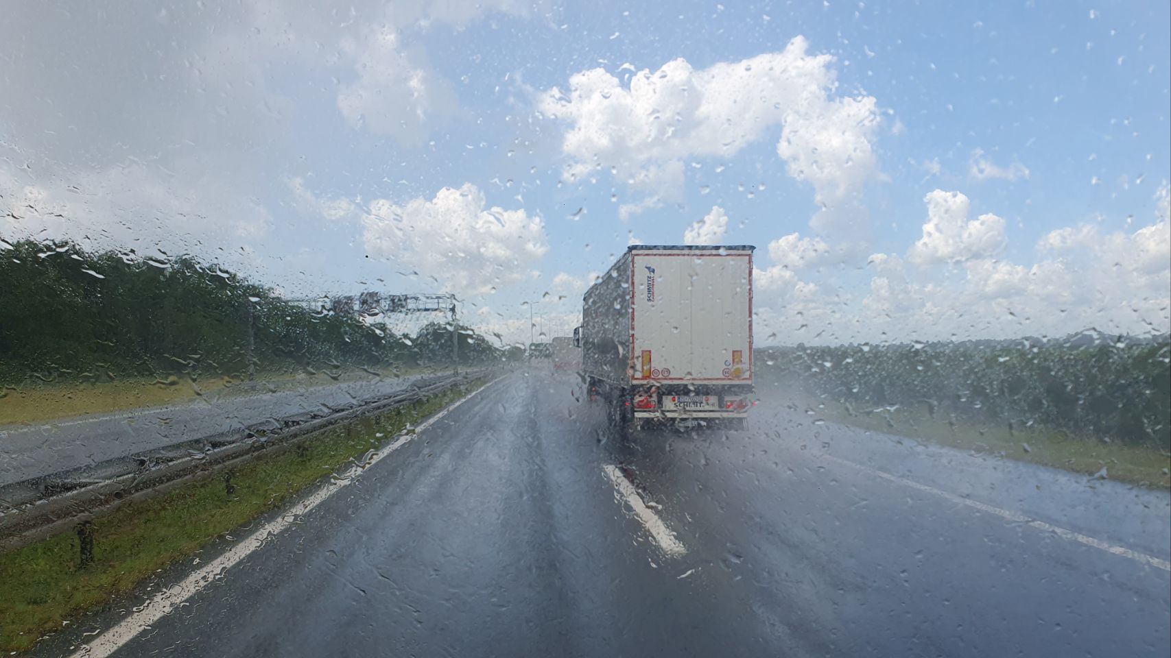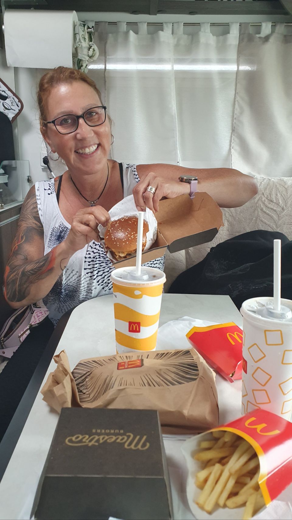 Wir waren bezüglich der Heimfahrt zeitlich ziemlich in Verzug, weshalb wir ausschliesslich die Autobahn nutzten mussten. Velinka Plana haben wir nur als Step erfasst, weil wir Verwandte haben, die das halbe Jahr in Mala Plana bei Smederevska Palanka leben. Leider sind sie aber zur Zeit nicht hier. Kurz vor der Grenze wieder nach Kroatien begann es stark zu regnen. Auf einer der vielen Raststätten gab es einen Mc Donald’s. Wir beschlossen, dort etwas zu essen – wir waren seit Jahren nicht mehr bei Mc Donald’s. Mir lag später Burger & Co. ziemlich auf. Ich war es einfach nicht gewohnt, Fast Food zu essen. Trotz des starken Regen 🌧🌧🌧 musste auch Yuna einmal raus. Sie war danach patschnass und war anscheinend froh um die Decke, die ich um sie legte.