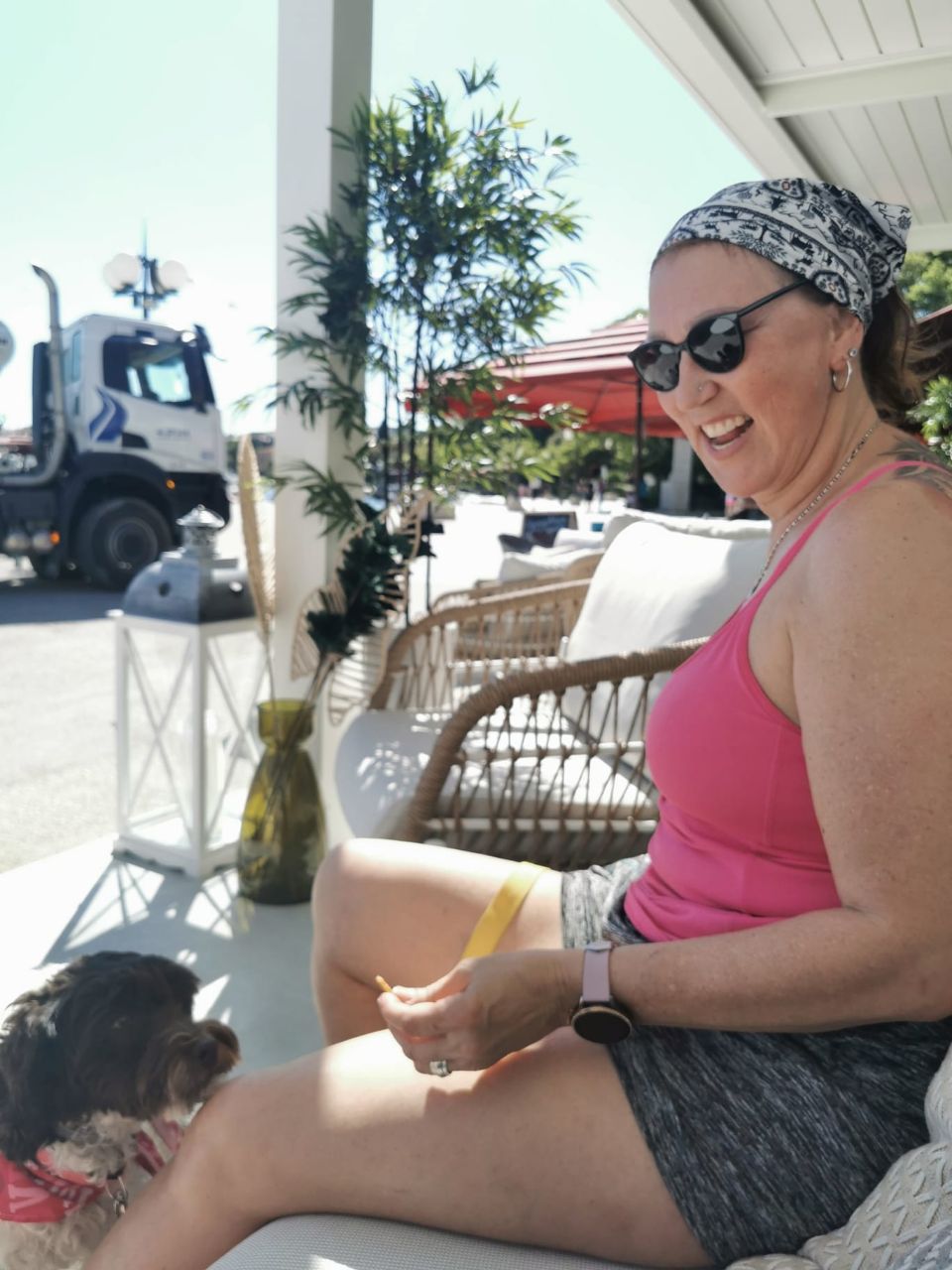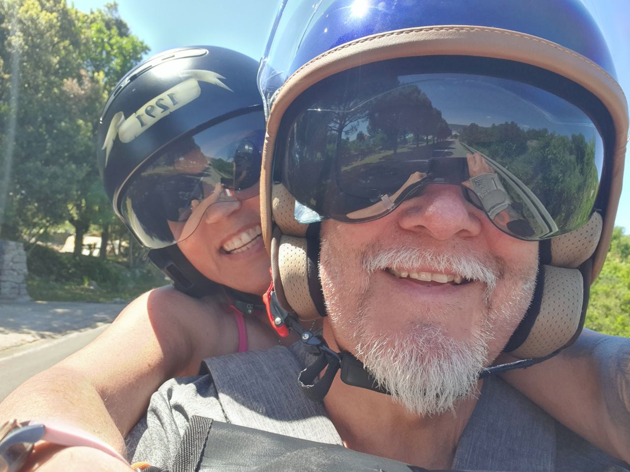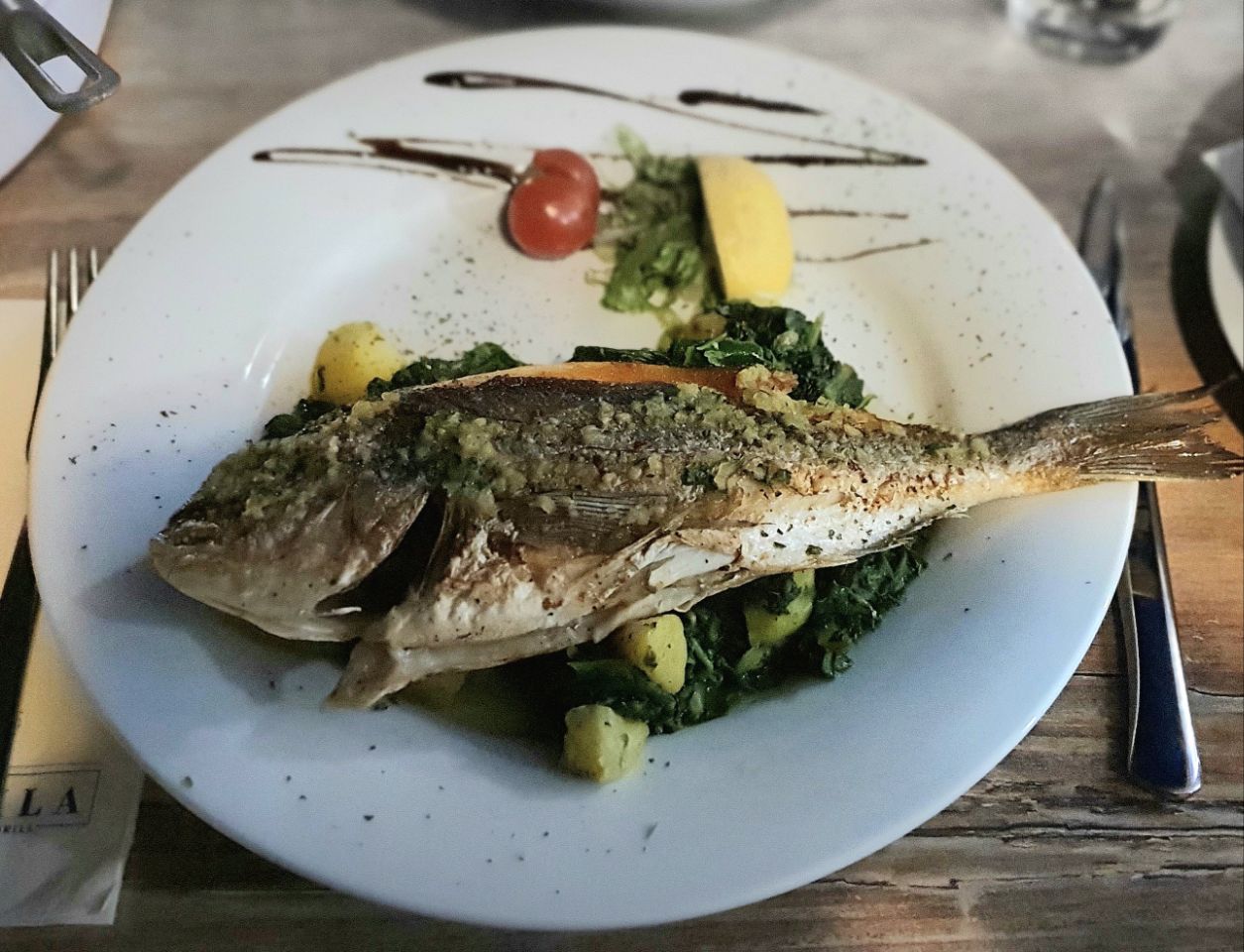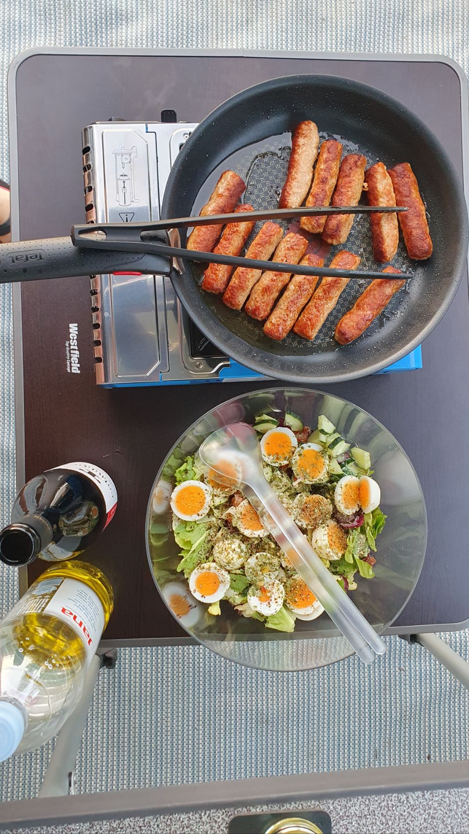 1. Heute genossen wir einmal das Frühstück auf der Insel. Einmal eine Portion Salziges mit Omelette, Tomaten- und Gurkenscheiben, Geisskäse (eine Art Feta) und einmal die süsse Variante mit Honig, Erdbeerkonfi, Nutella und ebenfalls Gurken- und Tomatenscheiben. Dazu natürlich Butter und Brot sowie insgesamt vier wunderschön zubereitete Cappuccini. Wir lernten unsere Platznachbarn aus Deutschland mit ihren Hunden Bobby und Bruno kennen. Sehr sympathische, unkomplizierte Leute, mit denen wir uns gerne austauschten. Yuna fand in Bruno und Bobby neue Freunde. Insbesondere Bobby hat es ihr angetan. Sie sprang an ihm hoch und wollte ihn zum Spielen motivieren, was ihr aber nicht so richtig gelang. Bobby litt an einem Hüftproblem, war daher etwas eingeschränkt und konnte nicht so herumbalgen. Bobby – der um einiges grösser war als Yuna – liess ihre Art „Liebkosungen“ gutmütig über sich ergehen. Auch am Abend hatten wir keine grosse Lust zu Kochen. Und wenn wir schon mal am Meer sind, wollten wir auch etwas daraus essen. Als wir zum Inselrestaurant aufbrachen, kamen uns unsere Nachbarn entgegen. Sie empfahlen uns das nahe gelegene Fischrestaurant, von welchem sie gerade zurückkamen. Wir entschieden uns, dieses Fischrestaurant aufzusuchen und wurden nicht enttäuscht! Wir bestellten einen grossen Salat sowie eine Platte mit drei Fischen, Scampi’s und Tintenfisch, der bereits in mundgerechte Stücke geschnitten war. Alles wurde gegrillt, weshalb die Tintenfische und Shrimp’s schön knusprig waren. Ein kleiner Wehrmutstropfen: Eigentlich wollten wir gerne noch eine Portion Frites dazu. Doch leider hatten sie keine Kartoffeln mehr in der Küche. Mmmm… ob wohl unsere Nachbarn die letzte Portion verputzt haben… 😉😅? Die fehlenden Pommes haben nichts daran geändert, um sagen zu können: Das Essen war fantastisch!!