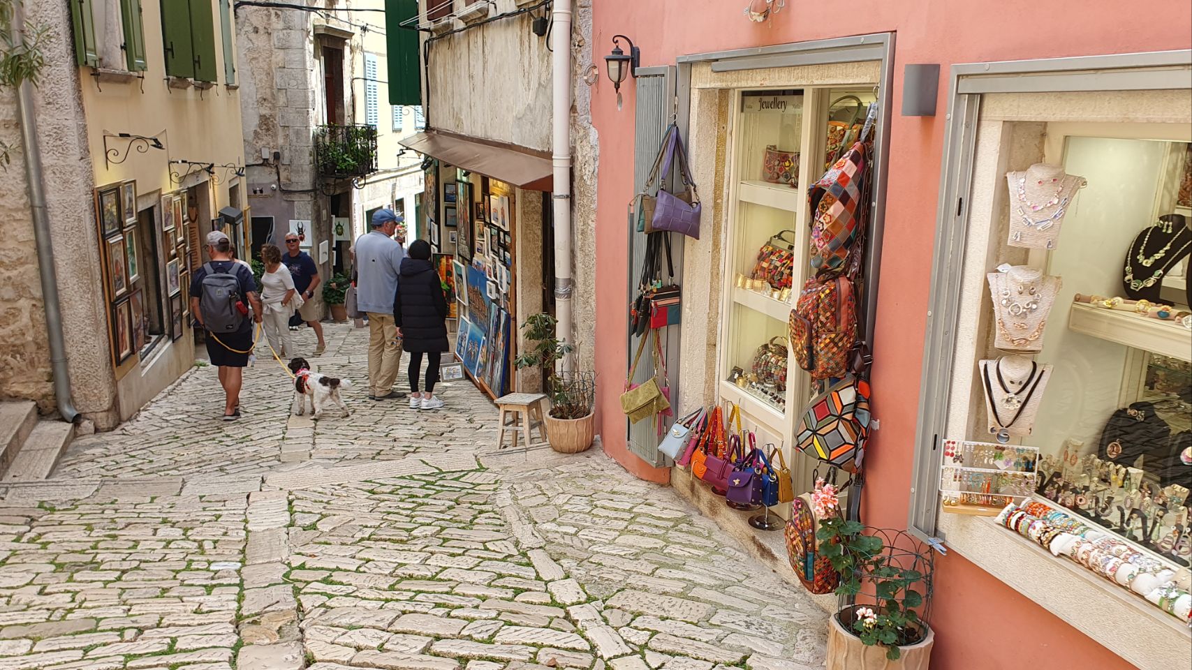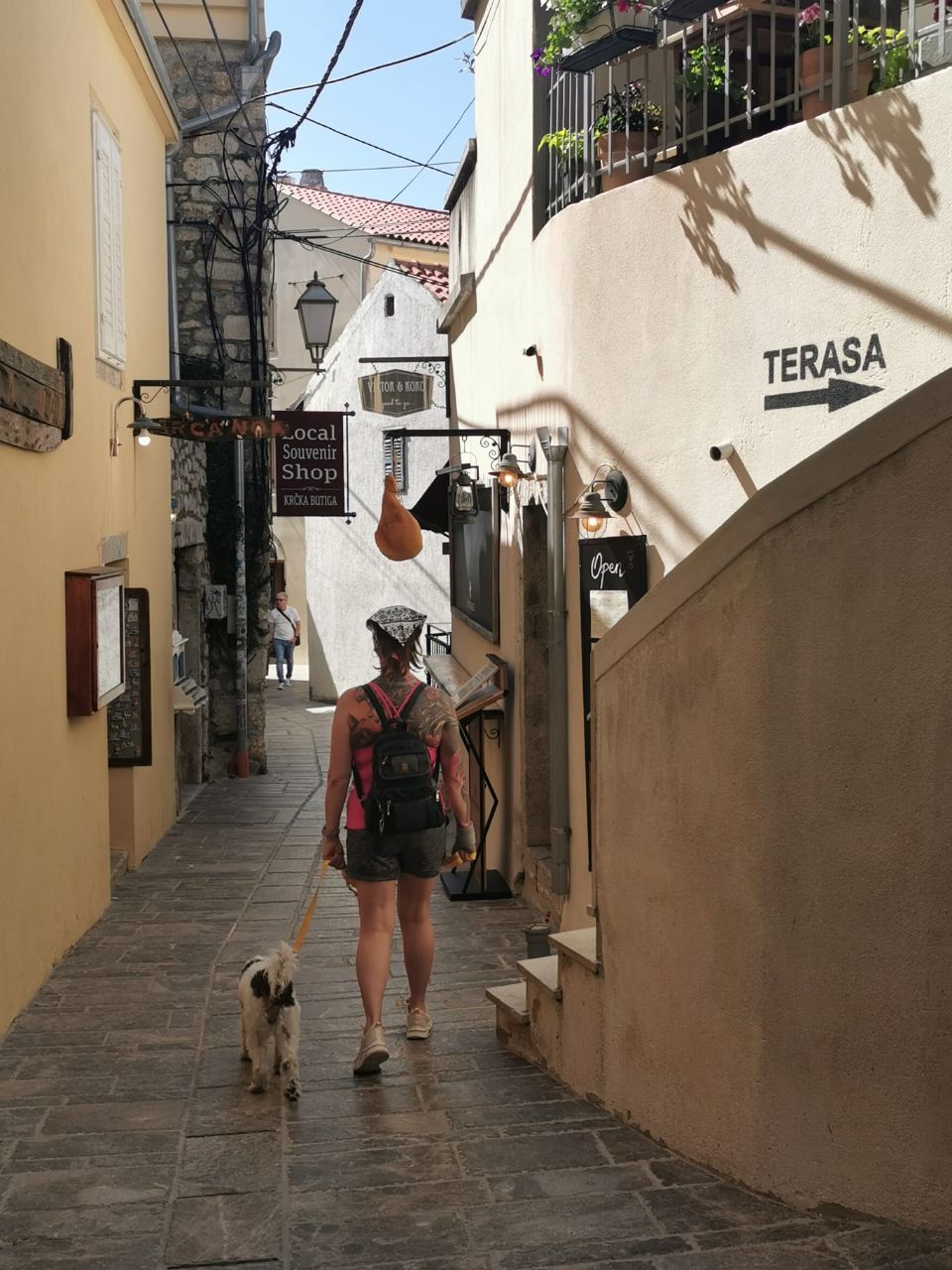 Yuna machte beim Morgenspaziergang das erste mal Bekanntschaft mit dem Meer. Neugierig kam sie dem Wasser näher, hatte dann aber doch Schiss, als das Wasser angespühlt kam. Nach einem ausgiebigen Frühstück ging es mit dem Quad zur Stadt Krk – Yuna fuhr in einer Hundetransportbox mit. Es erwartete uns eine Stadt mit malerischen Gässchen, einladenden Bars/Restaurants und kleinen Boutiquen, Spezialitäten wie Olivenöl und natürlich Raijka, Limoncello, Feigenschnaps etc. Auf dem Camping wie auch in Krk war die Vorsaisondeutlich zu spühren. Es hatte überall noch Plätze frei und wir konnten unseren aussuchen. Auch in der Stadt Krk waren nur wenige Touristen unterwegs und die hübsche Gassen fast leer. Umso schöner war es, mit den Einheimischen oder Händlern ins Gespräch zu kommen – noch haben sie Zeit für einen Schwatz. Wir möchten nicht wissen, wie es hier in der Hochsaison zu- und her- geht und schon gar nicht möchten wir dann hier sein. Zum Abendessen gab es leckere Spaghetti frutti di mare. Yummy… 😋👍🏼. Bis morgen liebe Leut.