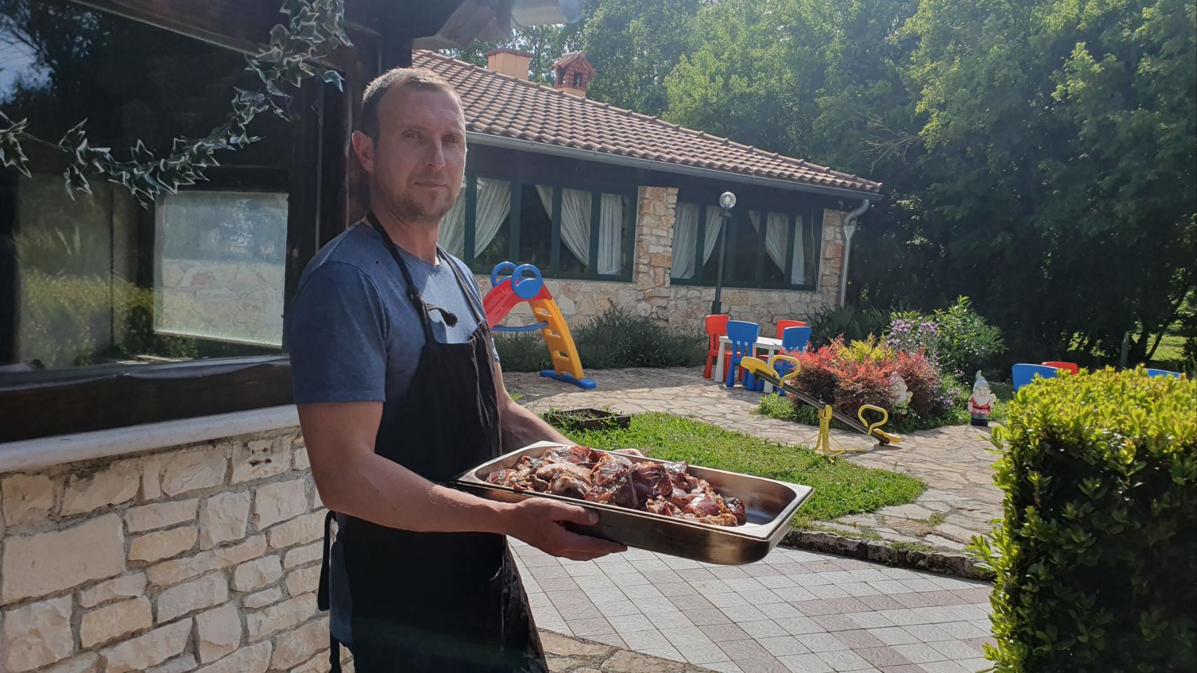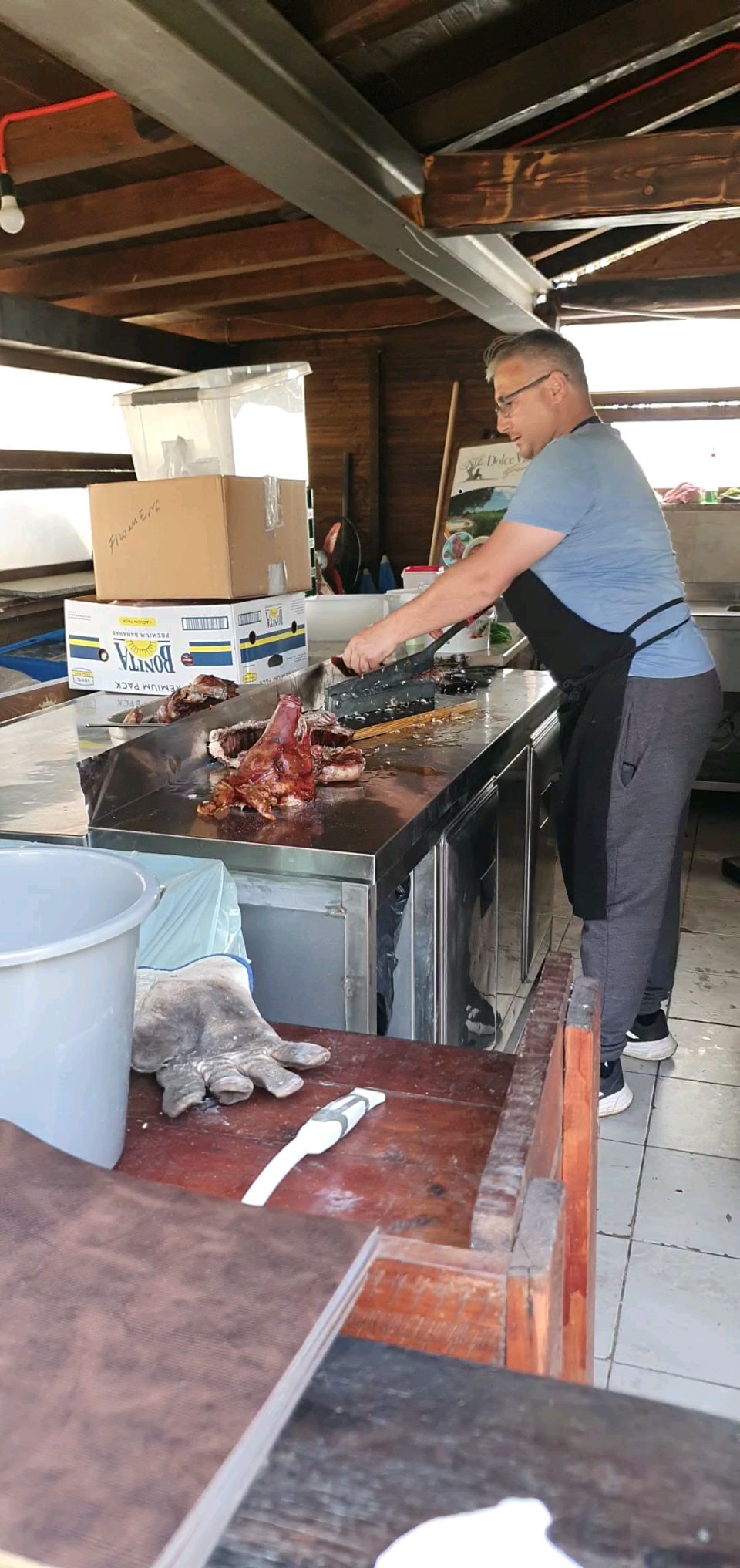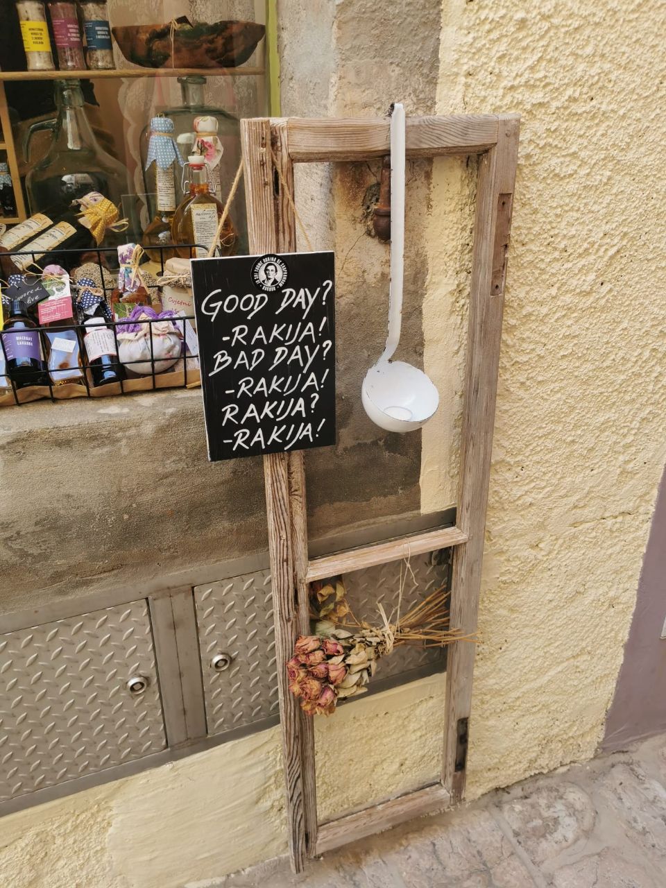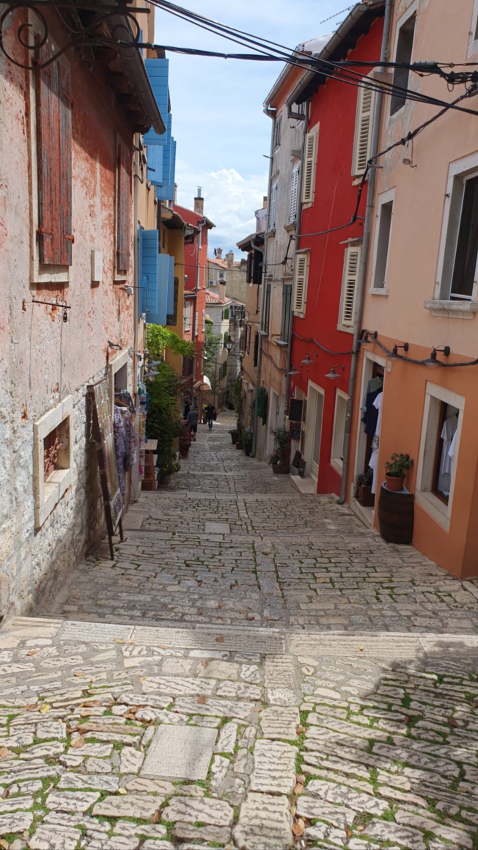 Auf der Fahrt nach Rovinj hatten wir Kontakt mit einer sehr freundlichen Marktfrau, die schmackhaftes Olivenöl und eine grosse Auswahl Eigenbrand verkaufte. Sie gab mir von diesem und jenem Schnaps zum probieren 🤪😅, während Bruno etwas weiter weg die Aussicht fotografierte. Nelina – die Marktfrau – erzählte, dass ihr Bruder für die Produktion, ihre Schwiegermutter für die Kräuter bzw. Anreicherungen der leeren Flaschen, der Etikettierung und sie selbst für den Verkauf zuständig sind. Die Produkte waren etwas teurer als in der Stadt. Der Unterschied ist aber, dass die Menschen an ihrem Stand an der Strasse von den Einnahmen leben. Wir haben uns gut eingedeckt…😂😋😜🙈 Rovinj [ˈrɔʋiɲ] (kroatisch) oder Rovigno (italienisch; istriotisch Ruvèigno) ist übrigens – für die, die es (noch) nicht kennen – eine zweisprachige Stadt in Kroatien an der Westküste der Halbinsel Istriens. Auf der Fahrt zum Stellplatz hielten wir an einem der zahlreichen Grill-Restaurants, die am Strassenrand Spanferkel grillen. Eines wurde gerade vom Grill genommen. Bruno erkundige die weitere Reisestrecke, währenddessen ich zwei Portionen dieser knunsprig-saftigen Leckerei besorgte. Bis das Ferkel zerlegt war, konnte ich bereits davon kosten und wurde dazu wiederum mit dem süssem Birnen-Honig-Schnaps verwöhnt. Der eine der beiden Brüder erzählte, dass sie ursprünglich aus Serbien kommen, aber jeder hatte eine Kroatin geheiratet. Auch hier war die Schwiegermutter aktiv: sie stellte den Honigschnaps her. Die beiden Brüder haben das Restaurant aufgebaut und betrieben dieses. Übernachtet haben wir im Dorf Bale auf einem öffentlichen Stellplatz ohne Dienstleistungsangebot (die wir eh nicht brauchen). Obwohl der Stellplatz zwischen einer Schule und einem Friedhof lag, hatten wir sehr gut geschlafen. Während wir weiterfahren konnten, durften diejenigen hinter dem Platz noch etwas länger ruhen… Friede sei mit Ihnen
