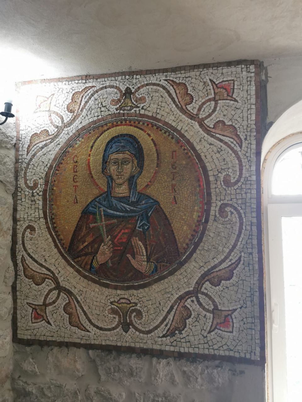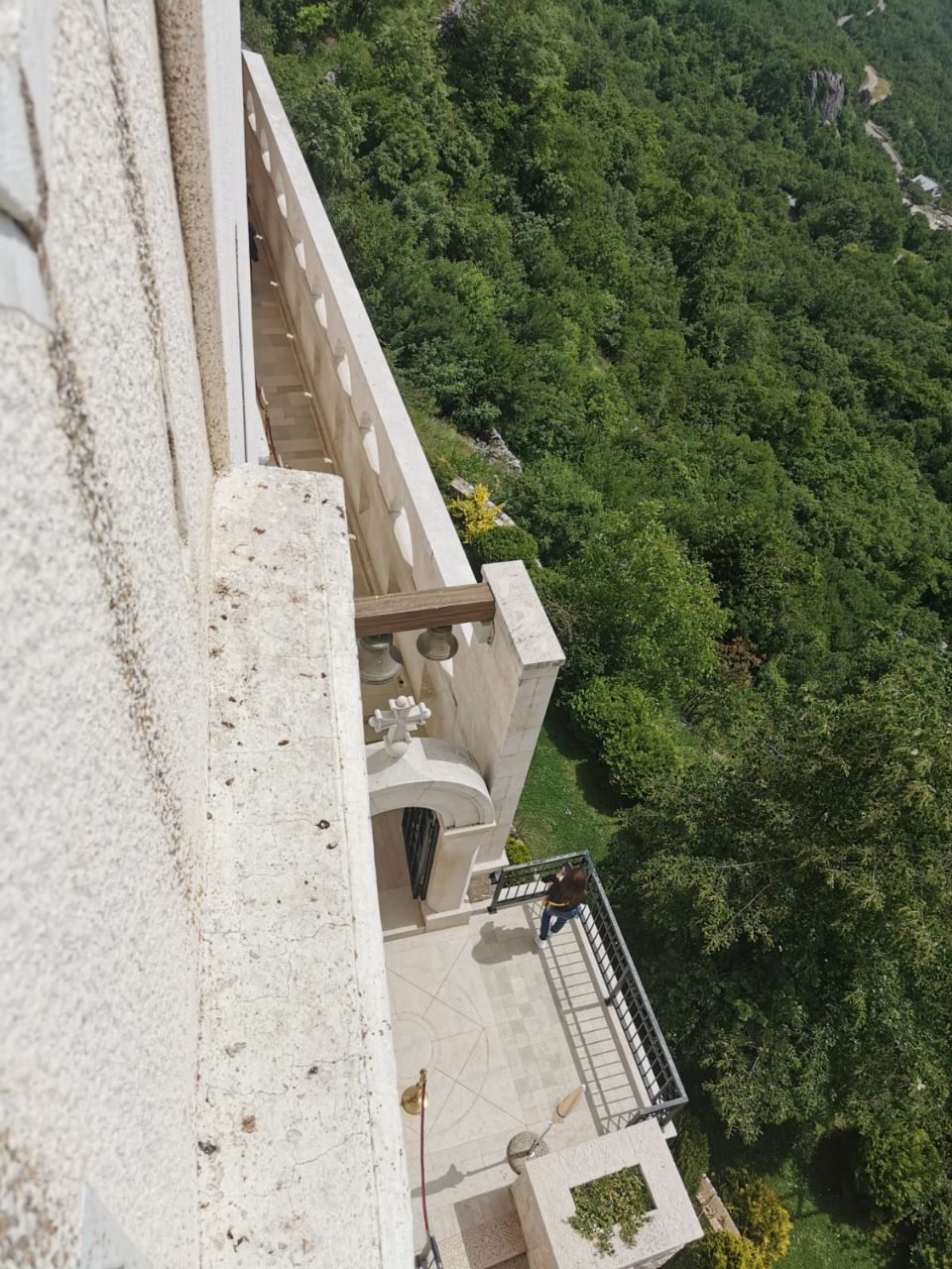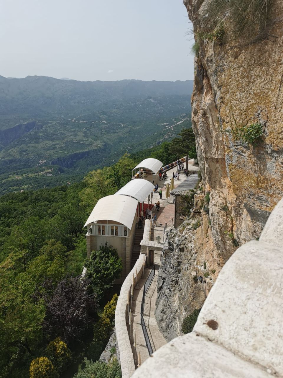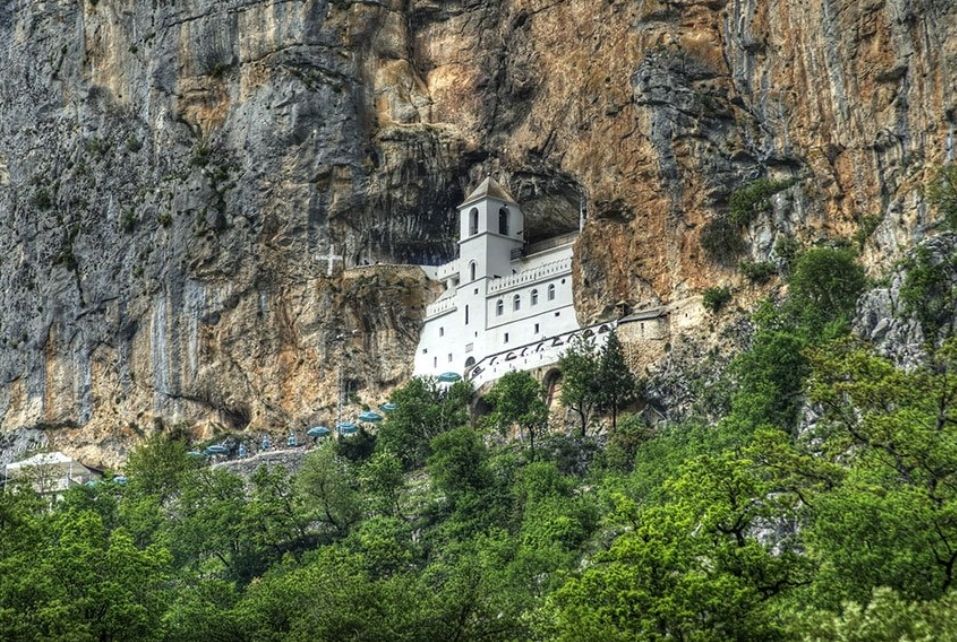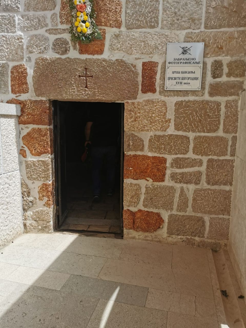 1. Bei Danilovgrad Municipality fuhren wir den Berg hoch und parkierten Benito auf dem ersten grossen Parkplatz, um das in den Fels gebauten Kloster Ostrog zu besichtigen. Etwas weiter oberhalb gab es noch einen zweiten Parkplatz mit Restaurants, Souveniers etc., wo auch ein paar WoMo’s, Reisebusse, Van’s, PW’s etc. parkten. Spätestens ab hier würden wir die Weiterfahrt mit einem WoMo nicht mehr empfehlen. Die Strasse, die zum dritten Parkplatz führte, wurde schmaler. Doch ein Reise-Van und ein PW würden sich kreuzen können, sofern die Ausweichmöglichkeiten genutzt wurden. Die folgenden Haarnadelkurven liessen Erinnerungen an die noch nicht so lange zurückliegende Zeit als Harley-Fahrende wach. Auf dem dritten Platz parkten wir unseren Quad und gingen zu Fuss weiter die zahlreichen Treppenstufen zum Kloster hinauf (wunderbar für Oberschenkel und Po… Aber an was haben wir beiden Dööfels nicht gedacht (evtl., weil wir keine Kirchgänger sind…)? Wir trugen kurze Hosen und T-Shirts! Eigentlich hätten wir es wissen müssen, dass ein Kloster – wie es dann auch auf einem Schild gefordert wurde – in angemessener Bekleidung und natürlich auch nicht mit einem Hund zu besuchen wäre… Bruno hängte sich die Jacke tief um die Hüften und schaute sich das Kloster an, während ich mit Yuna draussen wartete. Tja… man wird von mal zu mal gescheiter. Frauen, die sich besser auf den Klosterbesuch vorbereitet hatten, trugen einen Schal um die nackten Schultern ihres Trägerkleides, andere bedeckten sich auch die Haare. Das Kloster Ostrog ist ein weitbekannter Huldigungs- und Wallfahrtsort. Das Klostergebäude wurde im 17. Jahrhundert in eine grosse Felswand auf einer Höhe von 900 m ü.M. (was für uns ja eher ein Hügel wäre) eingemeisselt. Der eigentliche Aufbau begann jedoch bereits im 12. Jahrhundert. Das Kloster bewahrt die Reliquien des Heiligen Vasilije von Ostrog auf. Er galt als einen Wundertäter und seine Überreste sollen auch heute noch Wunder vollbringen und heilen können. Menschen aller Religionen und Erkrankte kommen hierher, um den Heiligen Vasilije zu huldigen und um Gesundheit zu bitten.