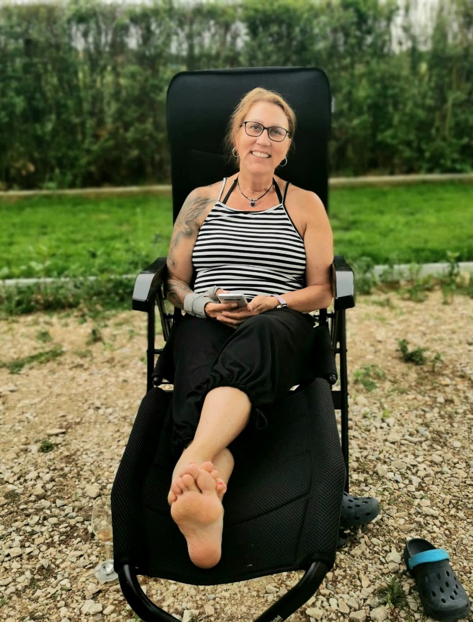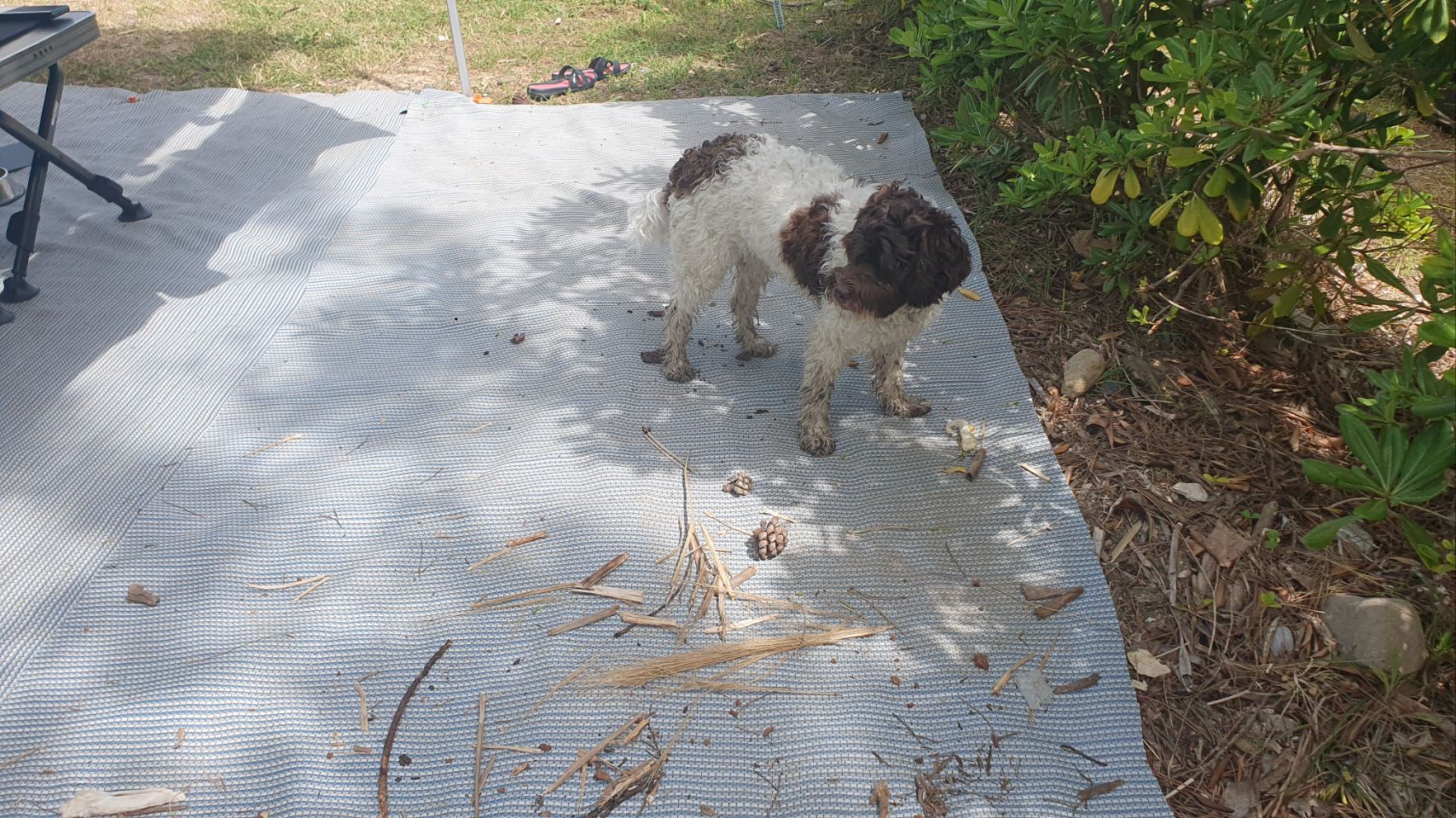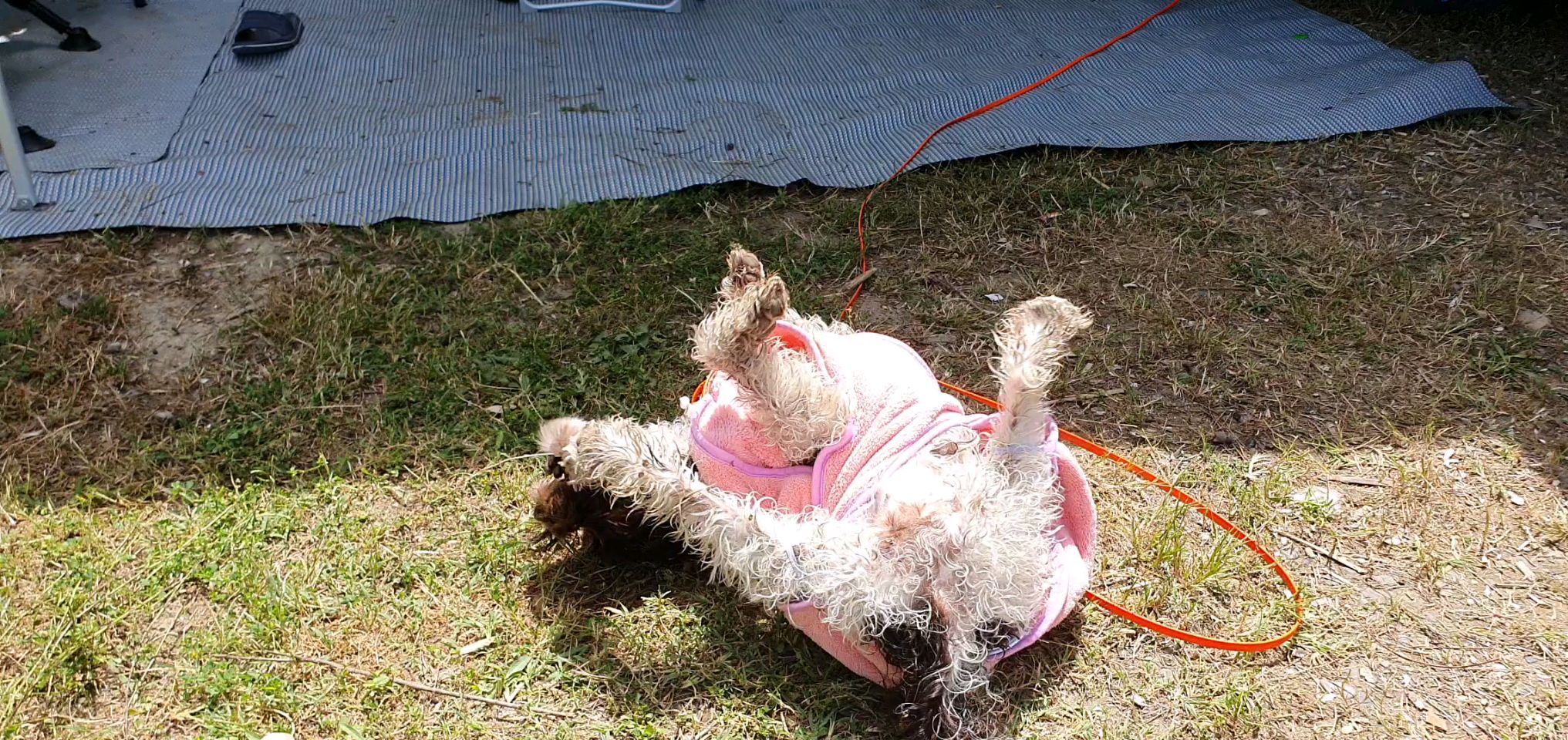 ! Zurück im Camping gönnten wir uns alle drei ein Nickerchen, bis dann tatsächlich ruckzuck das vorhergesagte Gewitter über uns hereinbrach. Yuna erschrak sich vom Donnergrollen so sehr, dass ich mich mit ihr ins WoMo zurückzog. Sie liebt es, gebürstet und gekämmt zu werden, während sie sich an mich schmiegt. So erhielt sie eine Extraportion Kuschel-Knuddel- Streicheleinheit. Das Gewitter war nach gut einer Stunde vorbei und wir genossen den Abend bei immer noch lauen 23°C vor dem WoWo. Aaaaber: vom Mogen bis am Abend geht ohne Antimückenspray gar nichts…