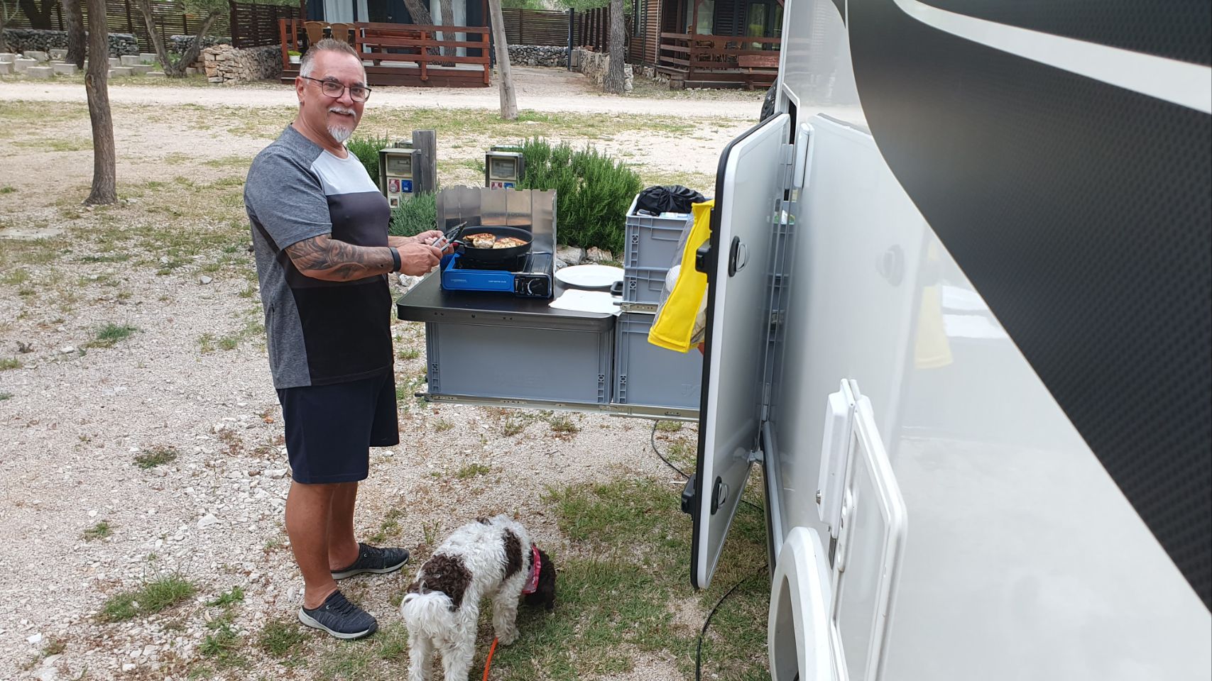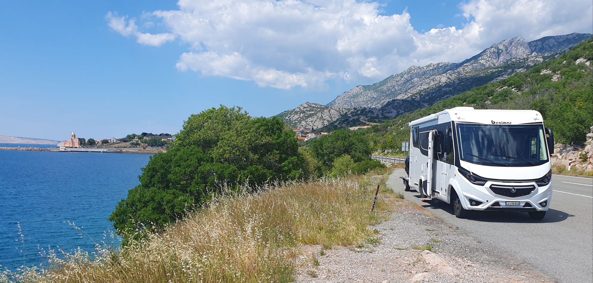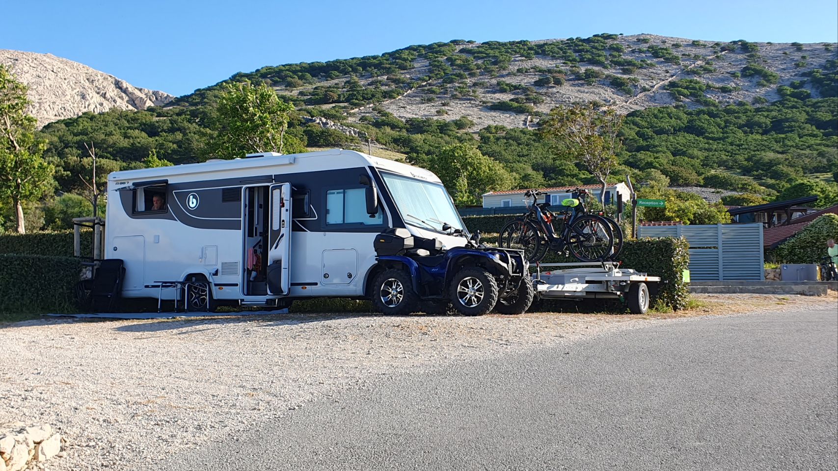 • Wir fuhren heute über Pula der Küste entlang nach Rijeka und weiter auf die Insel Krk. Nach mehreren Übernachtungen auf Stellplätzen entschieden wir, mal zur Abwechslung einen Campingplatz anzufahren. Wir wählten den direkt am Meer gelegenen Camping Škrila bei Stara Baška, ca. 20 Min. von der Stadt Krk entfernt. Hier bleiben wir mal voraussichtlich zwei Nächte. Die Parzellen sind terassenartig angelegt und gross genug, dass wir seitlich unser Anhänger platzieren konnten. Ich parkte noch den Quad davoralles perfekt Der deftige Wind (genannt Borra-Borra) hinderte uns, die Markise auszufahren. Egal – es war auch so oder so einfach ein toller Abend. Wir schlürften draussen noch gemütlich einen Gin Tonic auf Eis 🍸 und genossen den Blick auf das Meer 🌅, bevor Bruno ein leckeres Kalbssteak mit Waldspargeln (gekauft an einem Strassenstand) zubereitete. Wir wünschen allen eine friedliche Nacht und schöne Träume 😌.