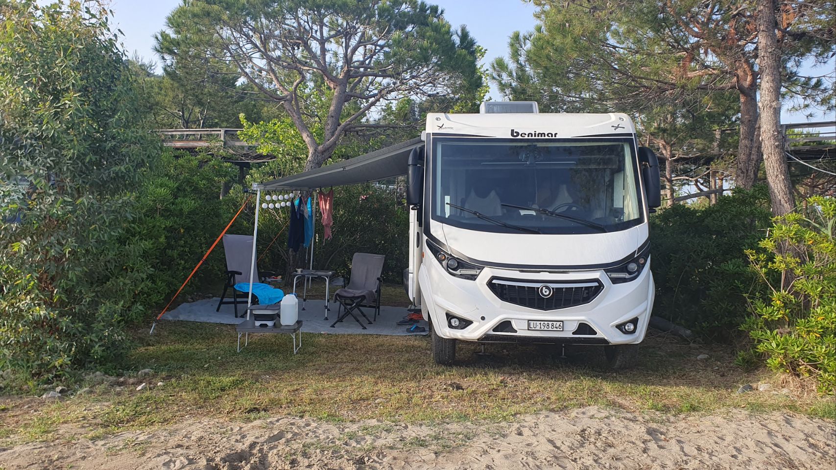 Wir versuchten unser Glück nochmals am nächsten Morgen. Uns erwartete ein Tag mit viel Sonnenschein und sommerlichen Temperaturen. Wir gaben heute die Daten auf Google Maps ein in der Hoffnung, den Campingplatz (alb. Kamping) doch noch zu finden. Aufgeben und Weiterfahren war keine Option. Ich navigierte und Bruno folgte meinen Angaben. Tatsächlich führte uns das GPS auf der asphaltierten Strasse bis zu einem Dörfchen, wo wir in die unbefestigte Strasse abbogen. Eeeeendlich!! Von Weitem sahen wir die Anschrift «Pa Elmër»!! Was für eine Erleichterung! Die gestrige Fahrt sass uns doch noch etwas in den Knochen… Wir konnten den Platz auswählen, wo Benito für die nächsten drei Nächste stehen soll. In der Hauptsaison wird es hier wohl um einiges schwieriger, ohne Reservation überhaupt einen Platz zu erhalten. Die Beschreibung aus div. Internet-Foren für diesen Campingplatzes können wir mit einem Wort bestätigen: WUNDERPRÄCHTIGHERRLICHTRAUMHAFTSCHÖN! Die Fotos sprechen Bände…! Kaum auf dem Camping angekommen, öffnete Bruno den Kühlschrank, um ein Apérogetränk zuzubereiten Das tun wir nach einer Ankunft – egal, um welche Uhrzeit. Gestern war es halt erst etwas nach 10.00 Uhr…😂👌🏼🥴! Anstelle eines Apérogetränkes gabs fliegende Eier 🥚🥚🥚🥚🙈🤣. Die volle Kunststoff-Eierbox flog Bruno entgegen und auf den Boden. Alle 10 Eier waren natürlich kaputt. Bruno goss alles in eine Frischhaltebox. Wir machten uns gemütlich, sassen dann einfach da, verarbeiteten die gestrige (zu) gewagte und nicht ganz risikofreie Fahrt in die Pampas Albaniens und genossen die Aussicht auf das Meer, welches ca. 10 m vor uns sanft die Wellen anspülte. Hier zeigte sich, wie wahr das Sprichwort «Wer nicht wagt, der nicht gewinnt!» ist. Zum Glück haben wir Ersteres im zweiten Anlauf durchgezogen und der Gewinn lässt sich kaum in Worte fassen!
