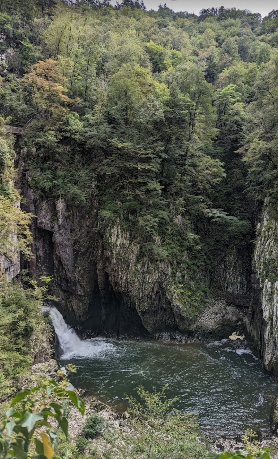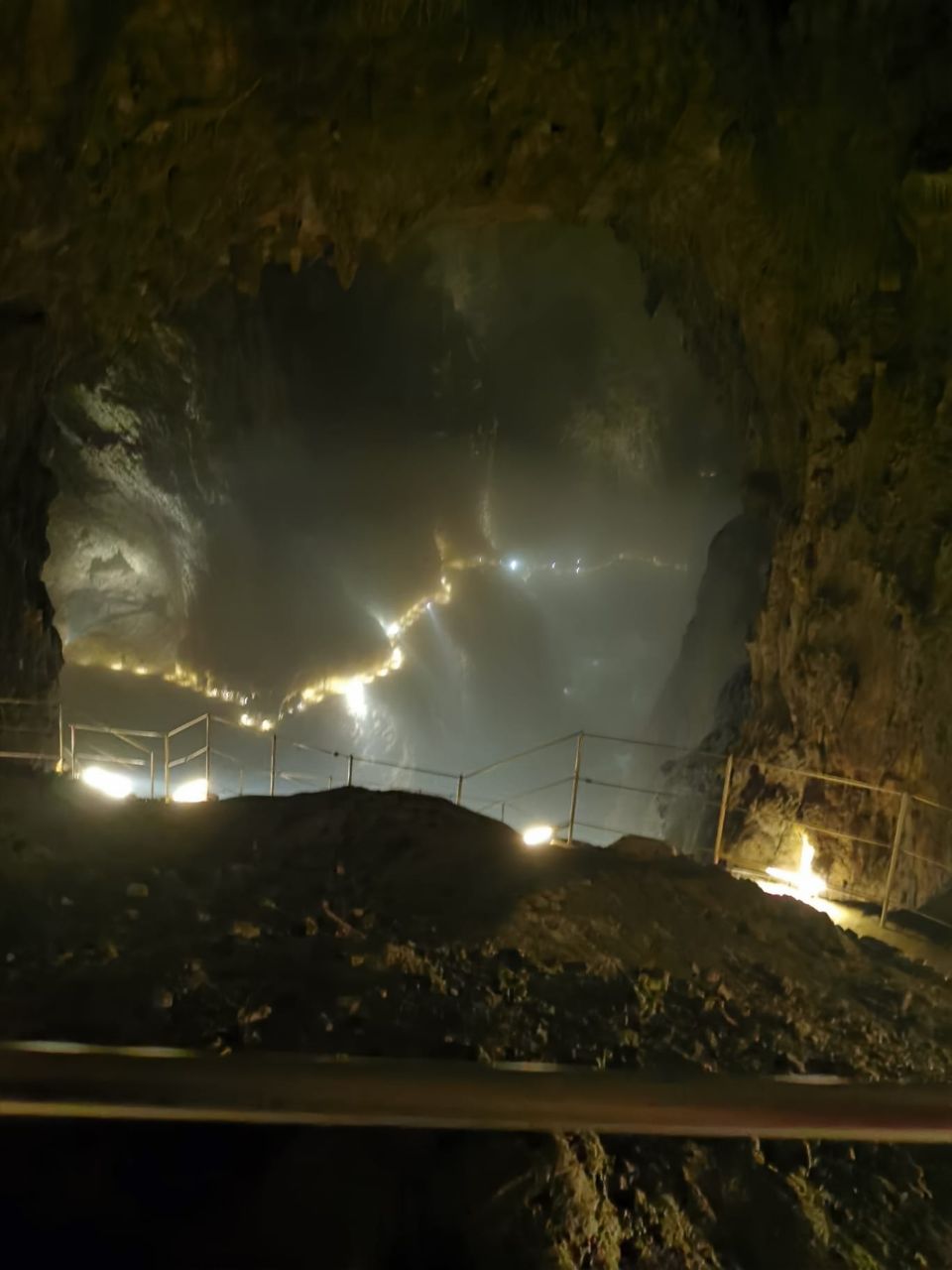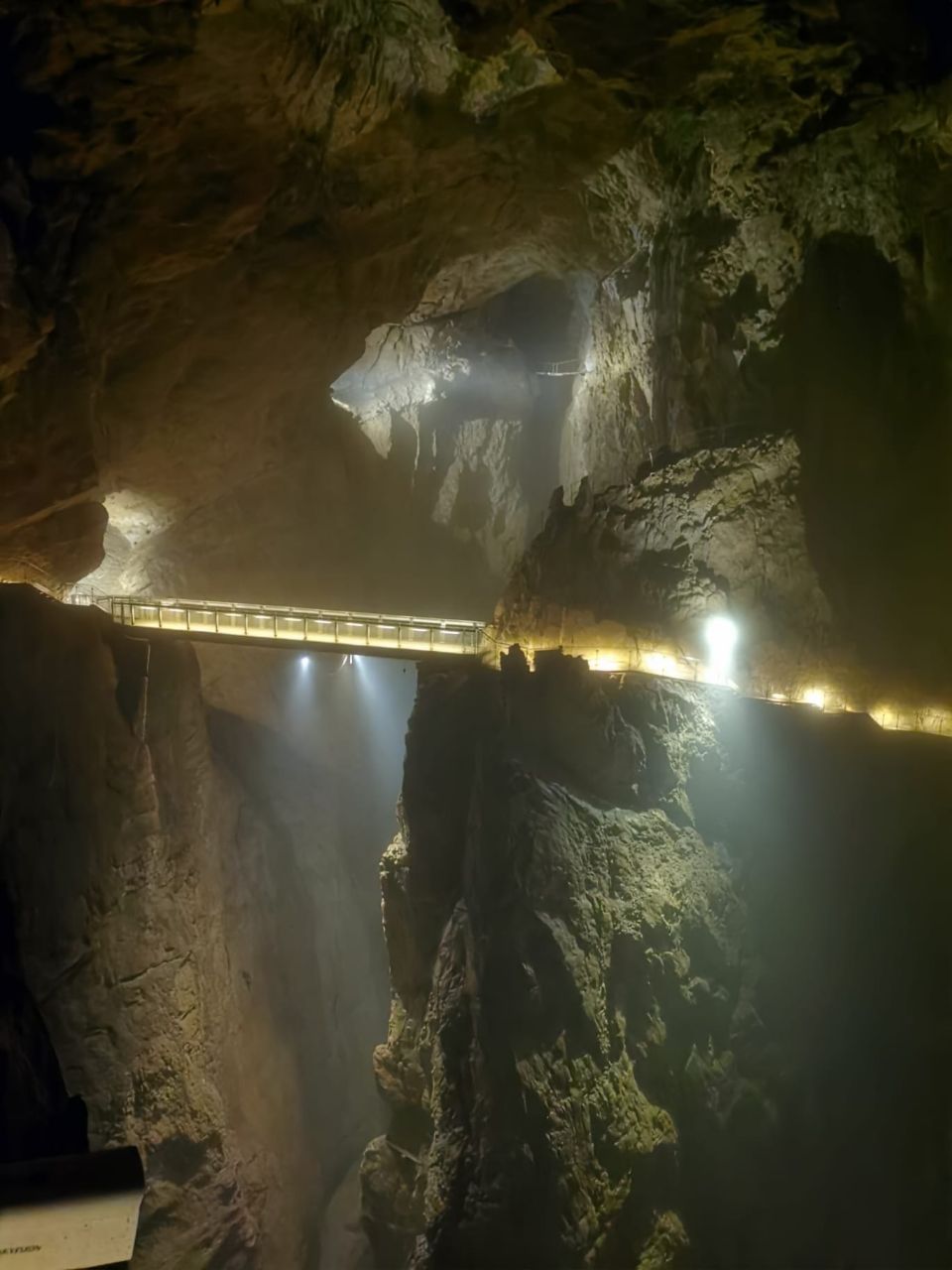Der Tag begann mit leichtem Regen… Also ideal für eine Höhlenbesichtigung. Wir entscheiden uns, die Höhle bei Škocjan anzuschauen. Die Höhlen von Škocjan wurden auf eine beeindruckende Weise von einem Fluss, der durch diese hindurchfliesst, geformt. Auf diese Weise entstand die weltgrösste unterirdische Schlucht, die heute auch als „Grand Canyon“ von Slowenien bezeichnet wird. Was können wir nach dem Besuch berichten: Es war ein unglaubliches Erlebnis, faszinierend und einmalig. Sollte jemand Sloweinen besichtigen wollen, würden wir den Besuch dieser Höhle allen anderen Höhlen, die in Slowenien zu besichtigen sind, sehr empfehlen! Die Höhle beeindruckt sowohl durch ihre Schönheit, als auch durch ihre kolossalen Ausmasse, insbesondere der über 100 m tiefen Schlucht, über die eine Brücke führt. Nach der Führung, die in slowenisch und englisch angeboten wurde, gab es drei Routen, um zum Parkplatz zurückzukehren. Übrigens: In der Hochsaison gäbe es die Führung auch in deutsch. Bei den Rückwegen gab es einen einfachen, ca. 30 min. Weg, den es aber mit unzähligen Treppen in sich hatte. Einen Mittleren (ca. 1 Std ) und einen längeren Weg (ca. 1,5 Std.). Wir empfehlen für die Routen gutes, rutschfestes Schuhwerk. In der Höhle ist der Weg gut ausgebaut und betoniert. Wir haben die erste Route gewählt, da Yuna 🐶🐕 bereits über zwei Std. im Wohnmobil war und sie z. Z. das erste mal läufig ist. Dies ist eine ganz neue Situation für Yuna, aber auch für uns. Aus unserem Welpen wurde nun ein junger Hundeteenie, die von Rüden in dieser Zeit geschützt werden muss. Yuna hat die Zeit ohne uns gut verschlafen und begrüsste uns bei der Rückkehr auf’s Herzlichste 🥰! Weitere Infos unter: https://www.park-skocjanske-jame.si/