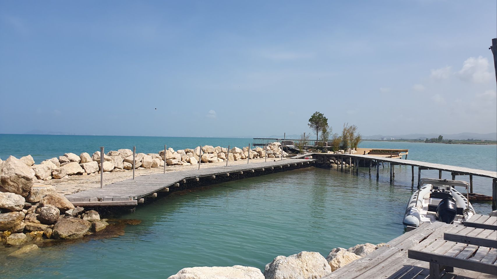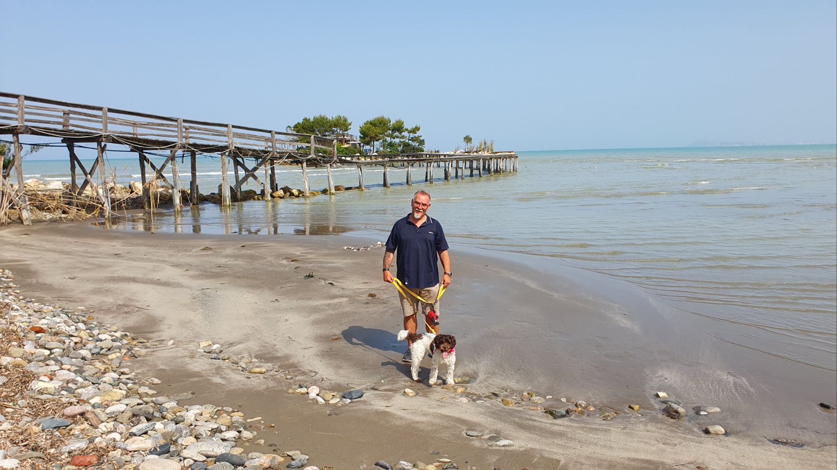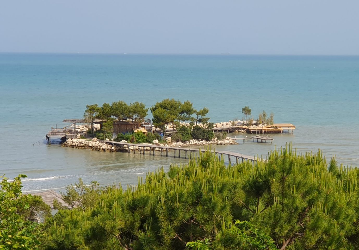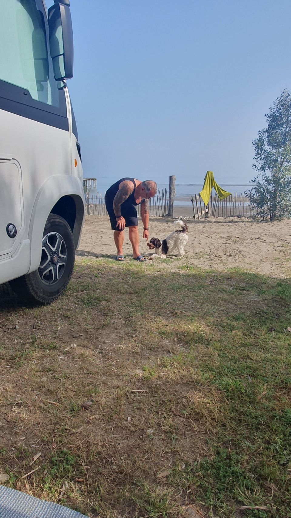 Wir genossen die tolle Lage des Campingplatzes, das Meer, die Sonnenuntergänge, aber vor allem das Nichts-tun, was mir nach wie vor ziemlich schwerfällt …🌅 etc. Das Meer lud zum Baden ein. Das Wasser war angenehm und erfrischend zugleich. Ich musste mir das Schwimmen etwas verdienen. Die Sandbank war so gross, dass ich weit hinauslaufen musste, um eine Tiefe zu erreichen, wo ich dann endlich schwimmen konnte. Mit der schönen Insel, dem Steg, dem türkisblauen Wasser… ich fühlte mich wie in der Karibik 🏝🏖! Yuna zeigte sich zögerlich bezüglich dem Meer und schon vor dem sachten Wellengang schreckte sie zurück. Es war für sie als Dezember 2023-Geborene das erste mal, dass sie in einen See oder ins Meer sprang. Aus der zurückhaltenden Yuna entwickelte sich ein Wasserkänguruh. Sie hüpfte über das Wasser und genoss es sichtlich, darin herum zu toben 👍🏼🤣😅. Zudem liebte sie es, trockene Schilfstangen und die heruntergefallenen Pinienzapfen auseinander zu beissen. Unser Vorplatz sah meistens aus wie S….stell🐷🐖🐽🙈😅! Wir vernichteten heute zum Frühstück die Eier in Form einer grossen Portion Rührei 🍽️ 😋! Gegen den späteren Nachmittag wollte Bruno zum Abendessen im Omnia einen leckeren Zughetti-Karotten-Gratin zubereiten. Das Problem: Gemäss Rezept benötigt man 6 Eier. Wo diese wohl hingekommen sind 😳? Die Lösung: Ich lief zum Inselrestaurant und fragte bei der Küchencrew nach der Möglichkeit, Eier zu kaufen. Ich versuchte es zuerst auf Englisch, dann auf Deutsch (viele sprechen hier etwas Deusch). Ich versuchte es noch auf Spanisch und mit meinen gebrochenen Schulfranzösisch. Stets zeigte ich auf die Eierbox und hob vier Finger hoch. Ich blickte nur auf verwirrte Gesichter. Dann kam der Chef, der etwas deutsch sprach. Ich erklärte ihm, dass ich vier, am liebsten sechs Eier kaufen möchte. Der Chef gab der Crew eine kurz Anweisung und ich bekam die Eierbox gefüllt mit 10 Eiern zurück. Was so ein bisschen Charme und Lächeln ausmacht…😉😅 Ich fragte nach dem Preis und er nannte mir 200. Häää… will der mich verarschen? Soviel sind die Eier nun auch nicht wert… Oder ist evtl. das Dotter aus Gold? Plötzlich machte es Klick. Er meinte natürlich die albanische Währung Lek, während ich an Euros dachte. Ich gab ihm zu den zwei Euros noch ’nen Euro dazu, da sie ja auch einen Aufwand haben, die Produkte zur Insel zu bringen. Ausserdem war es auch eine Geste der Dankbarkeit für die unkomplizierte Hilfestellung. Der Auflauf schmeckte mit einem schönen Tröpfchen Wein hervorragend 👍🏼😁🍷!