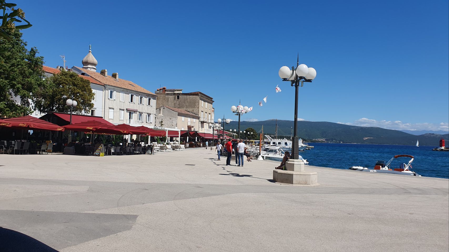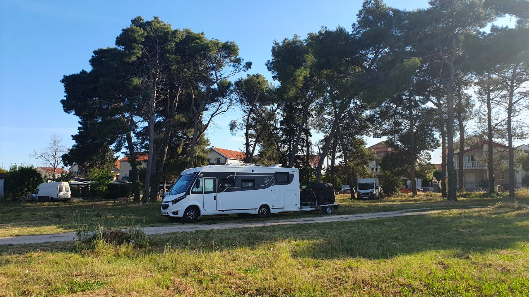 1. Der Parkplatz, den wir angefahren haben, war zwar nicht besonderes schön, aber nah der Altstadt, die sehenswert sein soll. Wir haben sie nicht besucht, da wir noch etwas zur Ruhe kommen wollten. Der Parkplatz ist kostenlos, sehr belebt (es war Sonntag!), aber am späteren Abend und über Nacht ruhig. Wir fuhren ca. um 16.00 Uhr hierher und wir fanden – trotz den noch vielen geparkten Autos problemlos noch einen guten Platz für unser Gespann (WoMo mit Anhänger => 10 m). Am Morgen waren alle Autos wie weggeblasen… 🌬🌬🛻🚙🚗🚘🛵😁 Leider ist die Wiese (wie so oft hier in Kroatien) etwas verschmutzt von Gegenständen, die achtlos weggeworfen werden. Einfach schade! Wir sind deshalb immer auf der Hut, dass Yuna nichts von diesen Dingen ergattert. Fünf Minuten Fussweg und wir waren am Meer, wo wir uns in einem Promenaden-Restaurant zwei Pizzen 🍕🍕 und zwei Radler 🍺🍺 gönnten. Gute Nacht liebe Freunde und bis morgen…