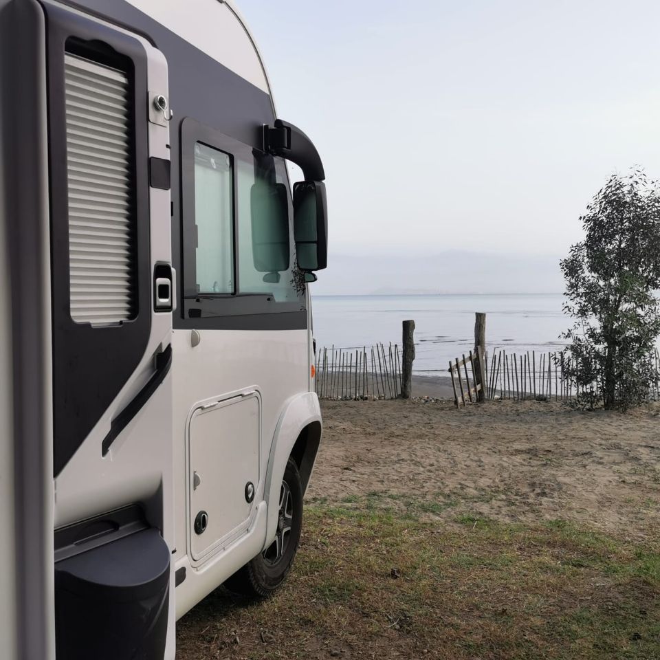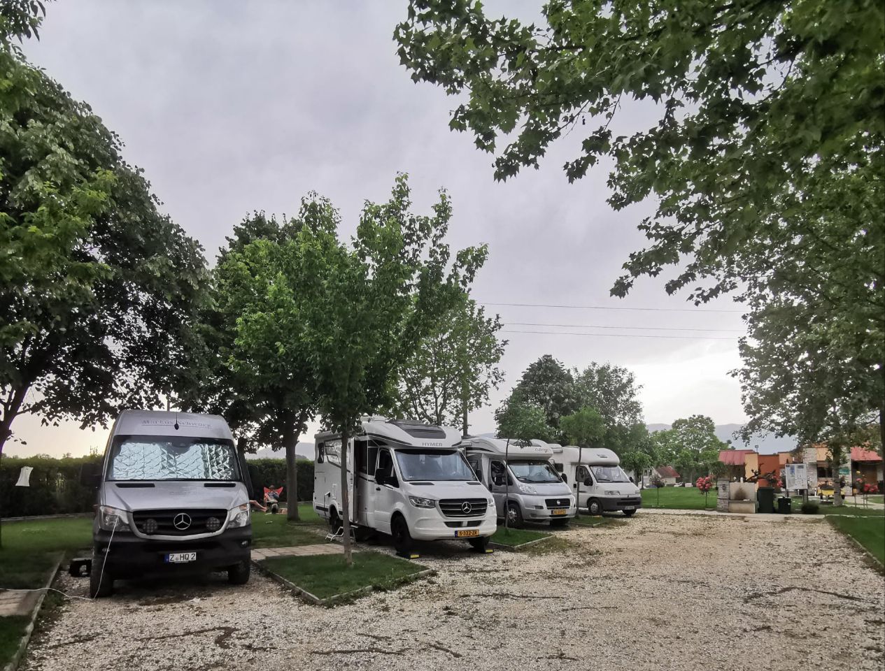 1. Eigentlich wollten wir zu einem kostenlosen Parkplatz am Ende der Bucht, aber nach so langer Fahrt schwindet auch beim besten Chauffeur die Aufmerksamkeit. Wir hielten deshalb bei einem Autocamp direkt am Meer zur Übernachtung an. Der schöne Ausblick auf’s Meer und der sympathische und sehr hilfsbereite Stabdplatzbetreuer liess uns wohl blind werden…😵🙈 Im Gespräch mit anderen Campern zeigte sich nämlich, dass hier die Stellplatzpreise „je nach Windrichtung“ gesetzt werden. Von 15 € bis 30 € lag alles drin, unabhängig davon, ob am Meerufer oder in zweiter Reihe oder der Grösse des Reisemobils. Die sanierungsbedürftige „sanitäre Anlage“ deckte das Nötigste ab, in der (Freiluft-)Dusche & beim Geschirrwaschbecken gab es nur Kaltwasser. Ausserdem ist die direkt anliegende Strasse bereits ab den frühen Morgenstunden wirklich sehr stark befahren (auch von LKW’s). Dementsprechend war es ab 05.00 Uhr sehr laut. Der 42-jährige Sohn der Besitzerin erwähnte, dass der Stellplatz sogar auch öfters komplett zugestellt würde, so dass ein Wegfahren äusserst schwierig sei… Er habe keinen grossen Einfluss – seine Mutter habe hier das Sagen und lege die Preise fest… 😬😳🧹🧙🏻‍♀️🙈. Das zeigte uns, was der Stellplatzbesitzerin am wichtisten war: möglicht viele Einnahmen erzielen 💶💰 💴 💵… Der Gegensatz zum Camping Male Čhrista war einfach zu gross. Für 27 € hatten wir dort einen riesigen Platz mit topp sanitären Anlagen. Wir haben unsere Lehre daraus gezogen und werden zukünftig vorher beim Stellplatzbetreiber nach dem Preis fragen und den Platz zuerst anschauen. Wir empfehlen diesen Camp nur für den Notfall. Die Fotos entstanden am Morgen danach… Wir waren kaum mit dem Frühstück fertig, da war der Platz ratzfatz leer – alle WoMos und Vans waren bereits weggefahren 🙈😅. P.S. Man beachte auf dem ersten Bild meine sexy Hausschuhe 🤣🤪🙈!