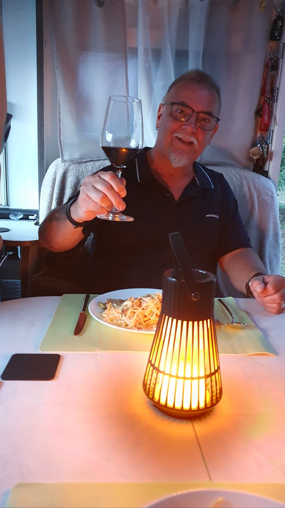 Wir übernachteten hier in der Nähe von Como. Zum (zwar etwas späten) Abendessen zauberte uns Bruno frische, leckere Hamburger 🍔😋, während sich Yuna den Bauch mit Thunfisch und Muschelsuppe voll schlug 🐶🙈. Eigentlich wäre es Katzenfutter, doch als Kunde von NaVita Hunde- und Katzennahrung haben wir diese geschenkt erhalten. Sollte Yuna morgen miauen statt bellen (was sie eh selten tut), wissen wir warum… 😂🙈. Ciao a tutti e buonanotte 😴🥱!