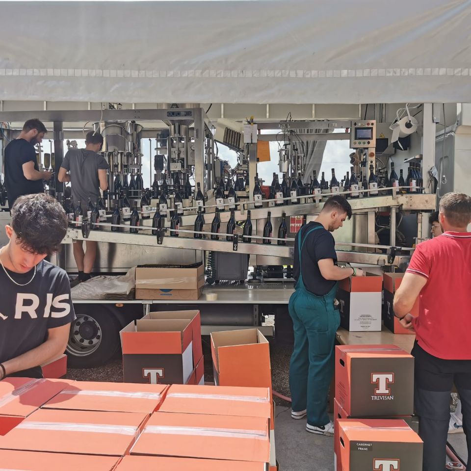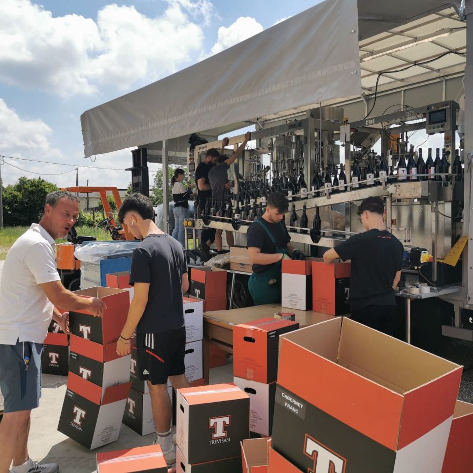 1. Wir fuhren weiter nach Italien… Vor Milano machten wir einen Abstecher nach Motta di Livenza, denn wir liessen uns die Gelegenheit nicht nehmen, unsere Freunde Carina und Roberto zu besuchen. Sie betreiben dort in 4. Generation die Weinkellerei Cantina Trevisan 🍇🍷(www.vinitrevisan.com). Yuna schloss sofort Freunschaft mit Tyson, dem chinesischen Shar-Pei der Familie Trevisan. Beide verbrachten die Zeit, sich zu beschnuppern und miteinander zu spielen, was Yuna natürlich sehr gefiel. Carina, Roberto und auch deren 17-jährigen Sohn waren gerade dabei, den vorjährigen Cabarnet Franc in die gereinigten Flaschen abzufüllen, diese zu verschliessen und zu etikettieren. Anschliessend wurden die Flaschen zu 12 Stück in die Kartons verpackt. Dabei halfen mehrere Student*innen mit, die sich neben ihrem Studium etwas dazu verdienen wollten. Es war sehr interessant, ihnen dabei zuzuschauen. Zwei/Drei Flaschen haben wir natürlich wie bei jedem Besuch bei Carina & Robero gekauft. Oder waren es Kartons…? Waren es wirklich zwei davon? So genau wissen wir es nicht mehr…🙈🤣😂. Trotz der Wiedersehensfreude kam der Zeitpunkt der Verabschiedung und wir mussten weiter. Molto grazie. È stato bello vederti 😊👍🏼!