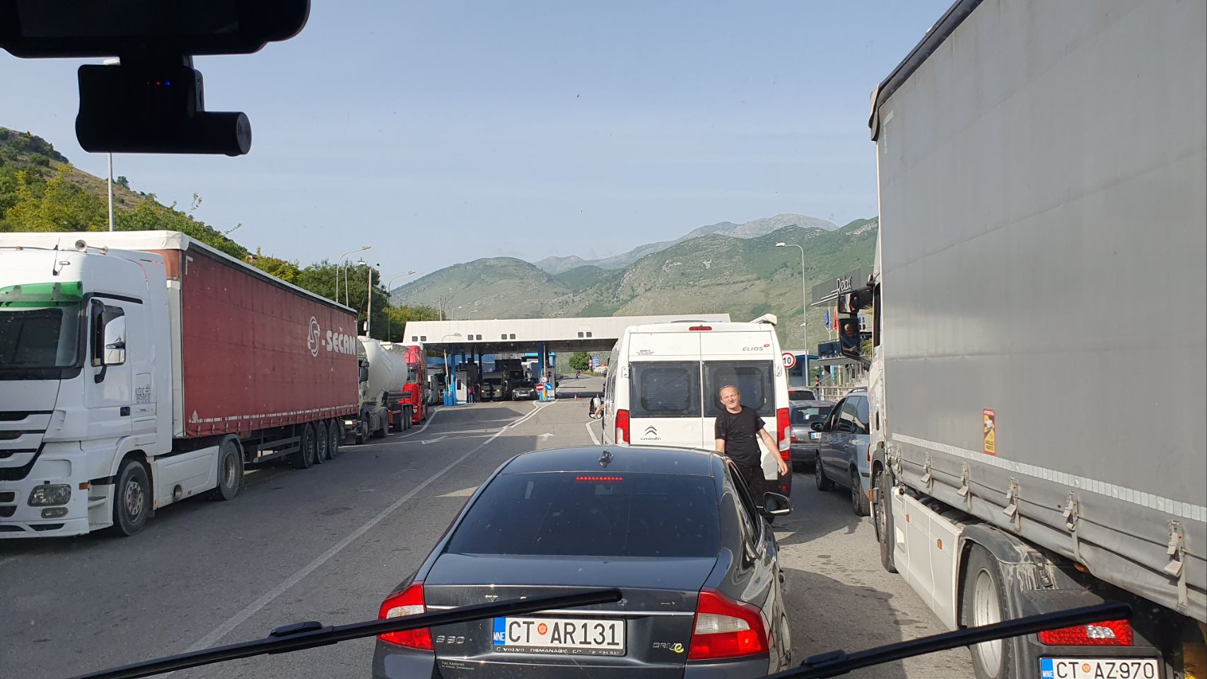 1. Am Grenzübergang Montenegro – Albanien klappte die Durchfahrt mit verhältnismässiger Wartezeit tipptopp. Die handgesteuerte Ampelanlage funktionierte hier super 👍🏼😅! Männer sassen am Strassenrand in Sichtkontakt zueinander, stoppten in Gegenrichtung die Fahrzeuge und winkten widerum den anderen zu, damit die wartenden PW’s, Van’s WoMo’s zum Überholen ansetzen konnten. Die LKW’s blieben auf der einzige Spur vor dem Zoll stehen bzw. rückten einfach zum Vordermann auf. Bei der Ausweiskontrolle ging alles ruckzuck.Die ID-Karten wechselten hin und her und es folgte das Handzeichen des Grenzbeamten zur Weiterfahrt. Bestimmt war es mein charmantes Lächeln, mein Wimperklappern… (kleiner Witz am Rande ).