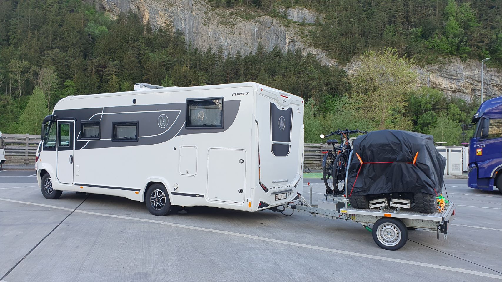1. Auf einem grossen Parkplatz (kostenfrei ab Freitag, 19.00 Uhr sowie Samstag und Sontag) haben wir nach drei Wochen das erste mal wieder in der Schweiz übernachtet. Dieser Parkplatz wäre auch super, um Bellinzona (ca. 10 Min. zu Fuss) und deren Burgruinen zu besuchen. Sollte die Barriere zum Parkplatz am Fretag nach 19.00 Uhr und SA/SO geschlossen sein: unbedingt trotzdem ein Parkticket entnehmen und vor Verlassen an der Kasse des Parkplatzes entwerten! Wir verbrachten eine sehr ruhige Nacht hier und schliefen bestens. So gegen 08.00/09.00 Uhr begann sich der Platz langsam zu füllen. Noch ein zu erwähnender Knackpunkt: Aktuell (24.05.2024) befindet sich eine grosse Baustelle beim obgenannten Parkplatz. Die Einfahrt ist mit einem über 7-metrigen Fahrzeug eh schon etwas eng, da gleich danach eine scharfe Rechtskurve folgt. Auch die Höhe ist wegen den herabhängenden Ästen zu beachten. Die Ausfahrt war mit unserm 10-Meter-Gespann (WoMo und Anhänger) nicht möglich. Durch die Baustelle wurde die Spur vor der Barriere zusätzlich so verengt, dass ein Durchkommen chancenlos war, ohne das Fahrzeug zu beschädigen. Auch für Wohnmobile unter 6 m, wäre es zusätzlich wegen der scharfen Linkskurve eine knifflige Sache. Wir mussten den Anhänger abhängen, zurückschieben und Benito zurück fahren, während sich hinten bereits eine Autoschlange bildete und einige Fahrzeuge zurücksetzen mussten. Eine unangenehme, „peinliche“ Situation! 🫣 Während die Einen hupten, zeigten Andere Verständnis über unsere missliche Lage. Die Ausfahrt war endlich frei und die Fahrzeugschlange schob sich dieser langsam entgegen. Wir konnten den Parkplatz verlassen, indem wir zwei Absperrholzplanken beim Parkplatzabschnitt weiter hinten kurz abhängten und so die aus Kies angefertigte Ein-/Ausfahrt für Baustellenfahrzeuge nutzen konnten. Soweit so gut! Wir haben aber wieder ein weiteres mal eine Lehre daraus gezogen: checke stets vor der ein Einfahrt auf einen Platz, wie du wieder heraus kommst 🙈😉!! Nun ist es langsam Zeit, Abschied von drei herrlichen, spannenden und erlebnisreichen Wochen zu nehmen. In ca. zwei Stunden erreichen wir unser Zuhause.